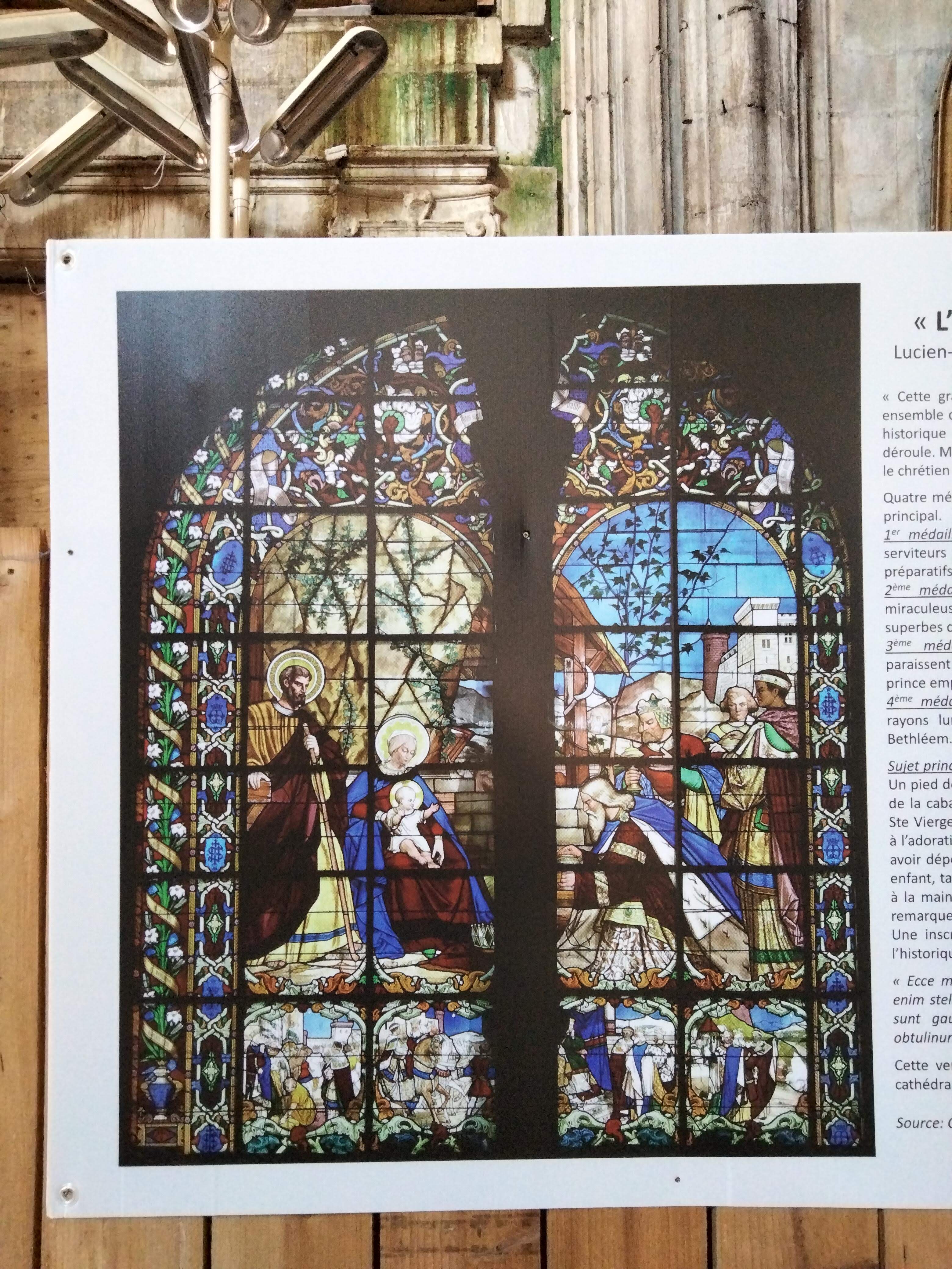 Superbes vitraux. L'entrée se fait sur le côté. L'organiste jouait lors de notre visite.