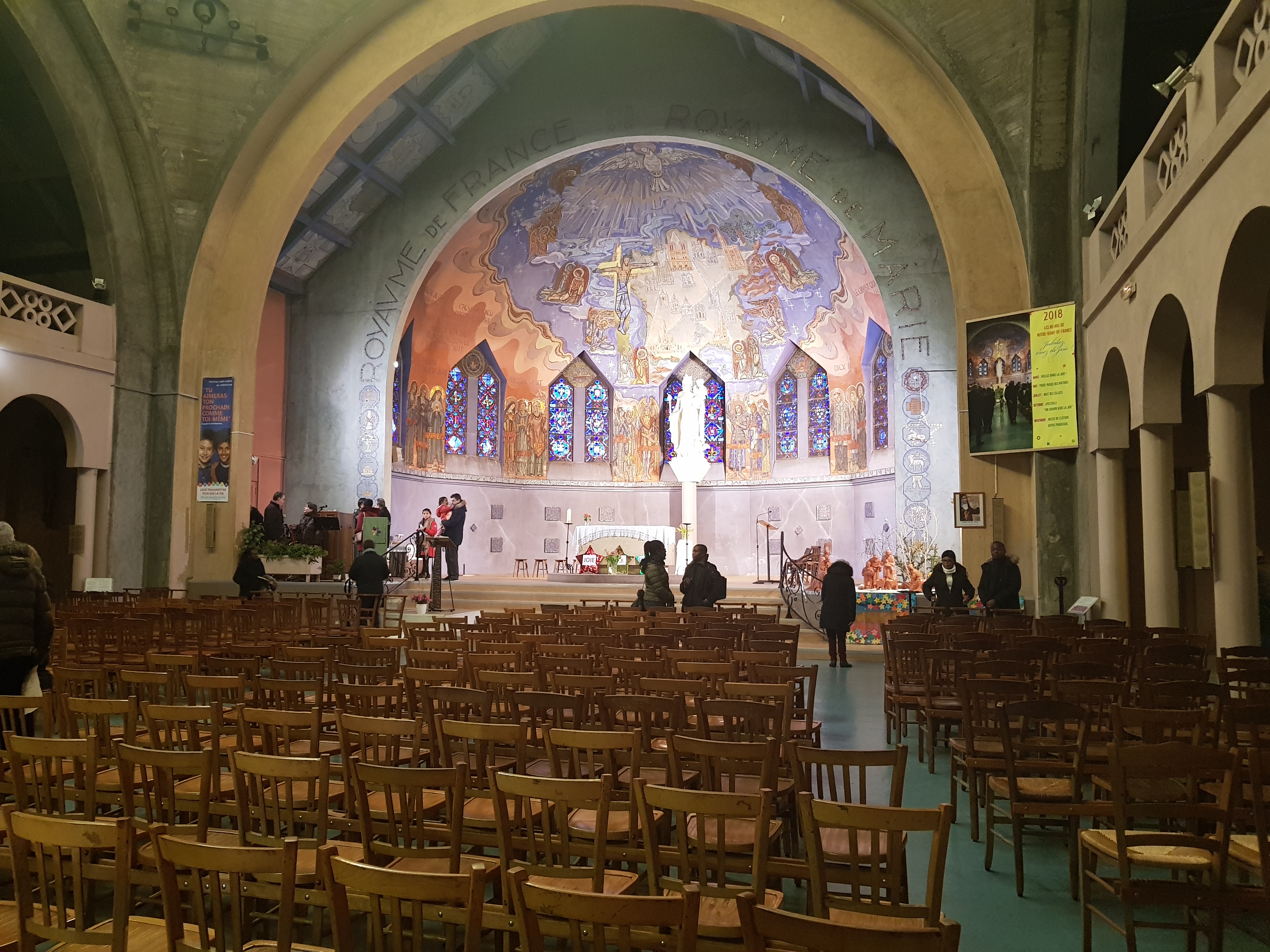 Très belle église. A voir: le Christ suspendu et la carte de France (fresque) de la coupole indiquant les lieux de culte dédiés à Marie.