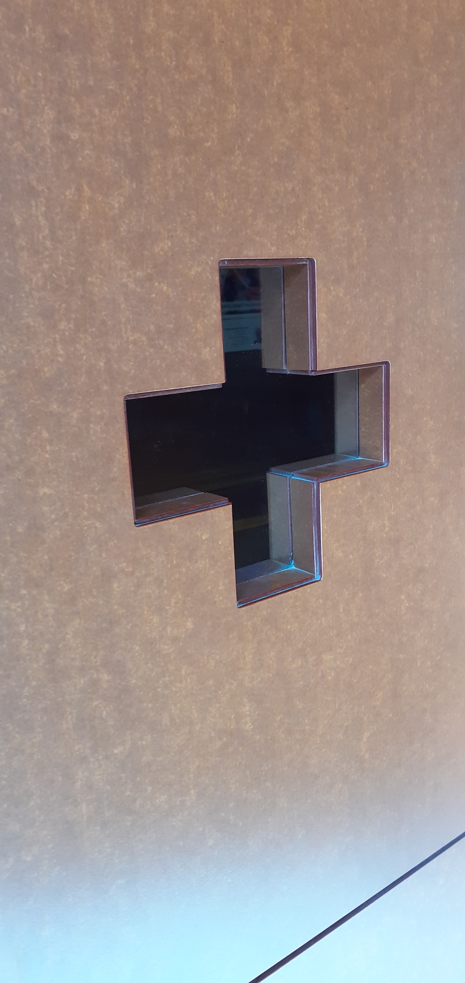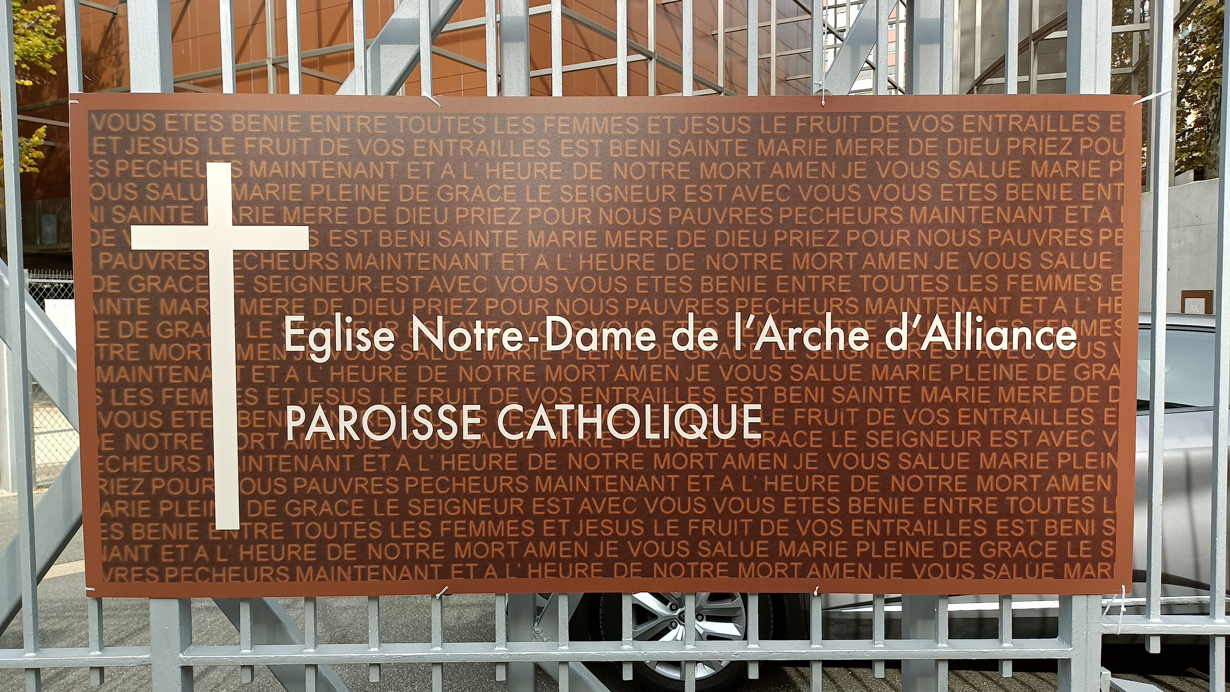 L’église Notre Dame de l’Arche d’Alliance est un édifice religieux contemporain fait de bois, verre, métal et béton, dont l’aspect peut surprendre. Non seulement le design est moderne, mais on trouve même un flashcode sur la porte d’entrée. L’intérieur est tout aussi inattendu, mais j’ai trouvé ce lieu de culte harmonieux et propice au recueillement.