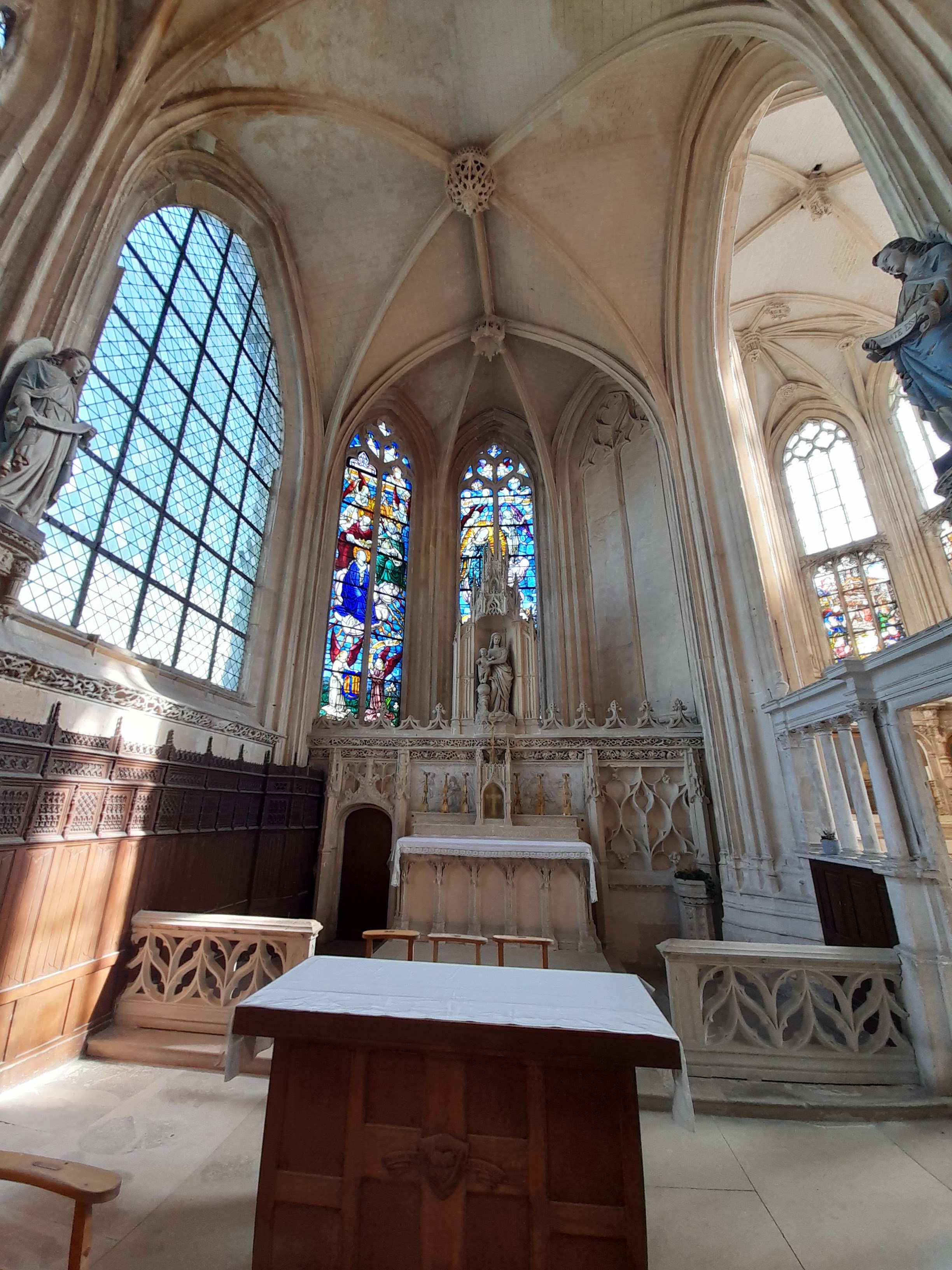 Un édifice exceptionnel au pied d'un château tout aussi exceptionnel. L'église est d'un style gothique flamboyant, d'influence Normande. Il y a deux grandes parties; une nef charpentée et non voûte et le chœur et transept voûtées en pierre d'une grande hauteur. Une barrière de chœur, le Jubé, est la pièce maîtresse, c'est rarissime ! quoique l'orgue dessus semble trop grand... Les extérieurs souffrent d'un manque d'entretien et/ou de travaux de restauration. L'ensemble est à coupé le souffle, mais nécessite d'en prendre davantage soin. À ne pas manquer !