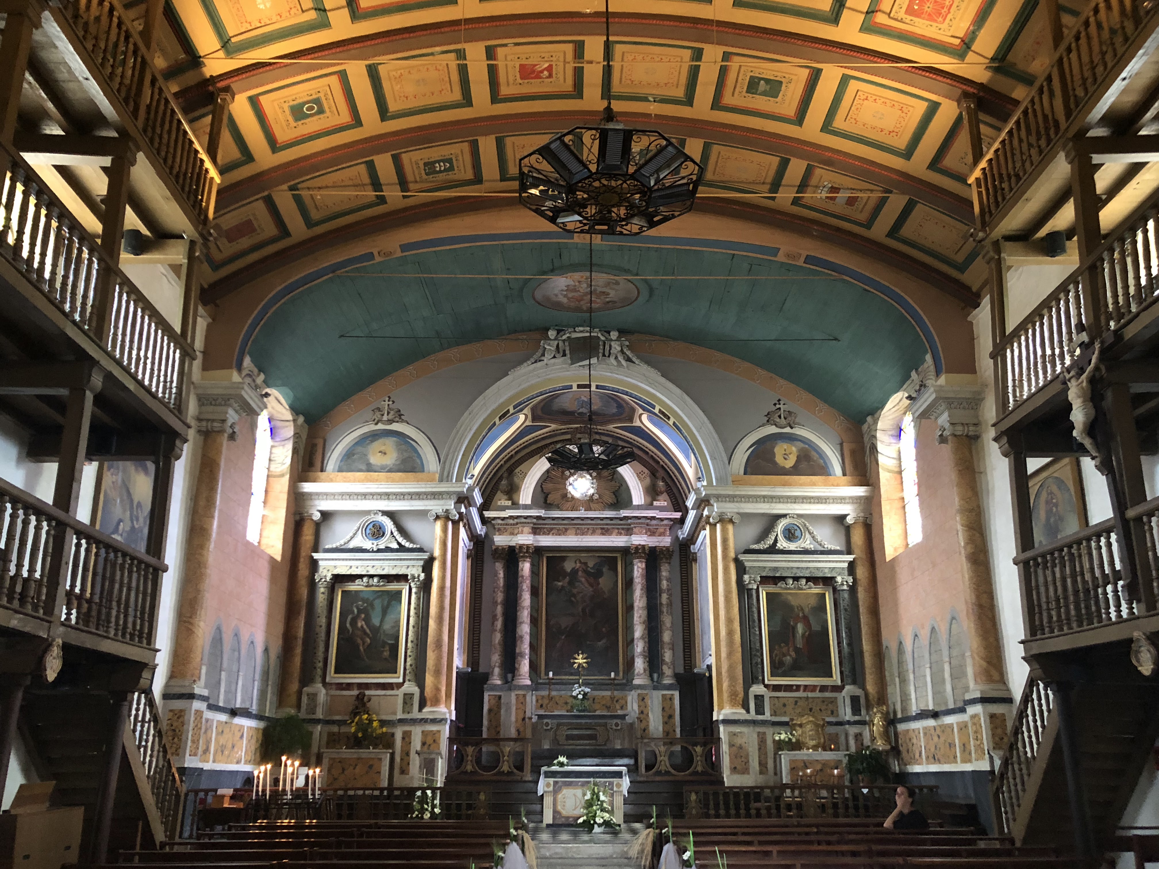 C'est une magnifique église, j'ai surtout apprécié ces balcons sur trois étages, de toute beauté, avec la toiture voûtée et décorée. C'est vraiment une église exceptionnelle ! C'est ce je recommande à tous de visiter. J'ai découvert ce site religieux, à la suite de la messe du 8 mai, date anniversaire de l'armistice. Tous les porte-drapeaux étaient présents avec une très belle cérémonie !!