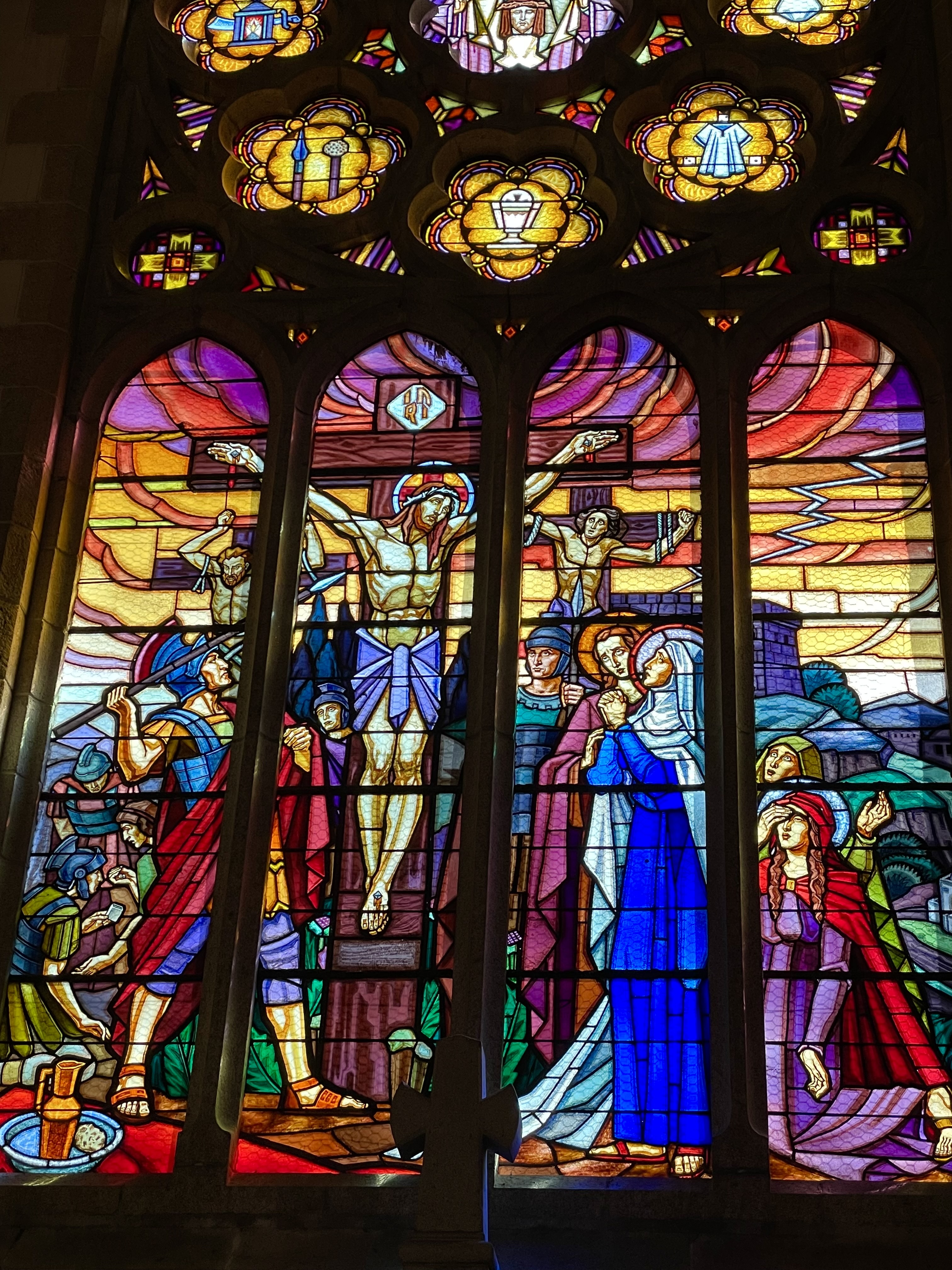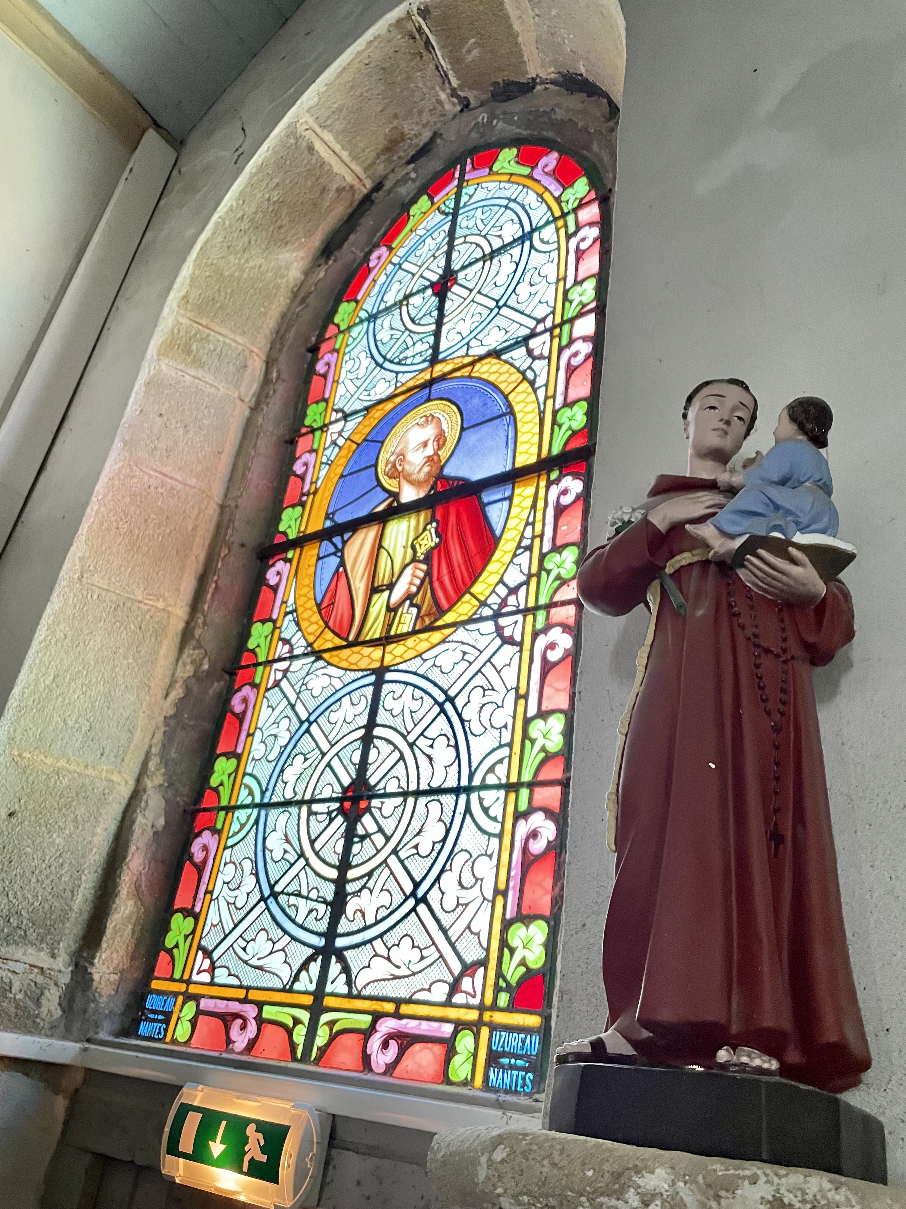 Prenez le temps de voir les vitraux ... Magnifique.... Sur le thème de la mer et des églises de belle île. Admirez le bateau accroché au plafond.... Surprenant
