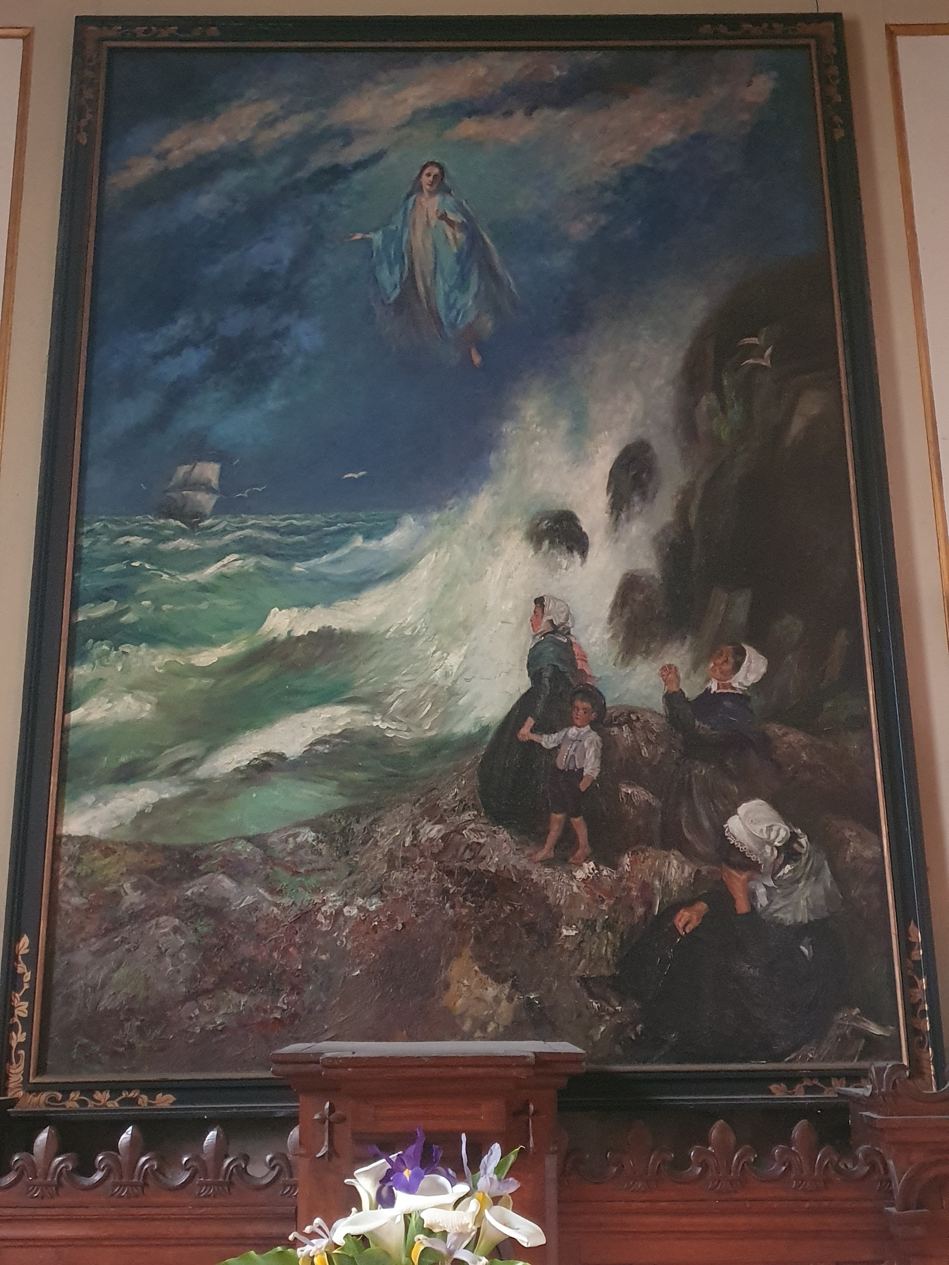 Magnifique église avec un tableau très relatif de l'histoire de Locmaria