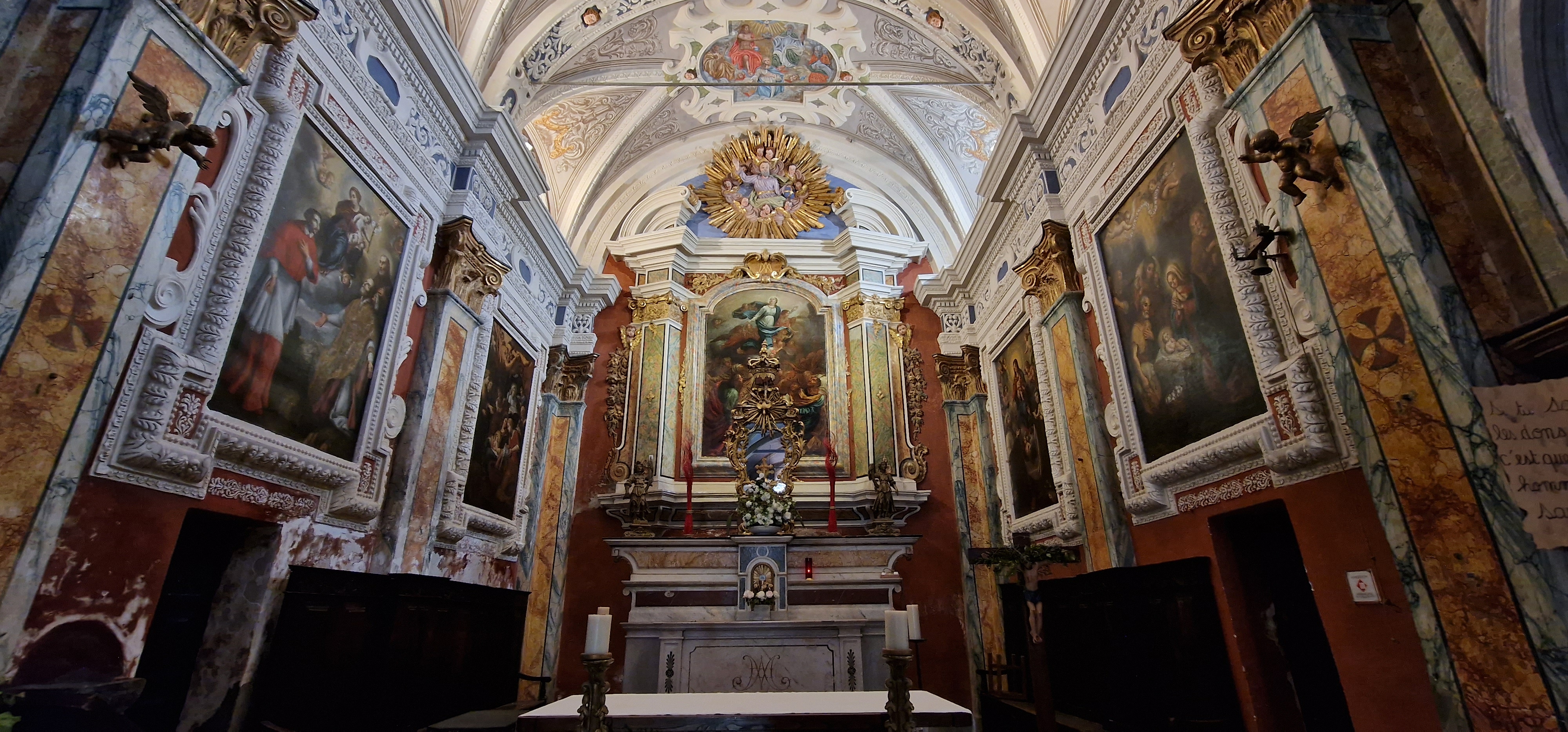 Ensemble architectural unique témoignage de l architecture des églises de la vallée voir la madone de notre Dame des fenestre qui se trouve placée dans l église pendant l hiver