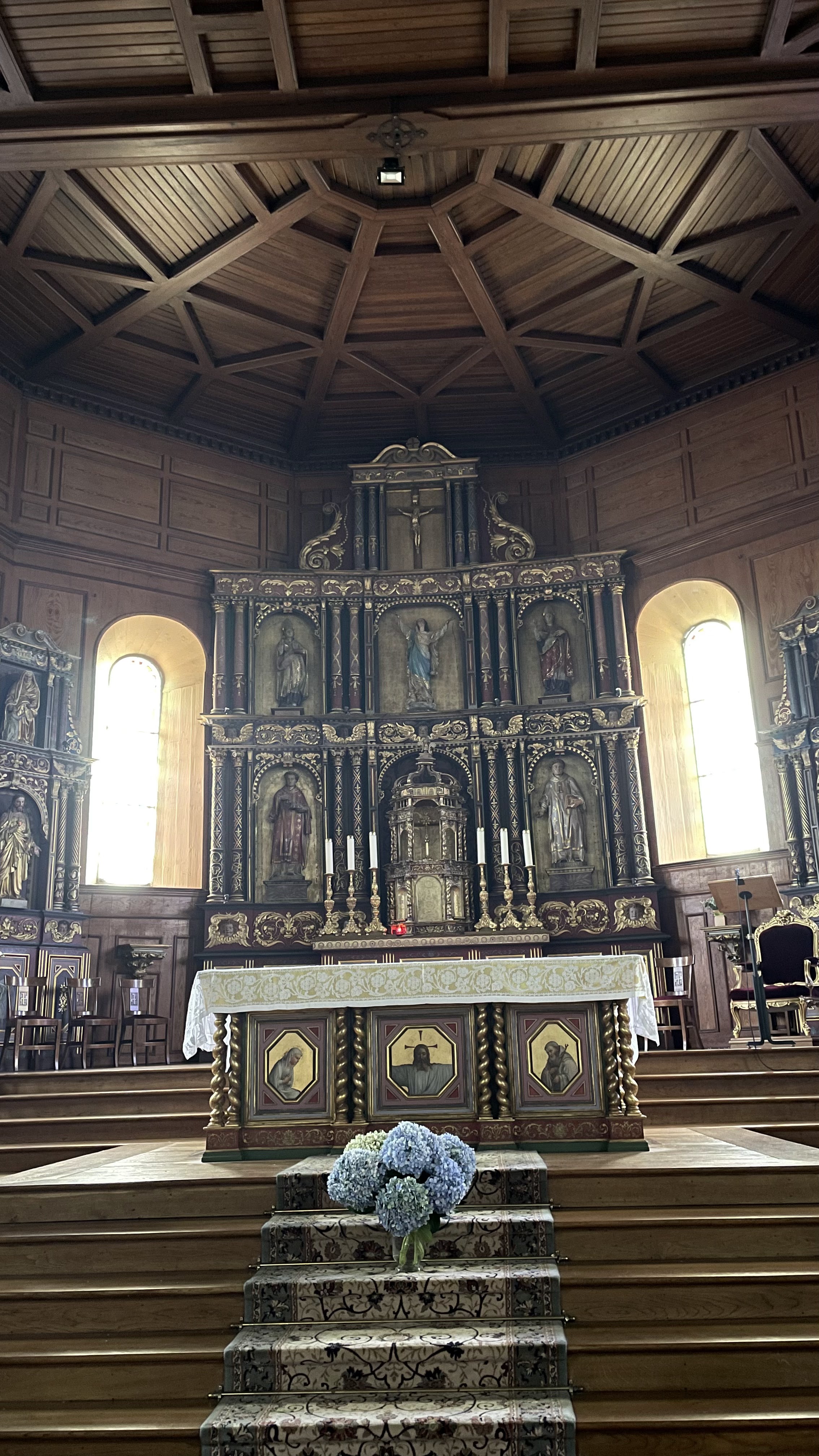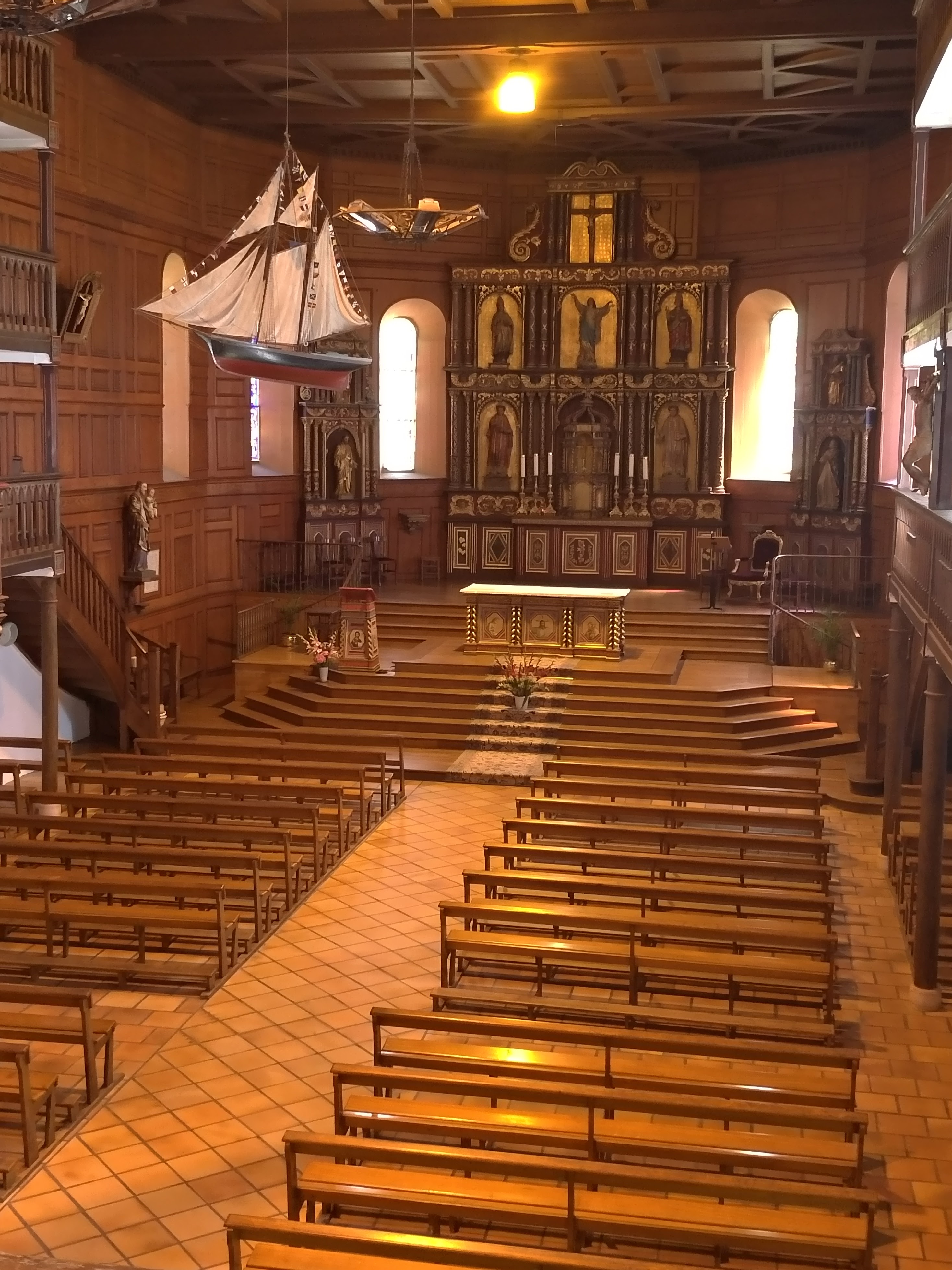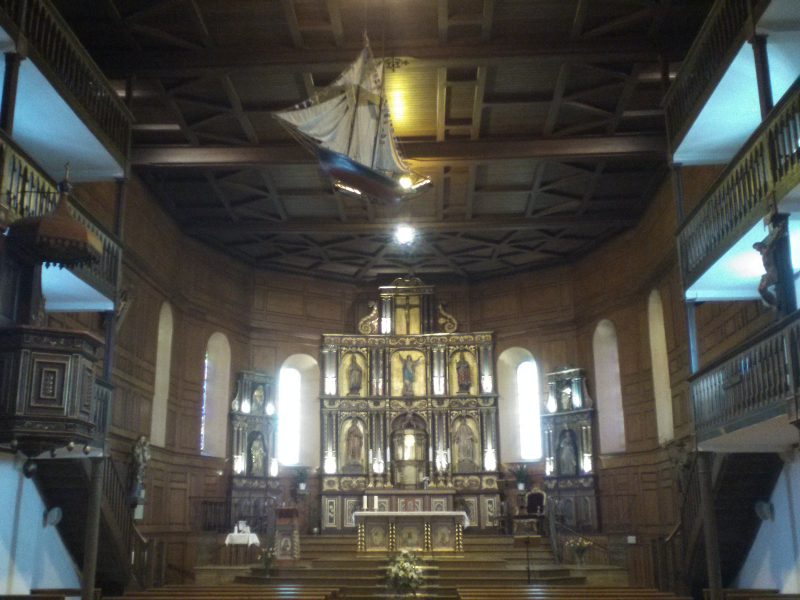 Belle église, église typique des marins. Construit en pierre et décoré en bois. Elle possède une nef centrale, dans laquelle se trouvent 3 étages latéraux pour les fidèles. Au dessus de la sortie on aperçoit le majestueux orgue