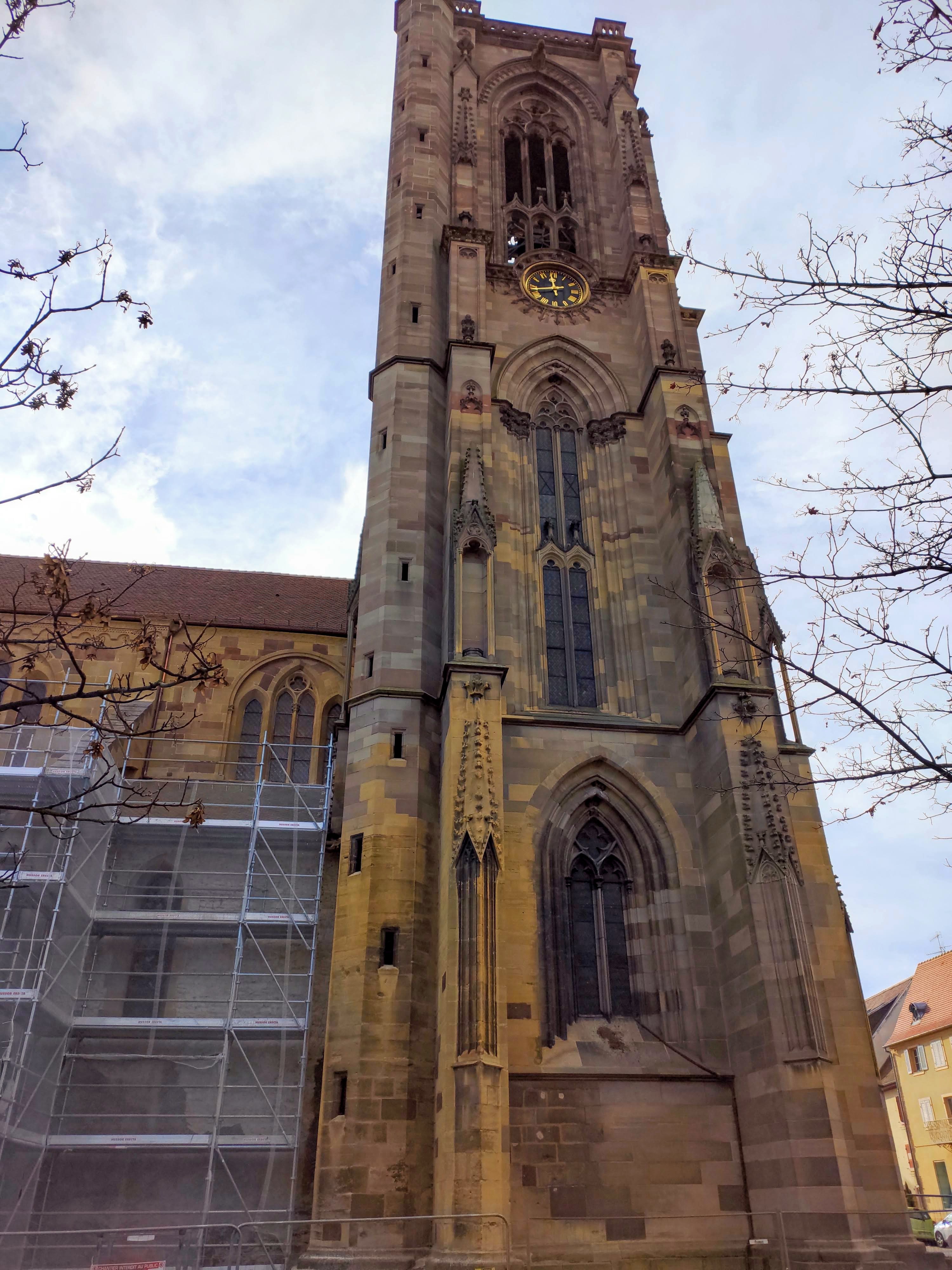 Actuellement en travaux. Bel édifice inspiré de la cathédrale de Strasbourg