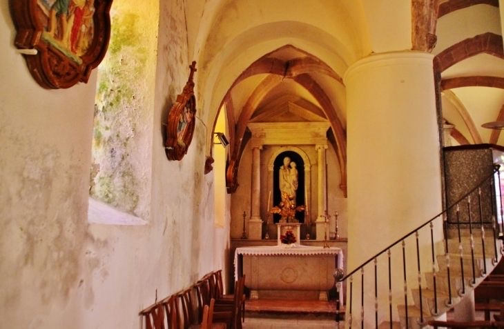 Après un édifice primitif antérieur à 974, l’église actuelle en grès rouge, avec un clocher à trois étages, a été érigée autour de 1500. À l’intérieur, des motifs sculptés sur les clés de voute renseignent sur ses bâtisseurs : l’ordre des Chevaliers de Malte.