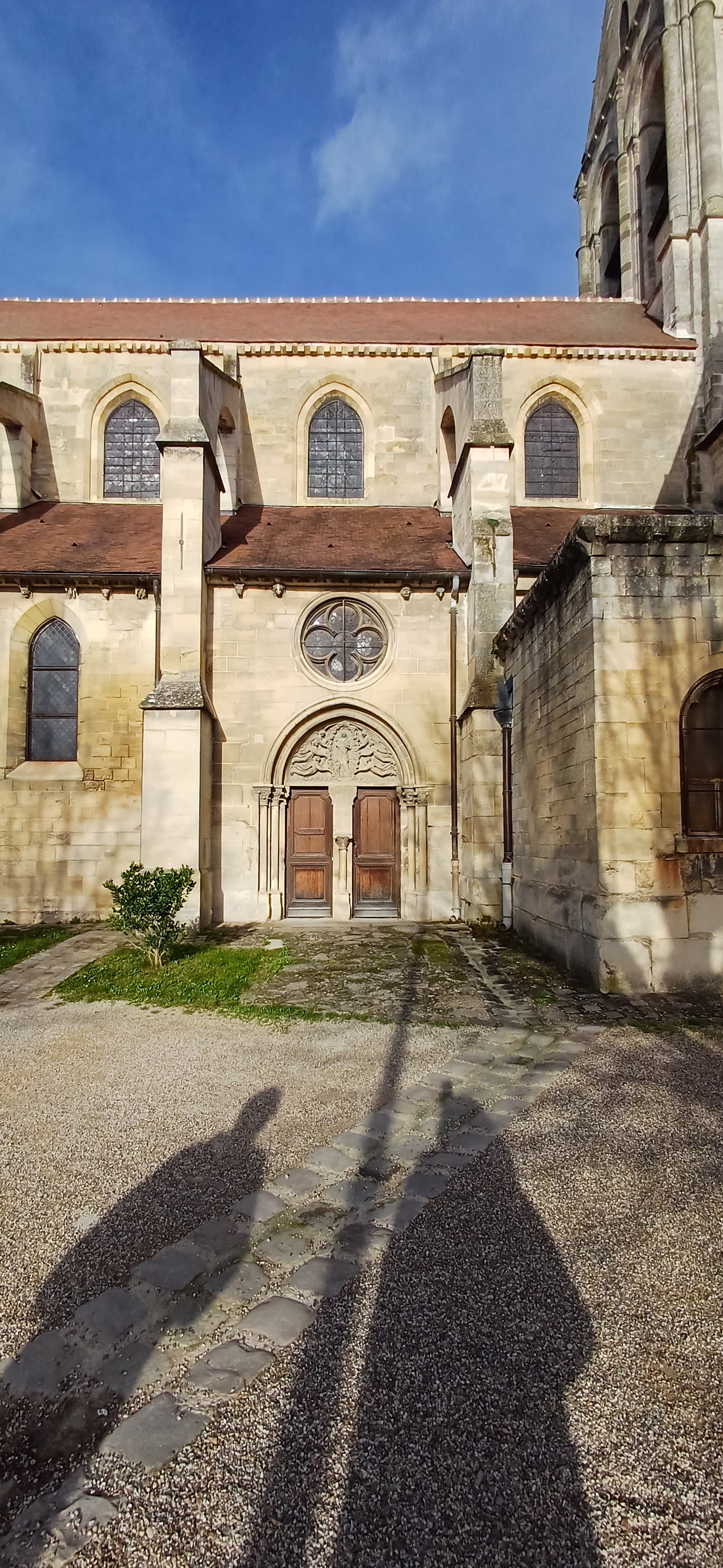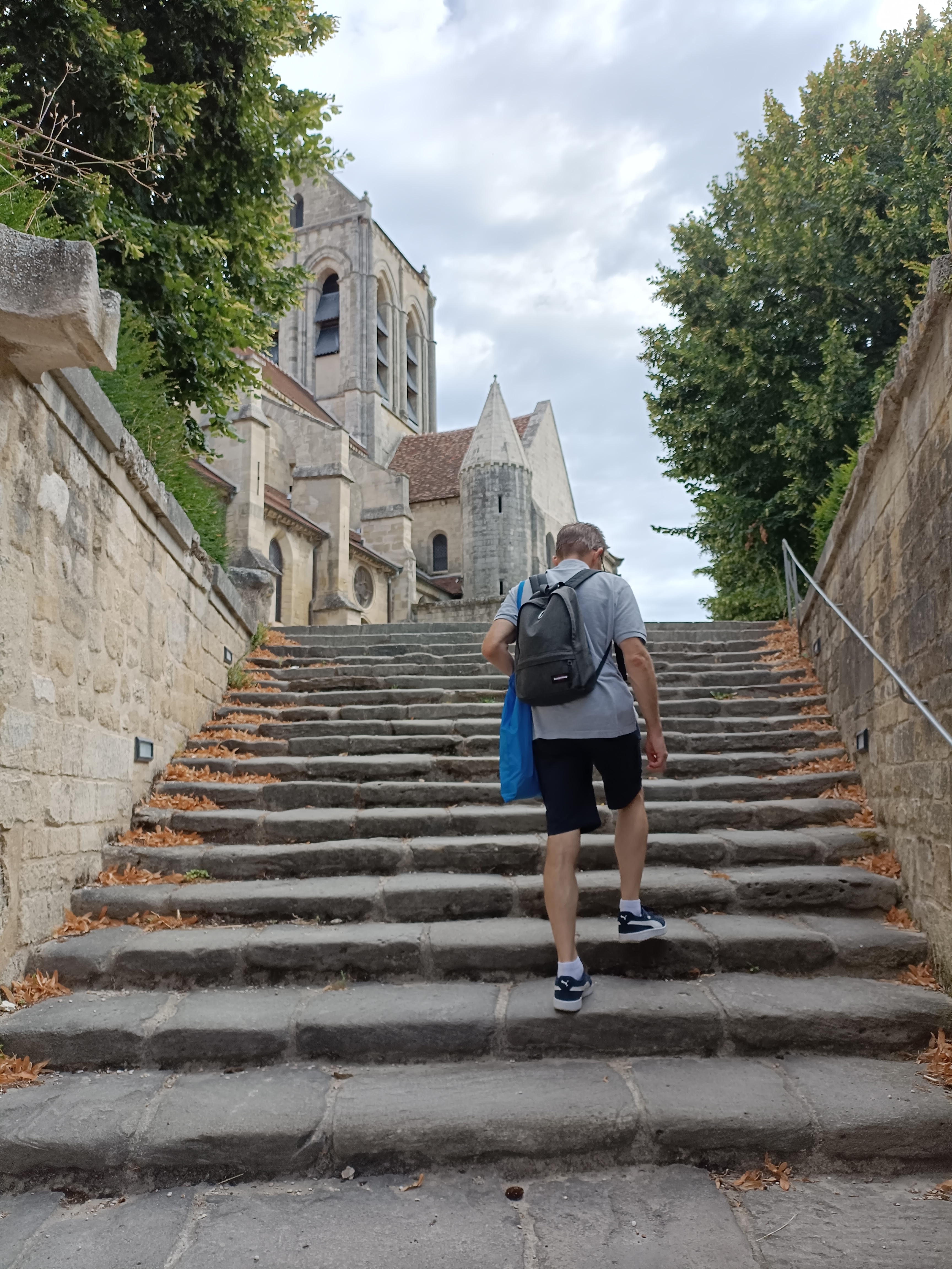 C'est une église située au milieu d'une colline qui surplombe le village. Nous avons garé notre voiture sur la route principale et sommes entrés par l'entrée de l'église par l'allée devant la gare. Un escalier partant de l'allée mène à la façade sud avec ses marronniers d'Inde. Il est intéressant de noter que la plupart des entrées de la cathédrale se trouvent au sud ou à l’ouest. Cela vous permet de savoir que lorsque vous localisez la cathédrale, elle doit se trouver au nord ou à l'est de la ville. La cathédrale Notre-Dame de Paris sur l'île de la Cité à Paris est également située à l'extrémité est de l'île. La façade que Vincent a peinte était la façade est, donc beaucoup de gens ne regardent que ce côté, mais ce serait bien de regarder autour de la façade et de voir les vitraux à l'intérieur. Le tableau de Vincent a été accroché à côté de la cathédrale, et c'est vraiment cool de le voir ensemble. J'ai cité quelque chose à propos de ce tableau dans une lettre que j'ai écrite à Théo. C'est touchant. 2019. 5 En raison des travaux en cours, l'entrée ouest de la cathédrale n'est pas accessible. Vous pouvez entrer dans la cathédrale par l'entrée sud.