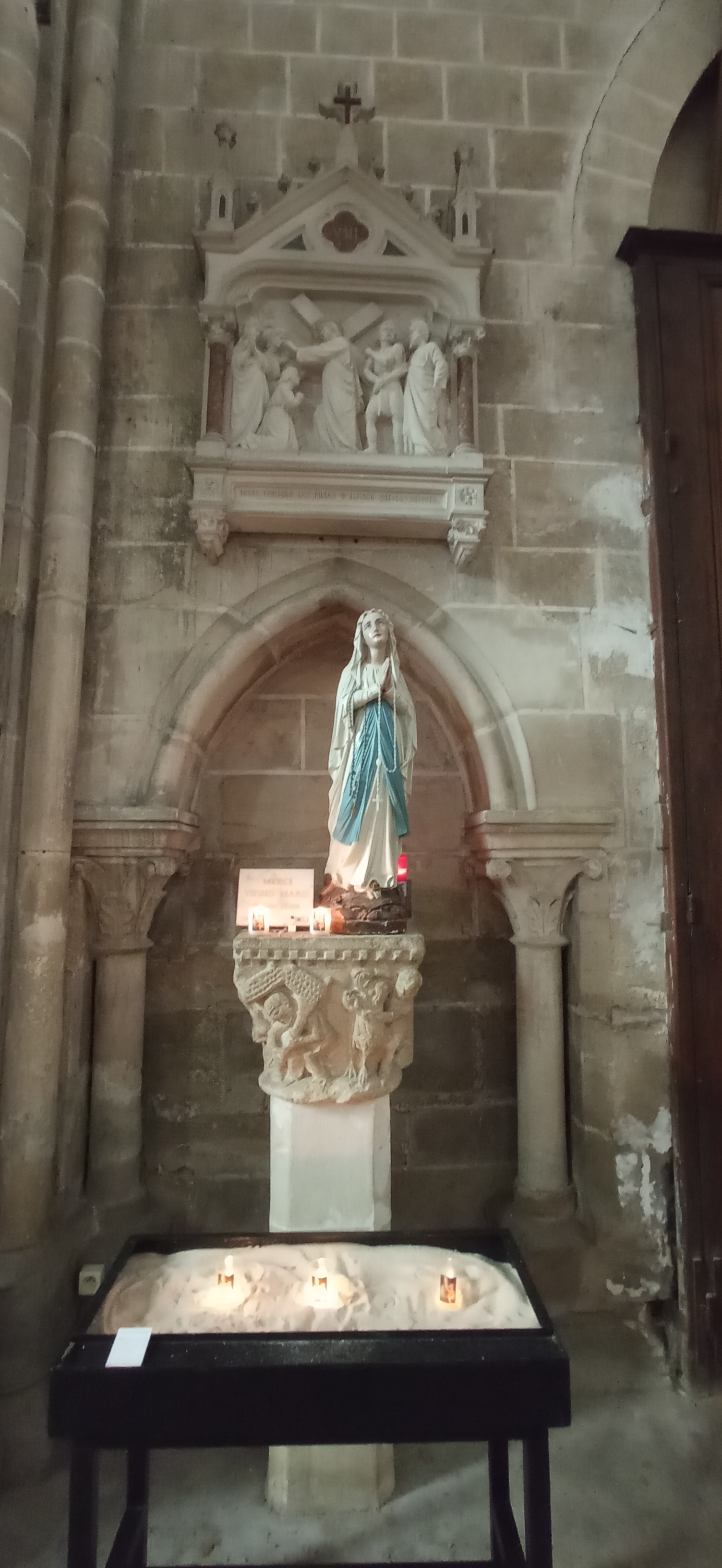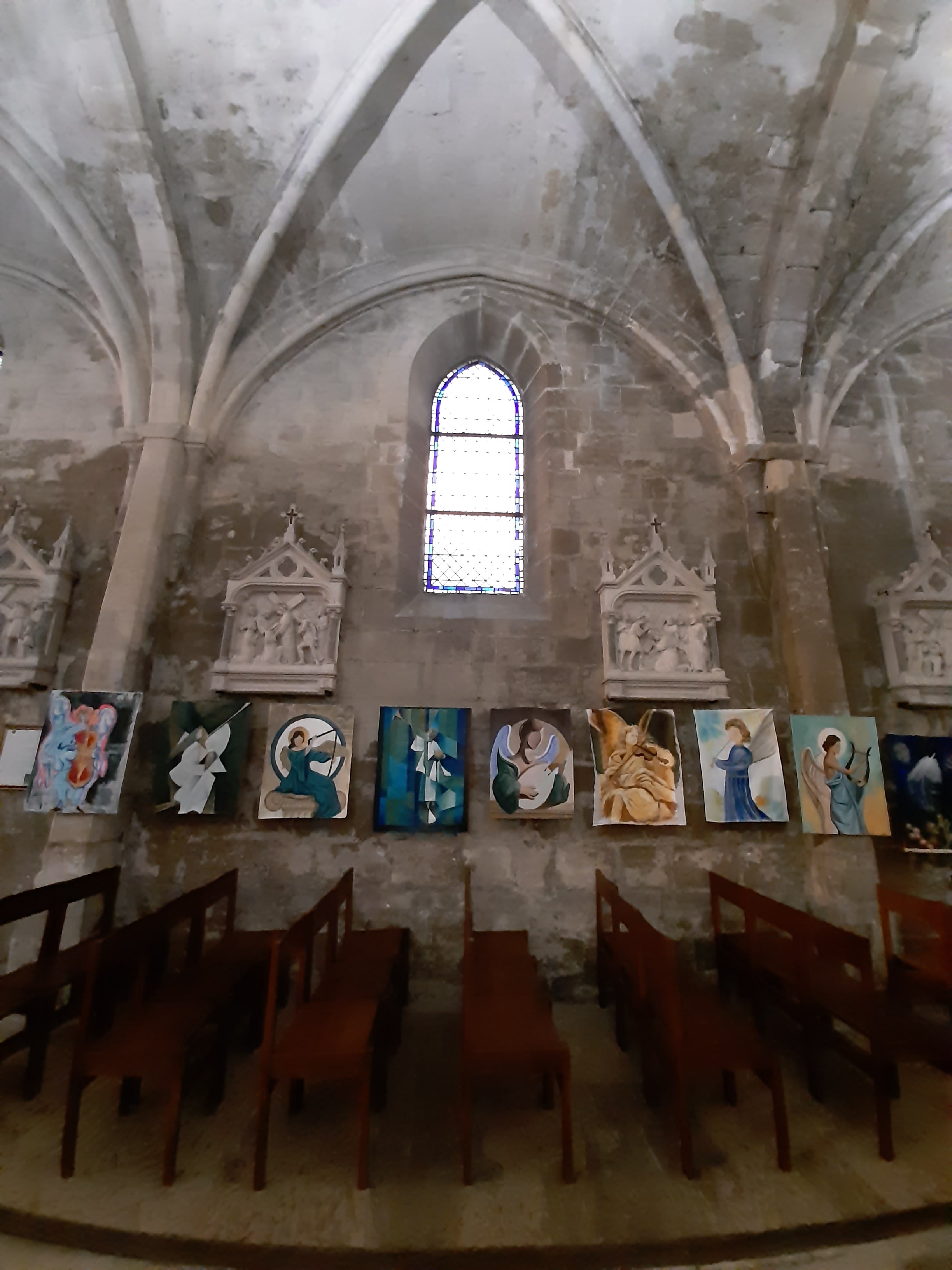Émouvante, Van gogh l'a peinte côté coeur, un ami ( né là) l'a peinte côté nef avec ses escaliers et ses fortifications. L' intérieur est sombre, l'autel de la présence éternelle est beau.