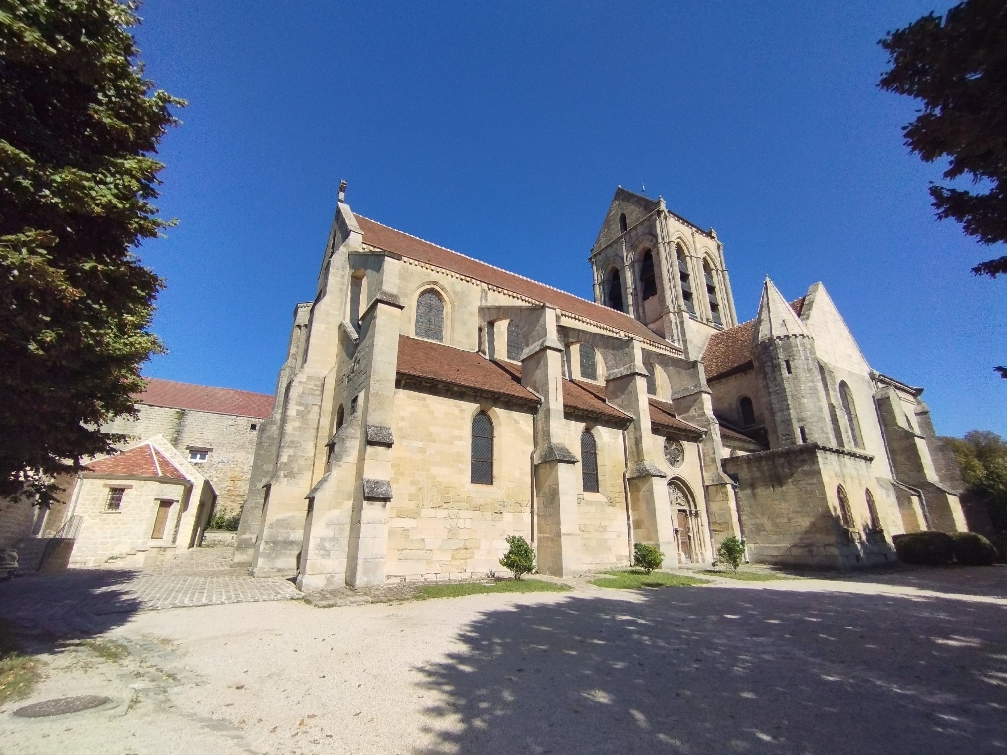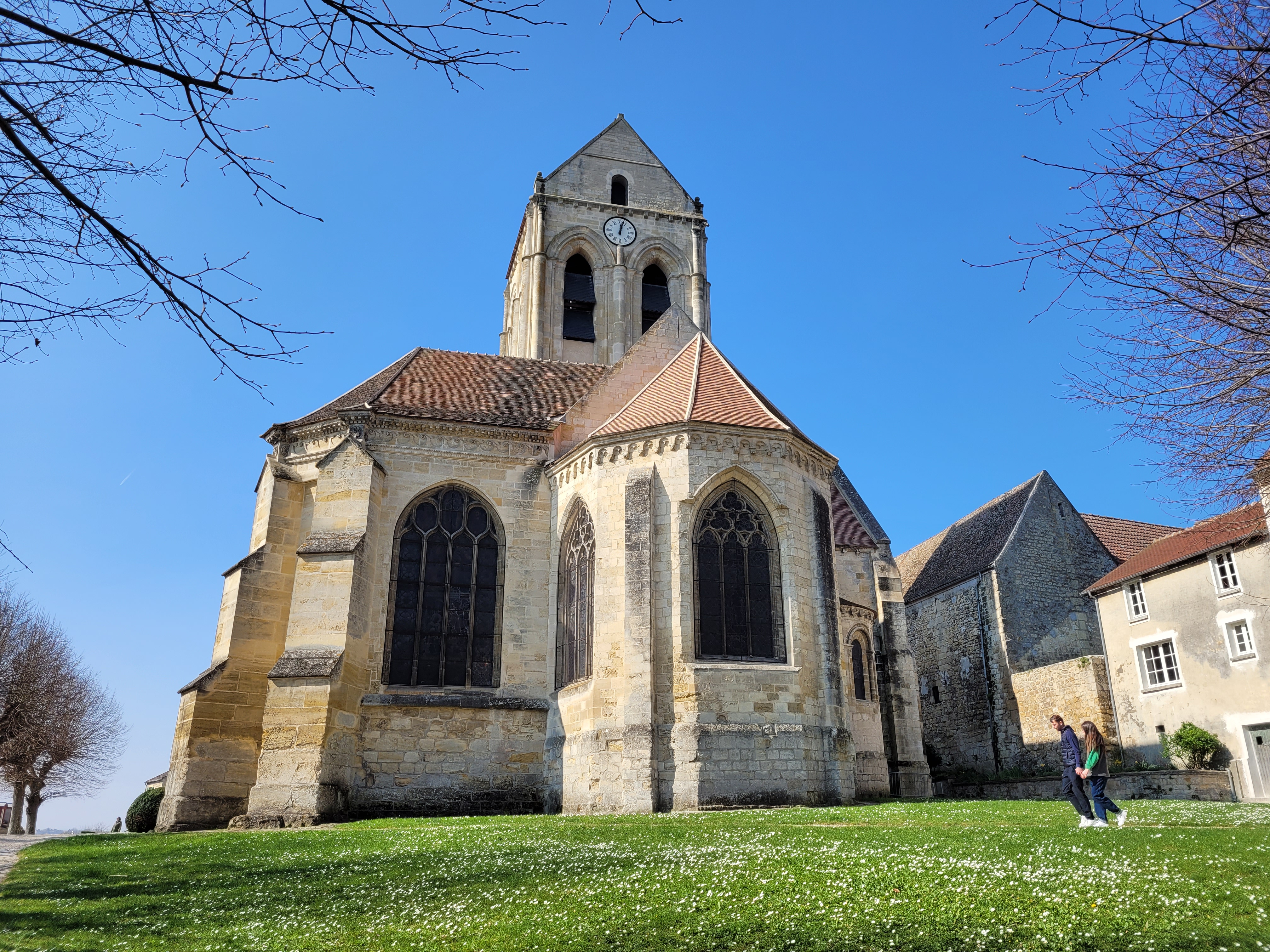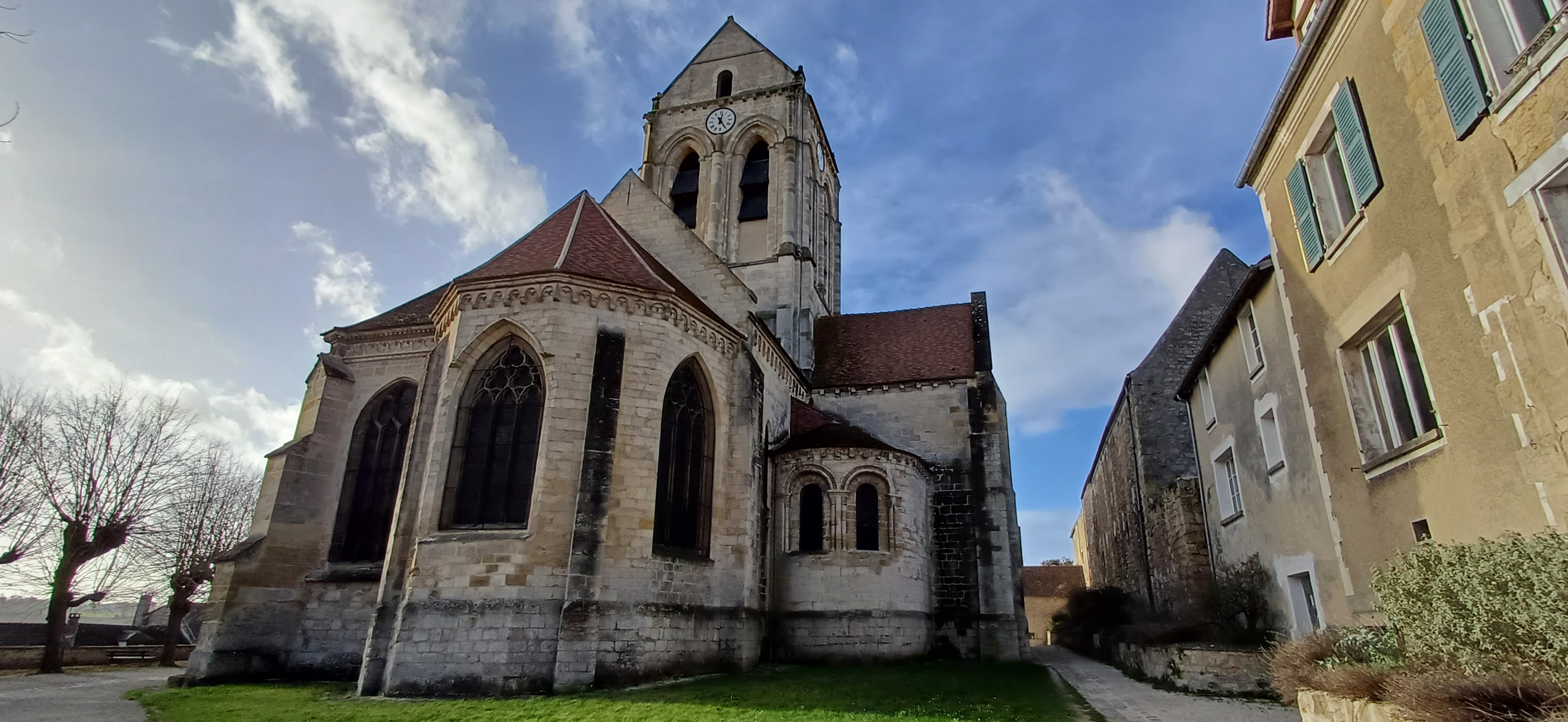 Vue imprenable depuis la cour extérieure sur l'ensemble d'Auvers-sur-Oise, l'église rénovée est un lieu paisible et culte de l'endroit oú a résidé Vincent Van Gogh. À visiter ne serait-ce que pour voir l'orgue géant et sublime à l'intérieur.