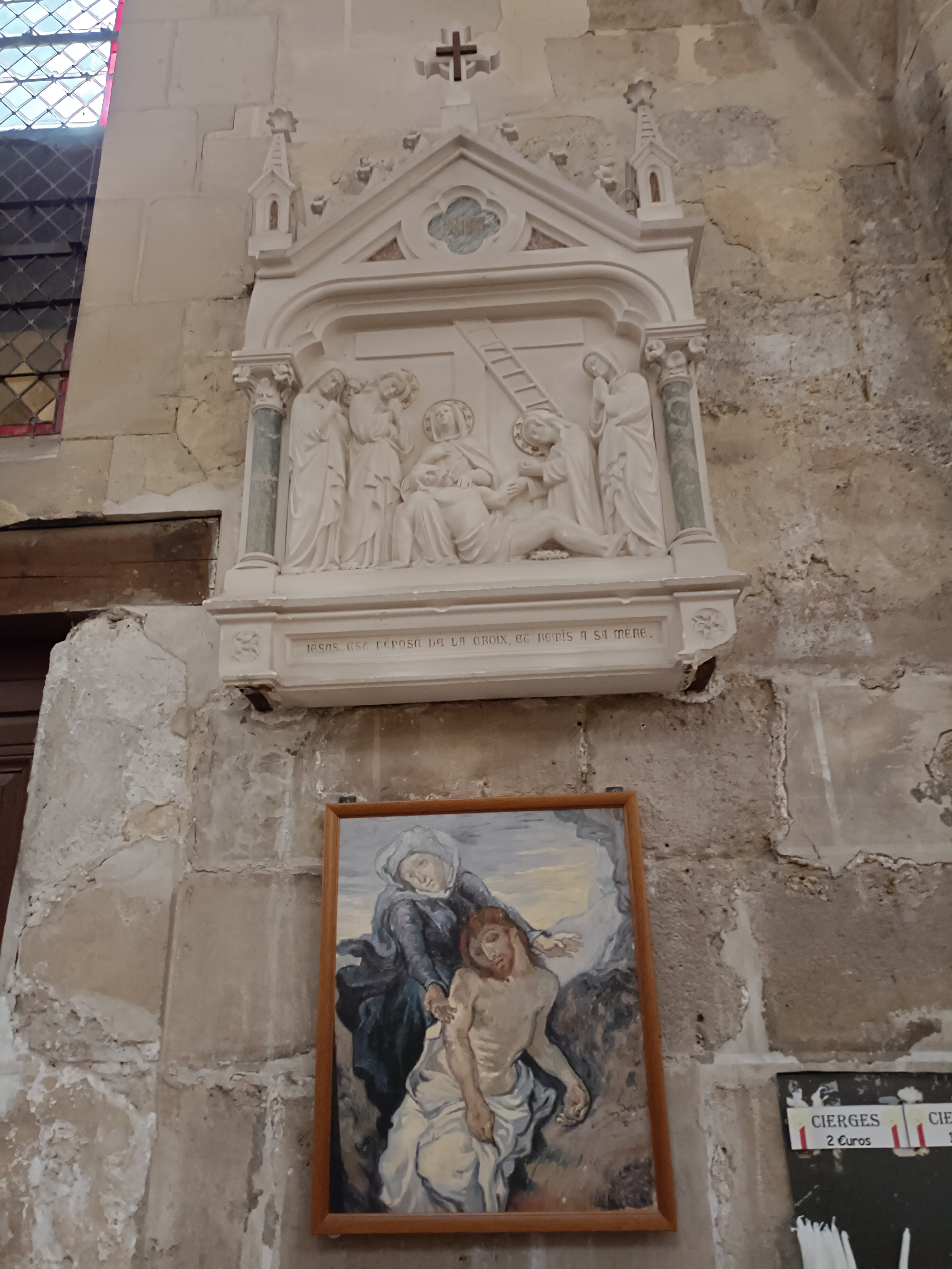 Église en montée, parking gratuit. Merveilleuse bâtisse, en partie en travaux, mais qui ne gâche pas l'un des points de vue qui a inspiré notre célèbre Vincent Van Gogh. On peut s'imaginer à sa place peindre cette église, qui la toile terminée, dépassera ses frontières et sera connu dans le monde. Les cierges étaient introuvables et aucune d'allumée... Probablement en hommage à la Cathédrale de Notre-Dame de Paris et son incendie.
