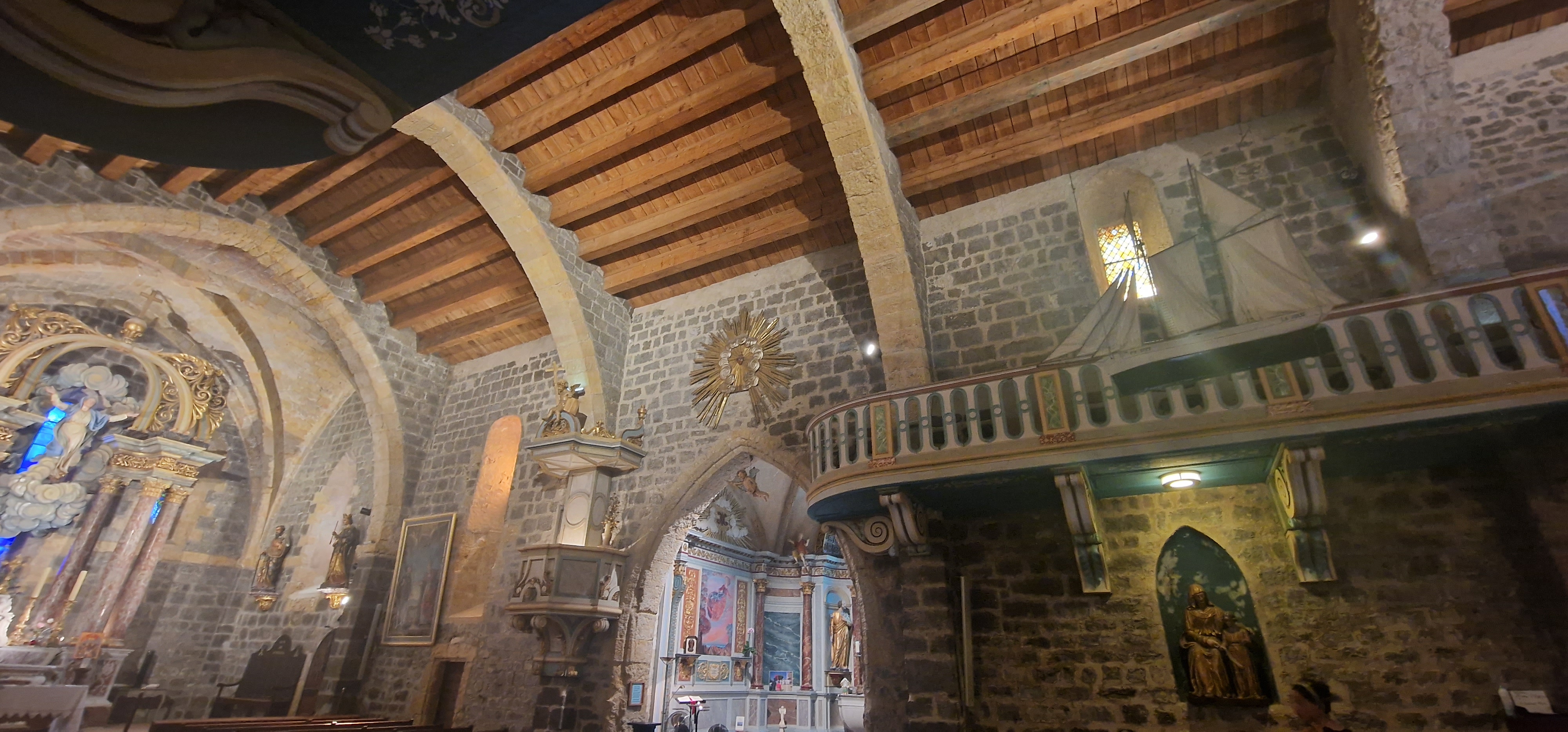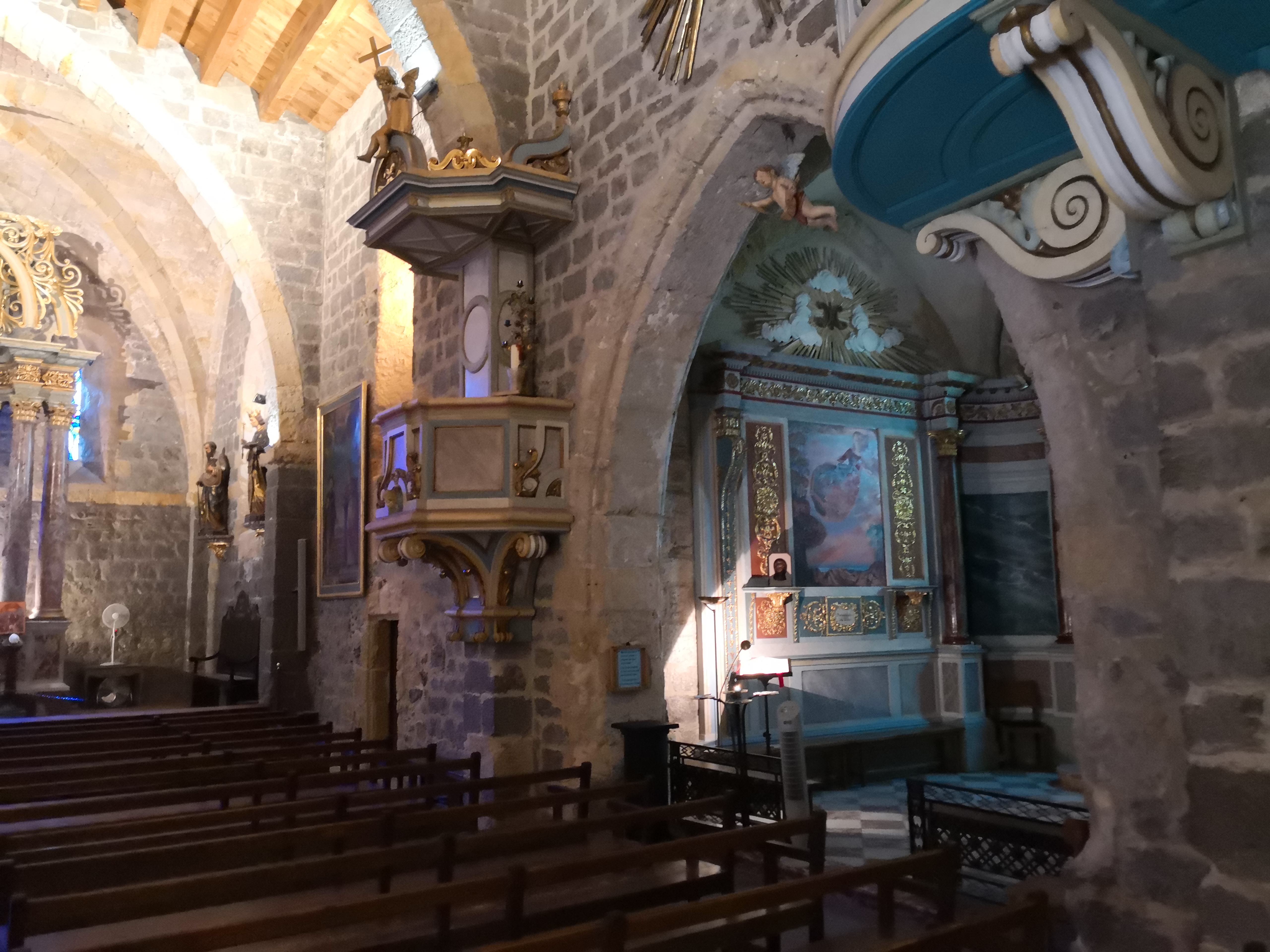 Très jolie église dont la voute représente un bateau inversé. La vierge trônant au dessus de l'hôtel singularise un décor baroque caractéristique de la région. A visiter !