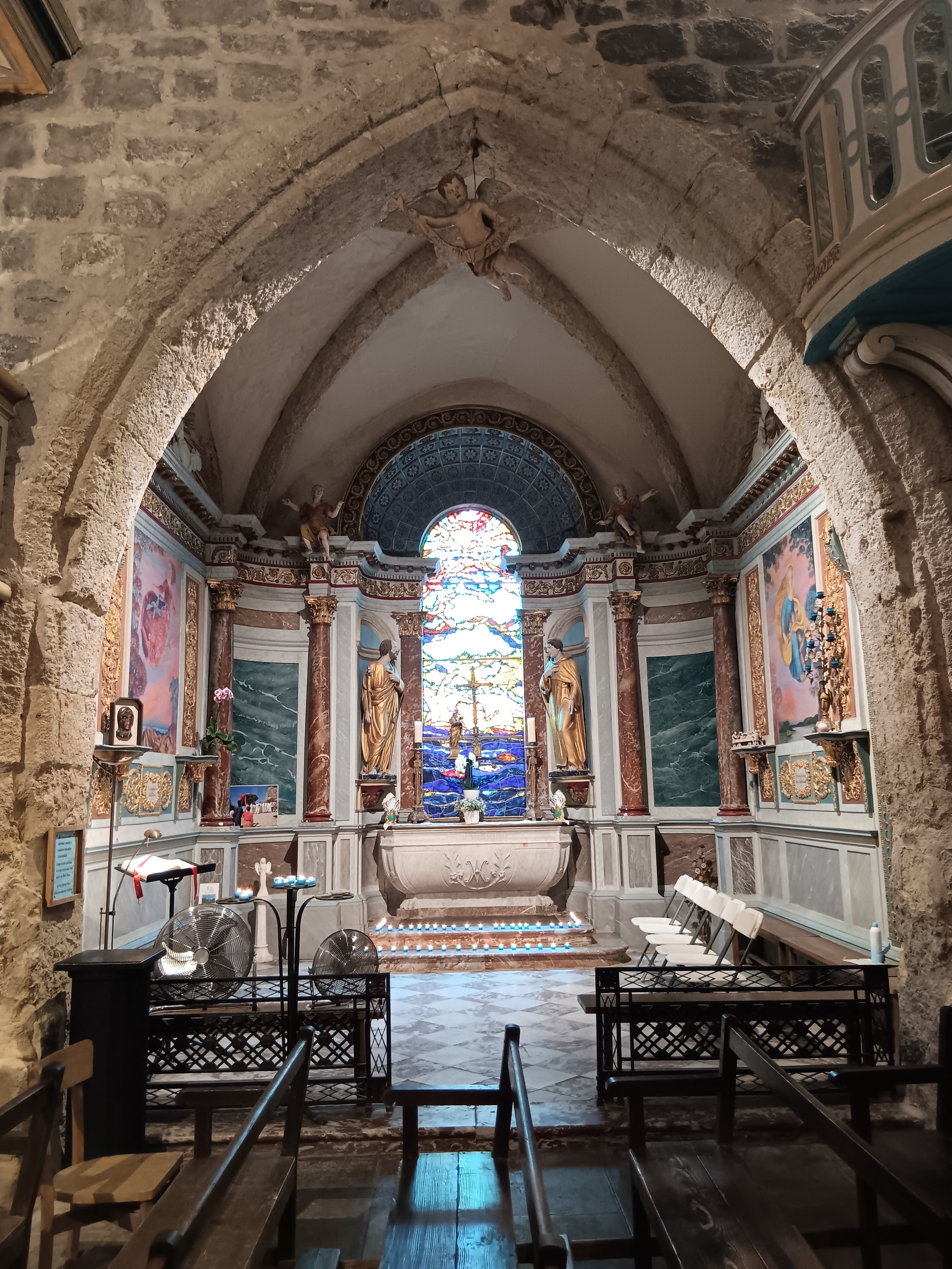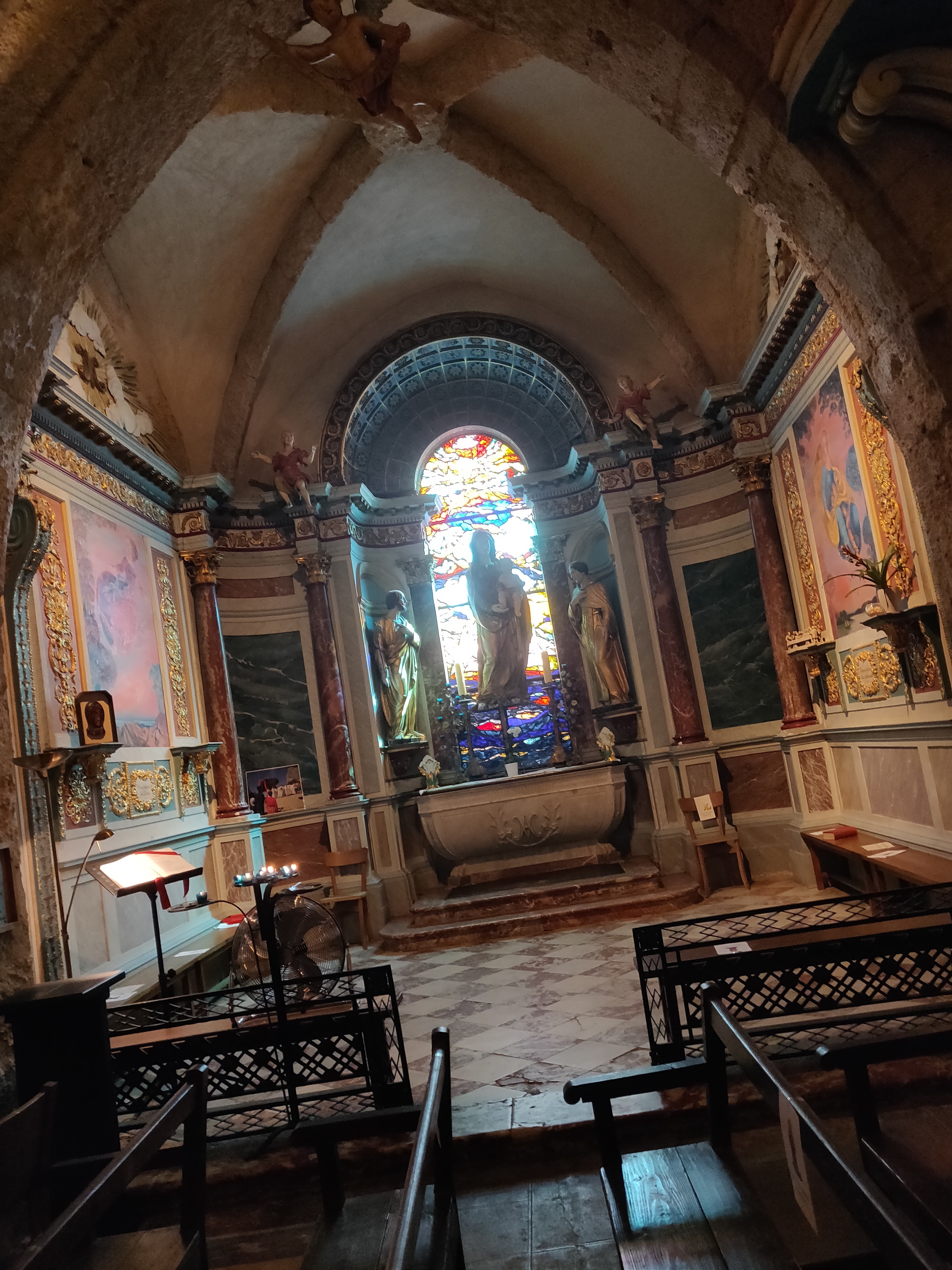 Un lieu intime et majestueux à la fois par ses décors originaux sur le thème de la foi des gens de mer.