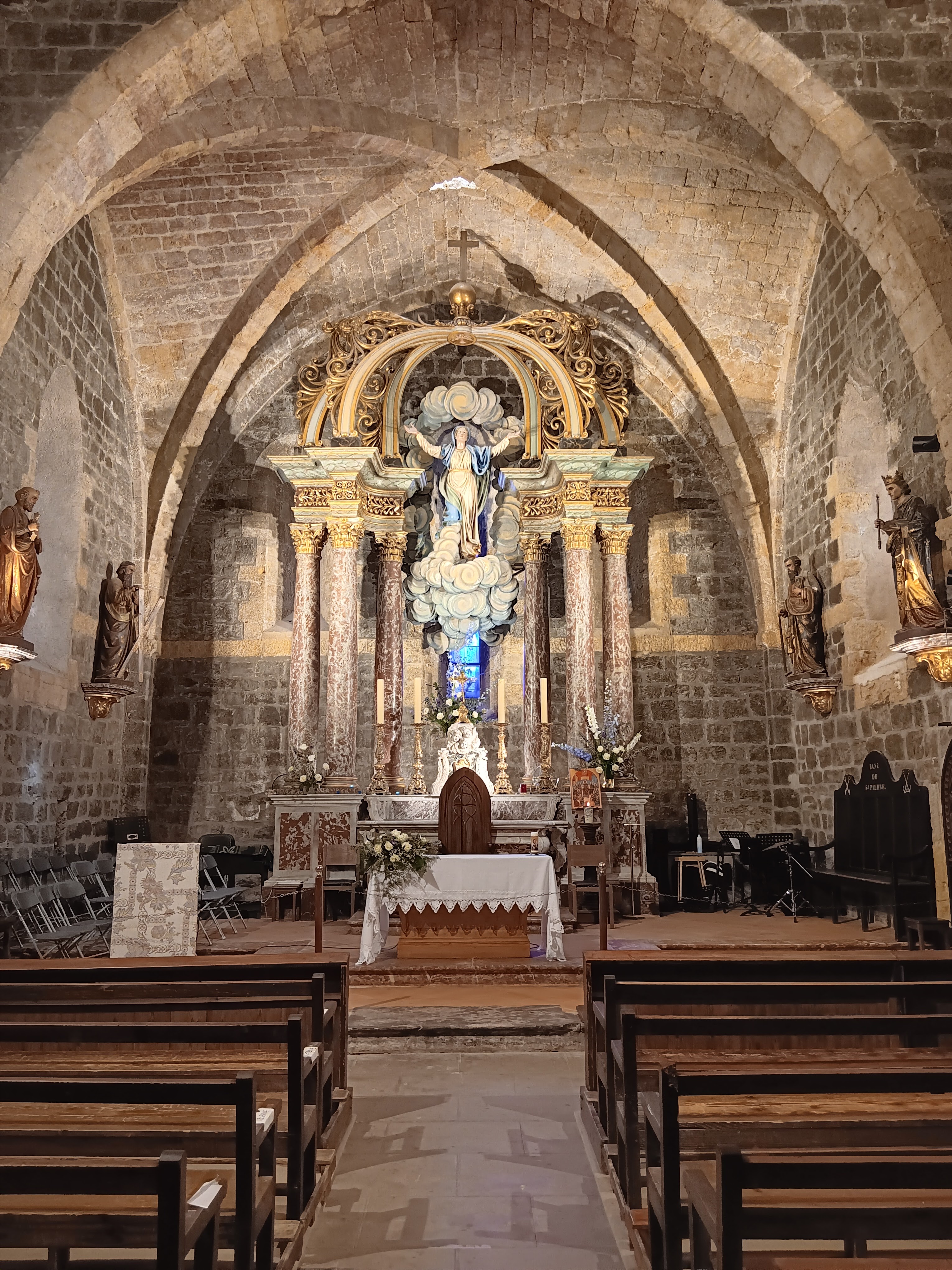 Magnifique église.avec un bâti de pierres bien ordonnées.Sentiment de paix.