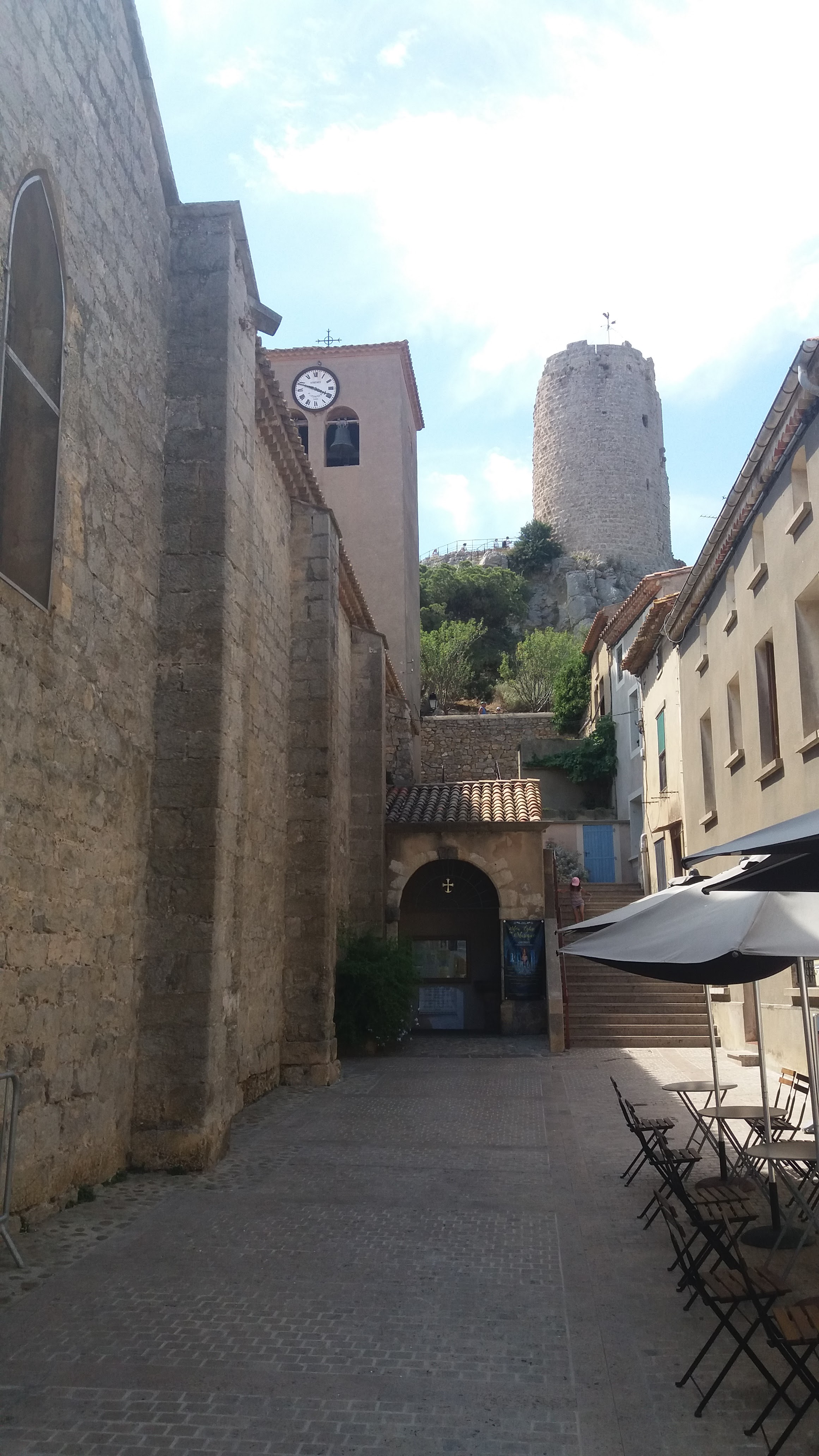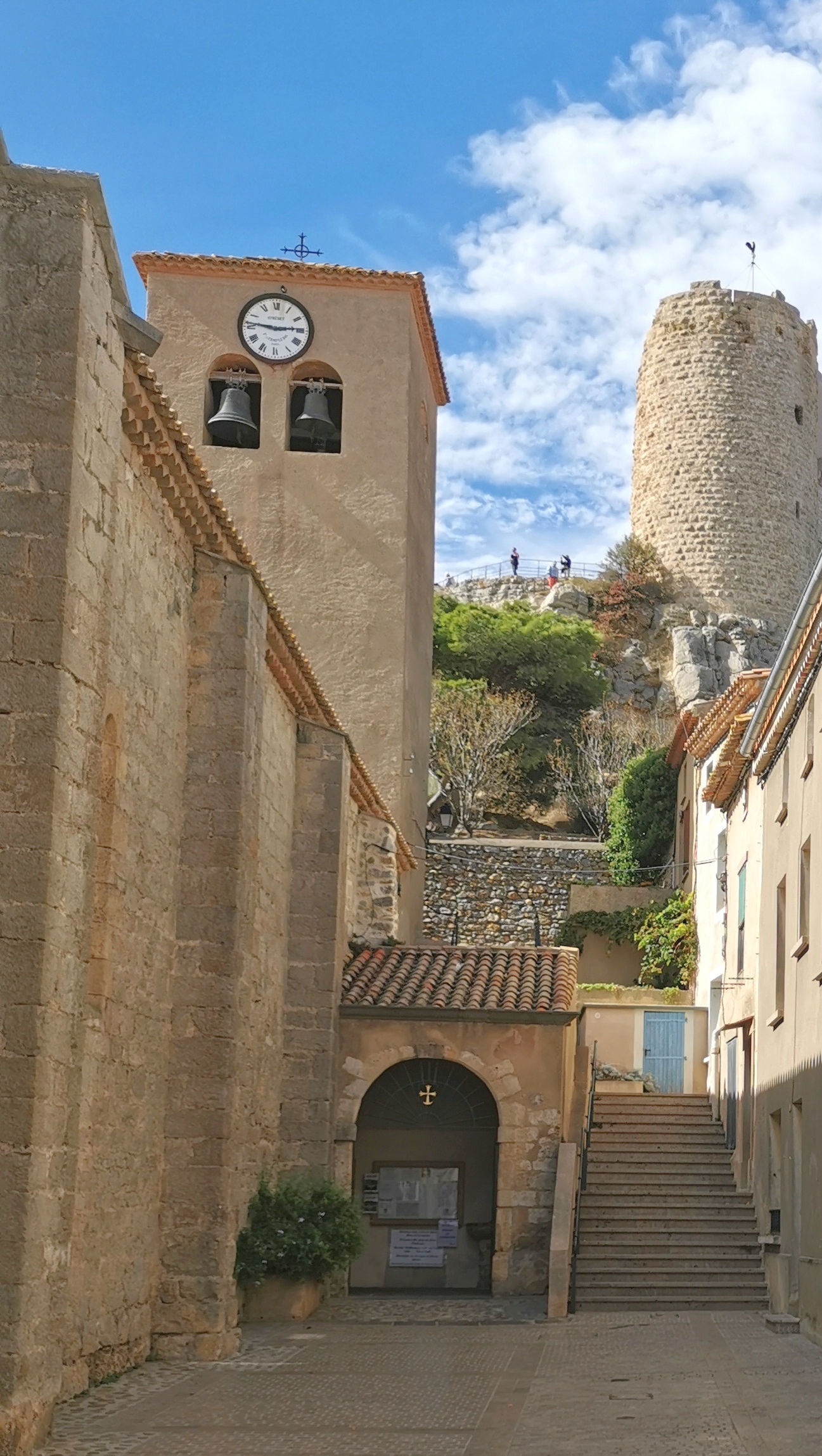 Magnifique église en bas des marches qui mène à la tour de barberousse à Gruissan