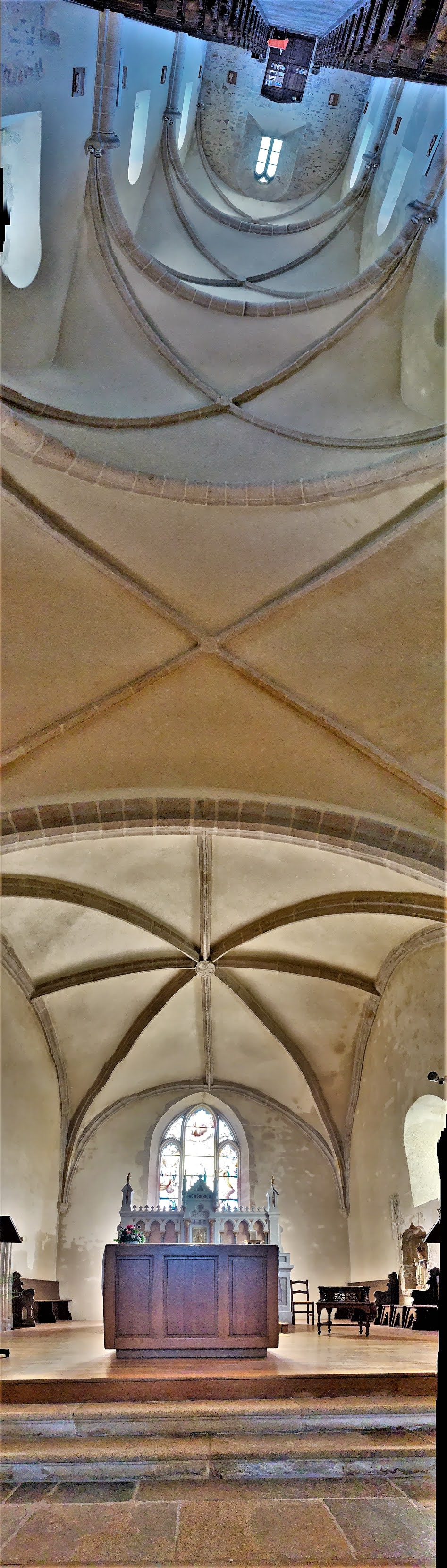 Inscrite depuis 1935 par les M.H., l'église Notre-Dame-de-l'Assomption est perchée sur une butte haute de 212 mètres. Encadrée par deux formes, dont on ne sait s'il s'agit de tumulus, de mottes castrales ou des restes d'une forteresse gauloise. Placée au milieu du cimetière, cette église construite au 12ème, sera souvent agrandie, modifiée ou restaurée au cours des siècles. Le portail est celui de l'église antique, il est protégé par un abri, nommé ballet, caquetoire ou galerie selon les régions. Le mélange des styles enlève ni son charme ni son harmonie à cette église. Ce lieu, l'église et tout ce qui l'entoure, est habité par l'histoire et parfaitement authentique. Ouverte et accueillante, c'est une église dont la découverte m'a comblé. Pour le détail, Les Châtelliers-Châteaumur a intégré la nouvelle commune Sèvremont (qui regroupe quatre communes). Sèvremont fait partie de la Communauté de Communes du Pays de Pouzauges (10 communes la composent).