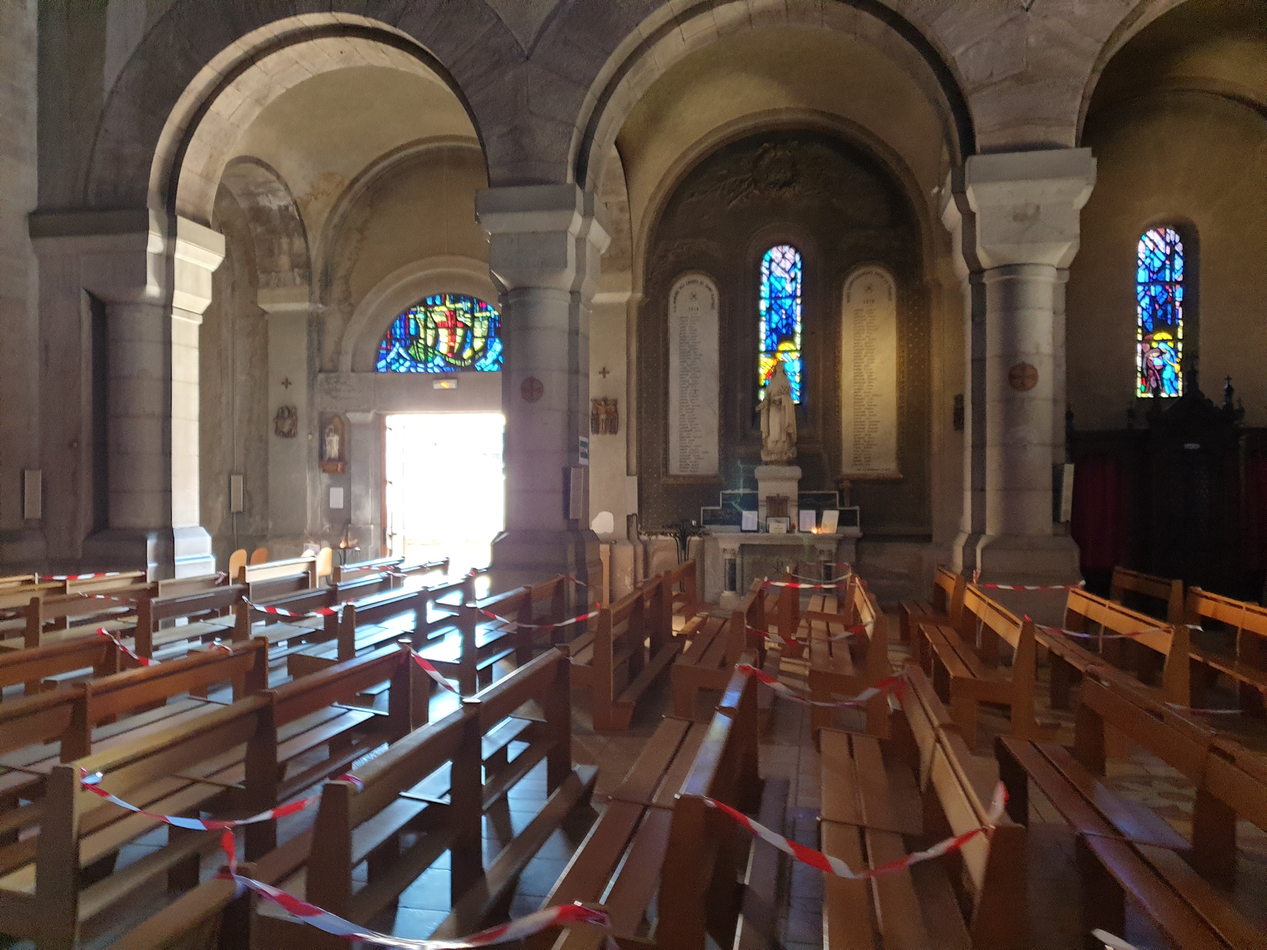 Participation à la messe à l'occasion du décès d'un membre du bureau de notre Association de retraités. Eglise vaste et de style moderne sans extravagance pour ne pas gêner le recueillement, quel qu'il soit.