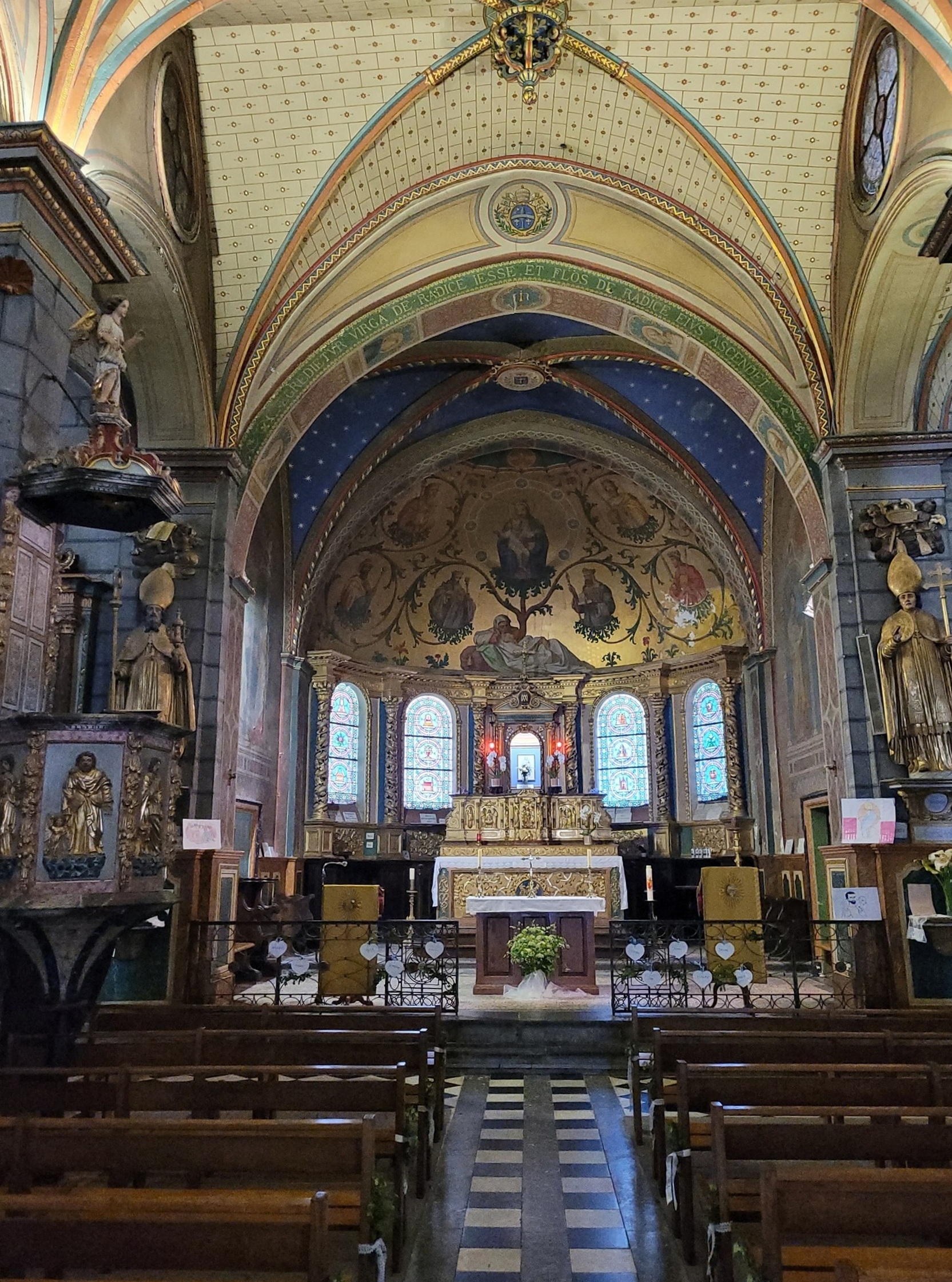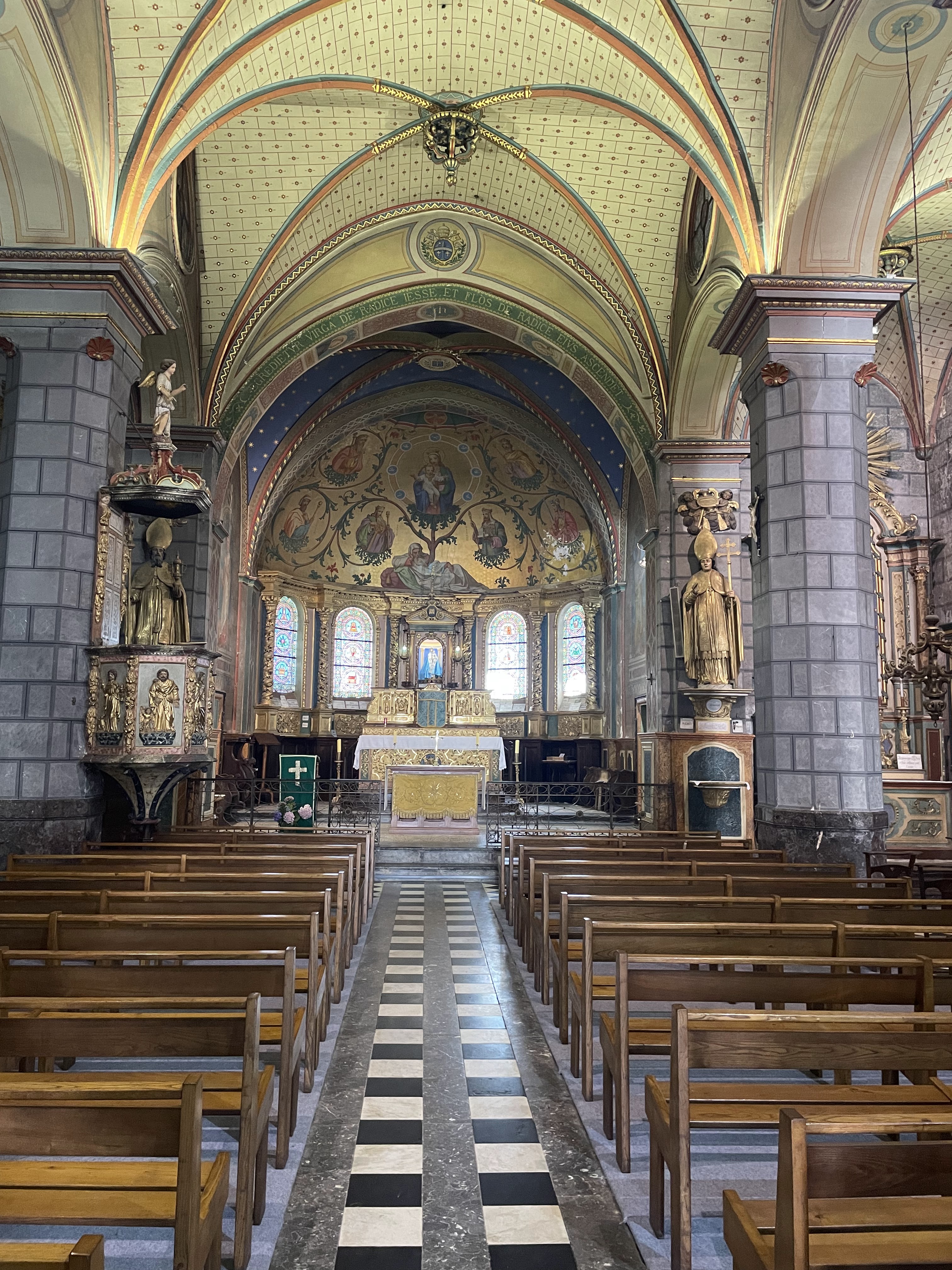 Belle église façade originale et intérieur riche