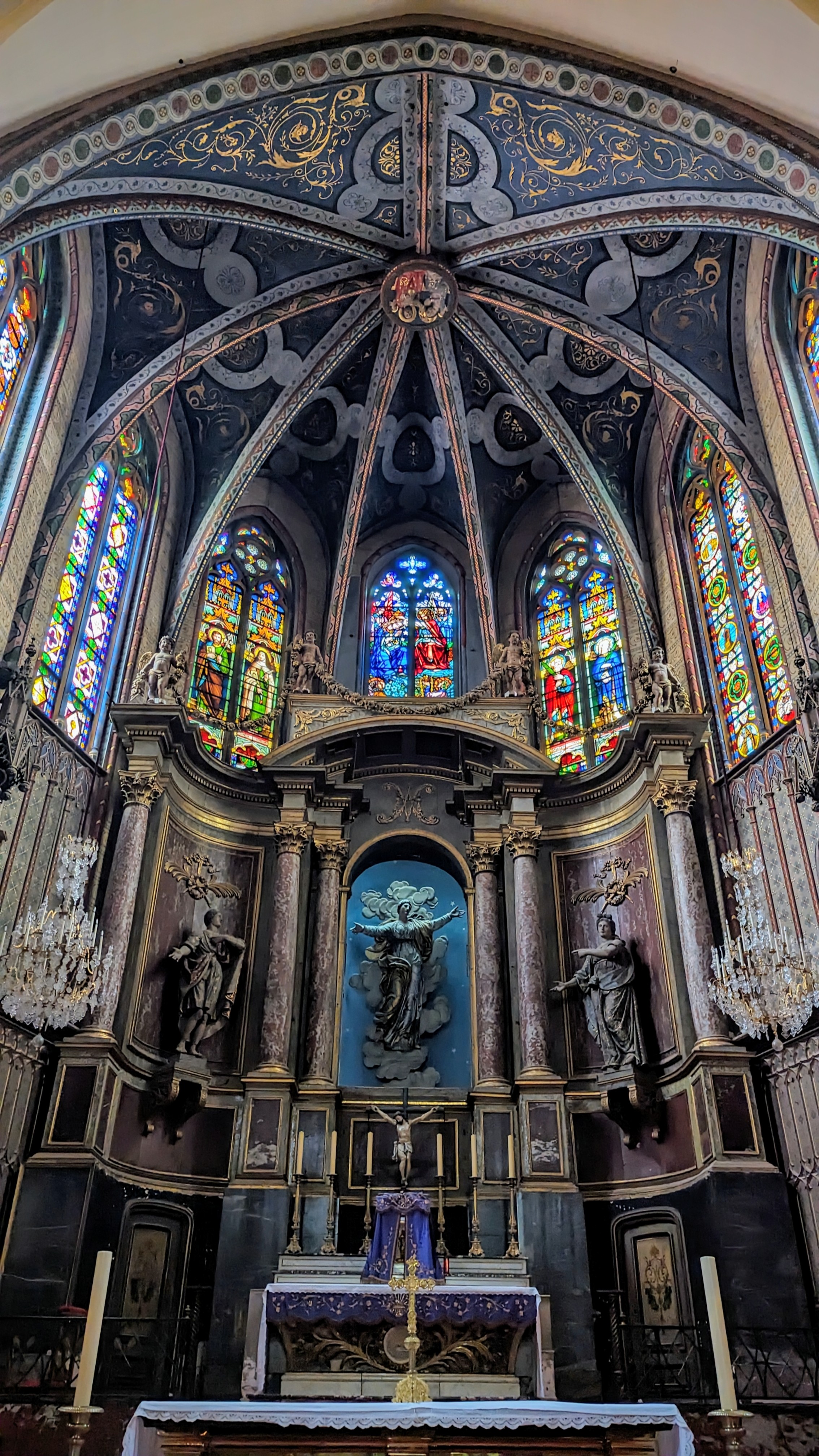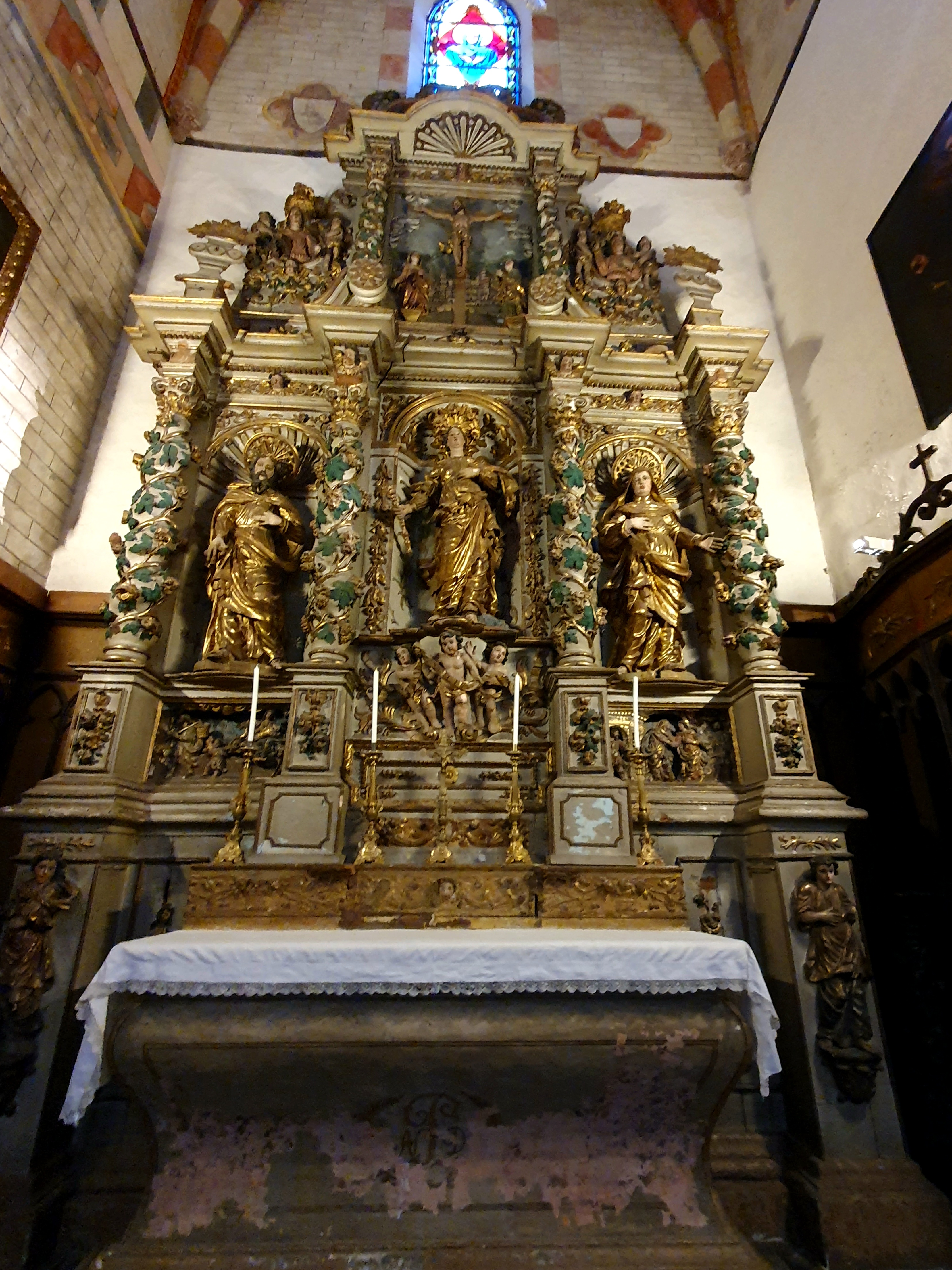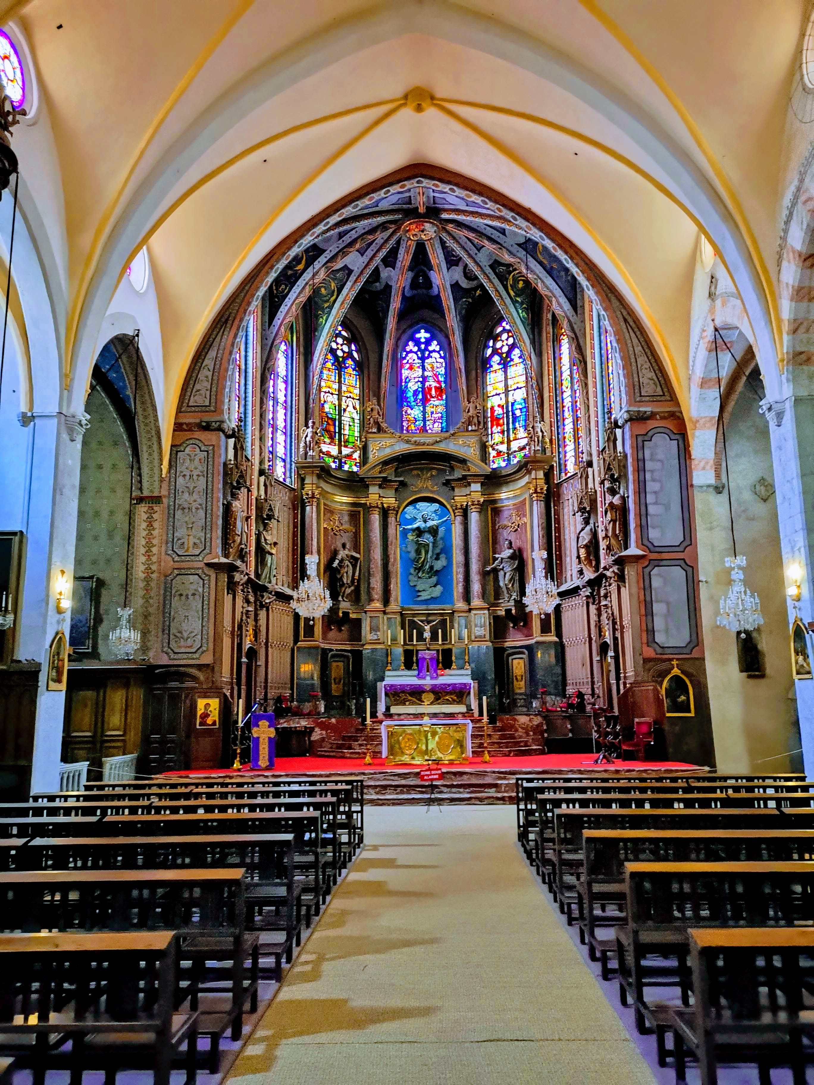 Endroit magnifique et calme, propice à la méditation et la prière, la décoration est remarquable avec cette rosace dans le pierre et ses Anges dans le Chœur de l'église relié par une corde de fleur de pierre assez étonnante, à voir !
