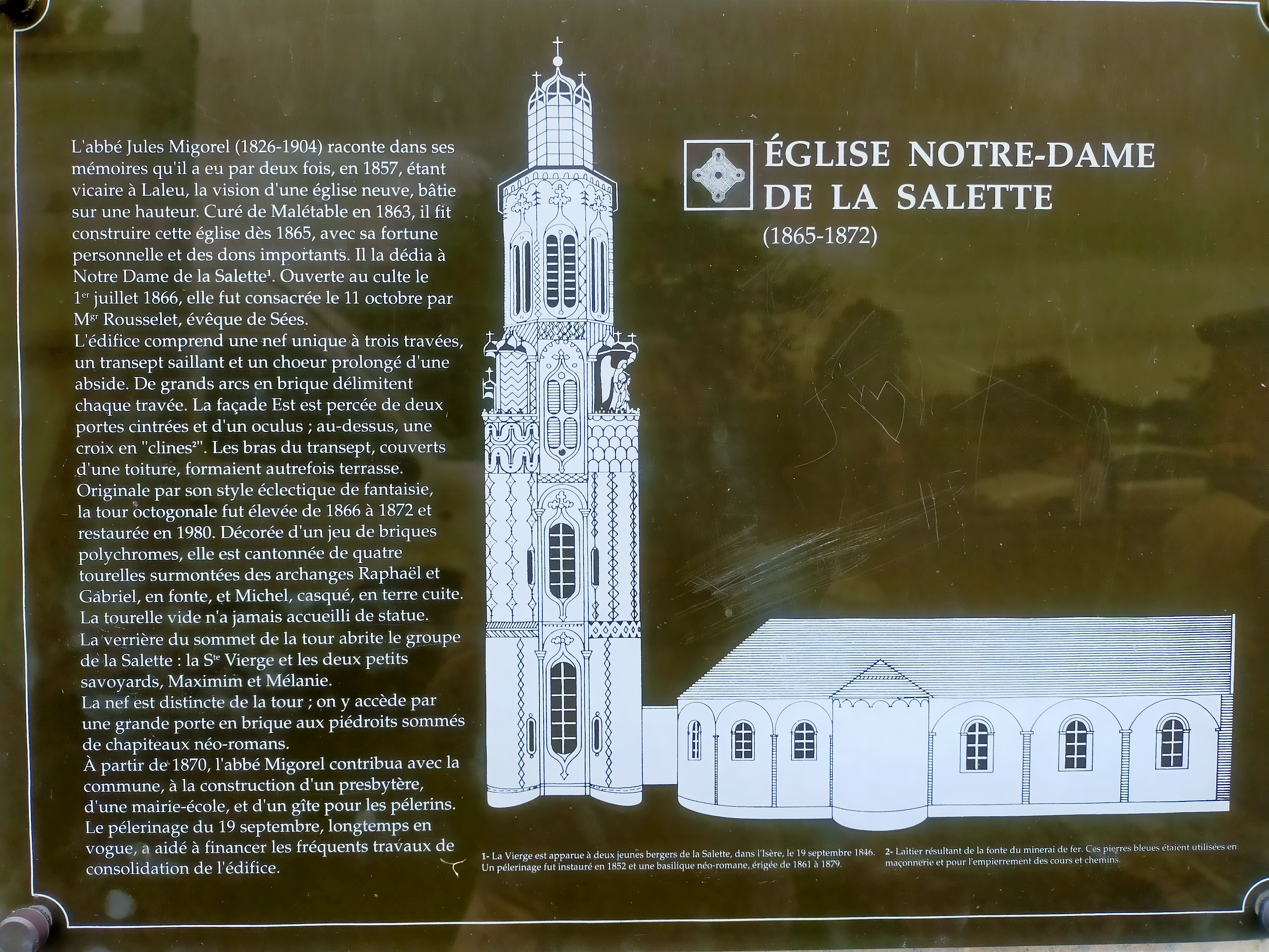 Un lieu magique marqué par une histoire très particulière. A l'heure ou j'écris ces lignes l'église est-on cours de restauration mais bientôt son clocher retrouvera sa splendeur. Aussi une fois terminé grimper en haut du clocher pour y admirer le superbe panorama en compagnie de notre dame de la sallette qui de ses trois mètres vous accompagnera telle un phare dans la lande normande. Un édifice qui deviendra incontournable dans l'orne très prochainement.