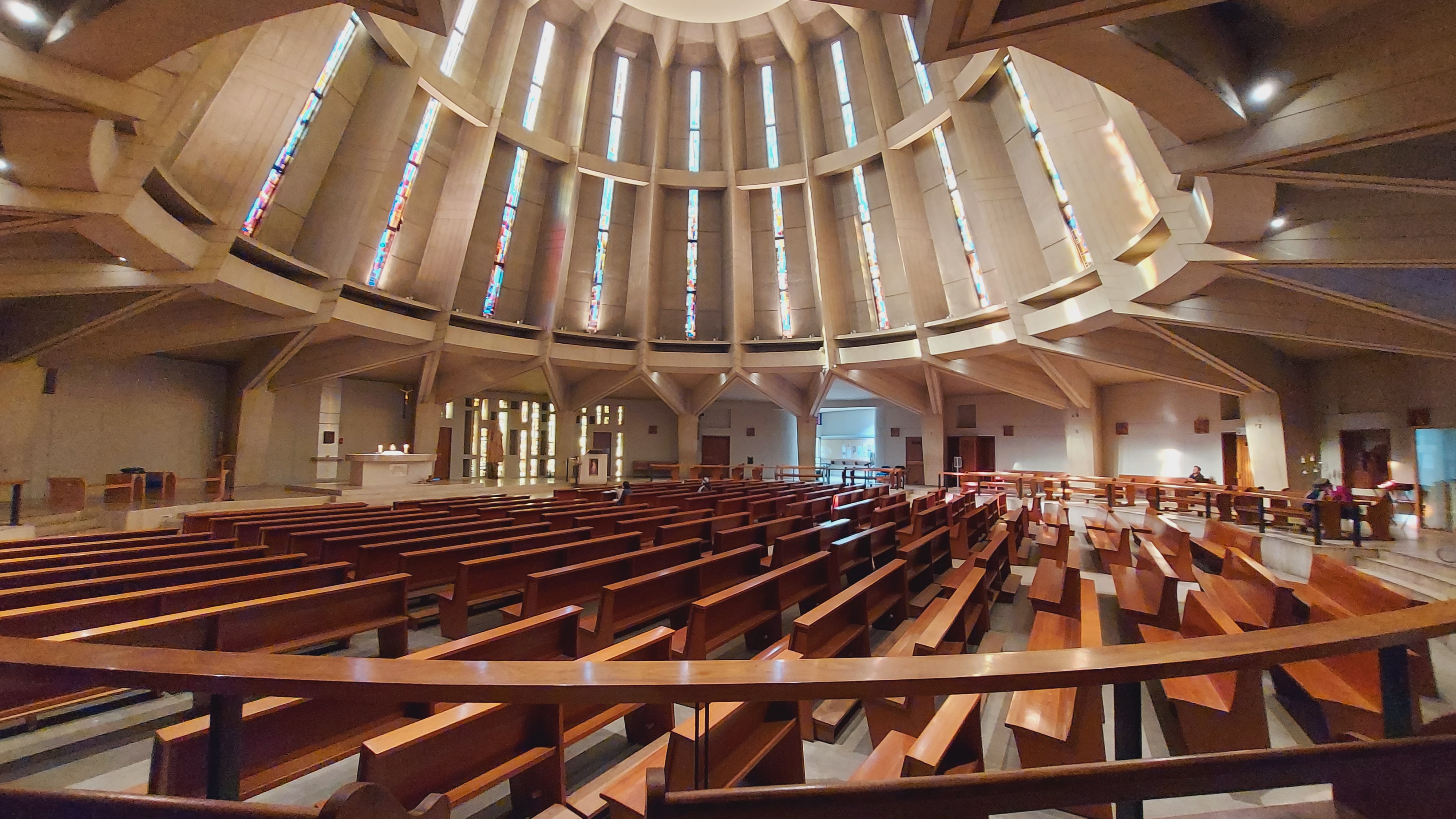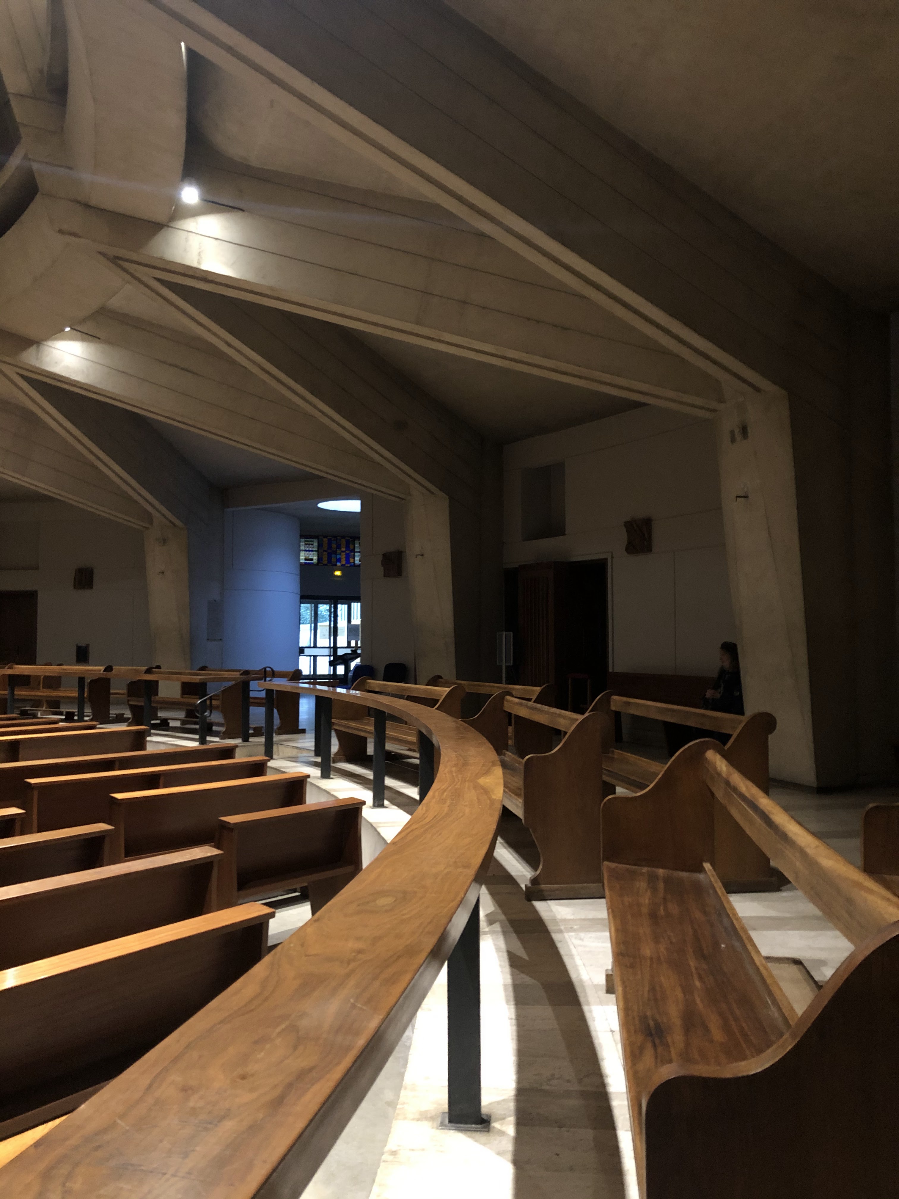 Forme ronde et originale, on s'y sent bien. Chorale magnifique pendant les messes, et homélies percutantes du père Mura. A voir.