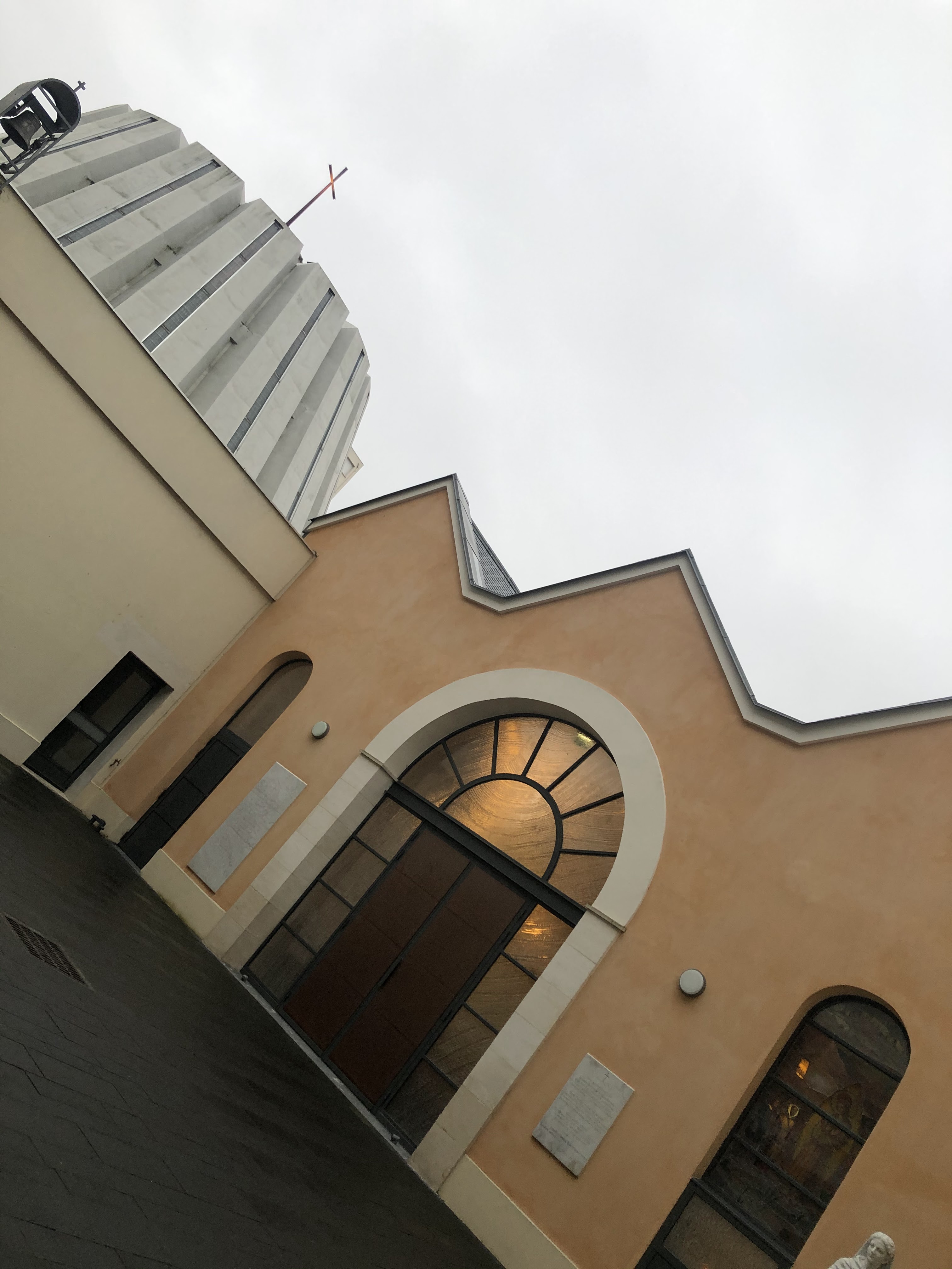 Etonnante eglise moderne cachée au coeur du 15 eme , serrée entre les immeubles parisien. Lieu de paix dans la ville