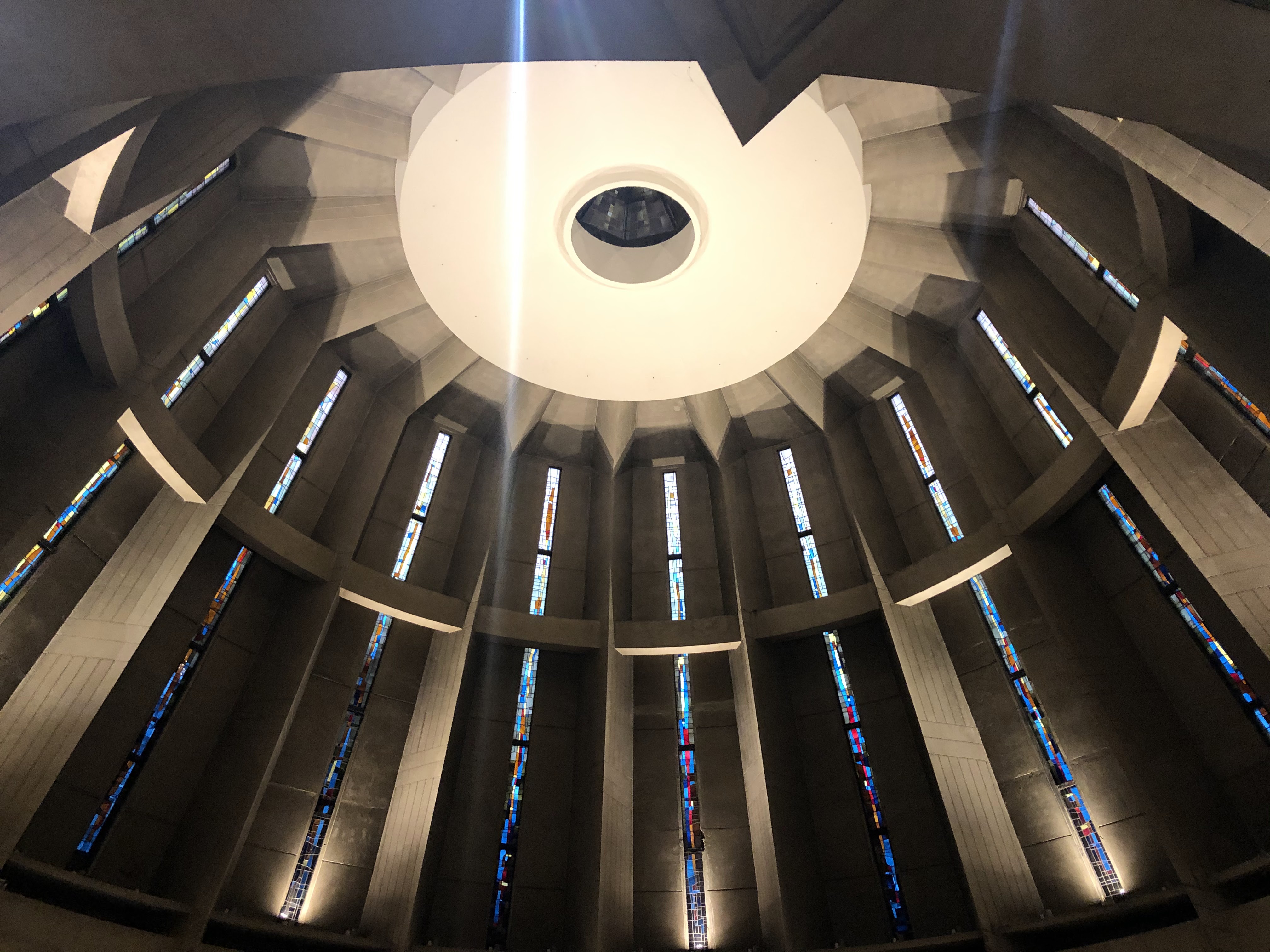 Eglise de quartier circulaire, sobre et moderne. Le puit de lumière éclairant toute l'église favorise le recueillement et l'apaisement. À signaler l'orgue également très moderne à hauteur de fidèles.