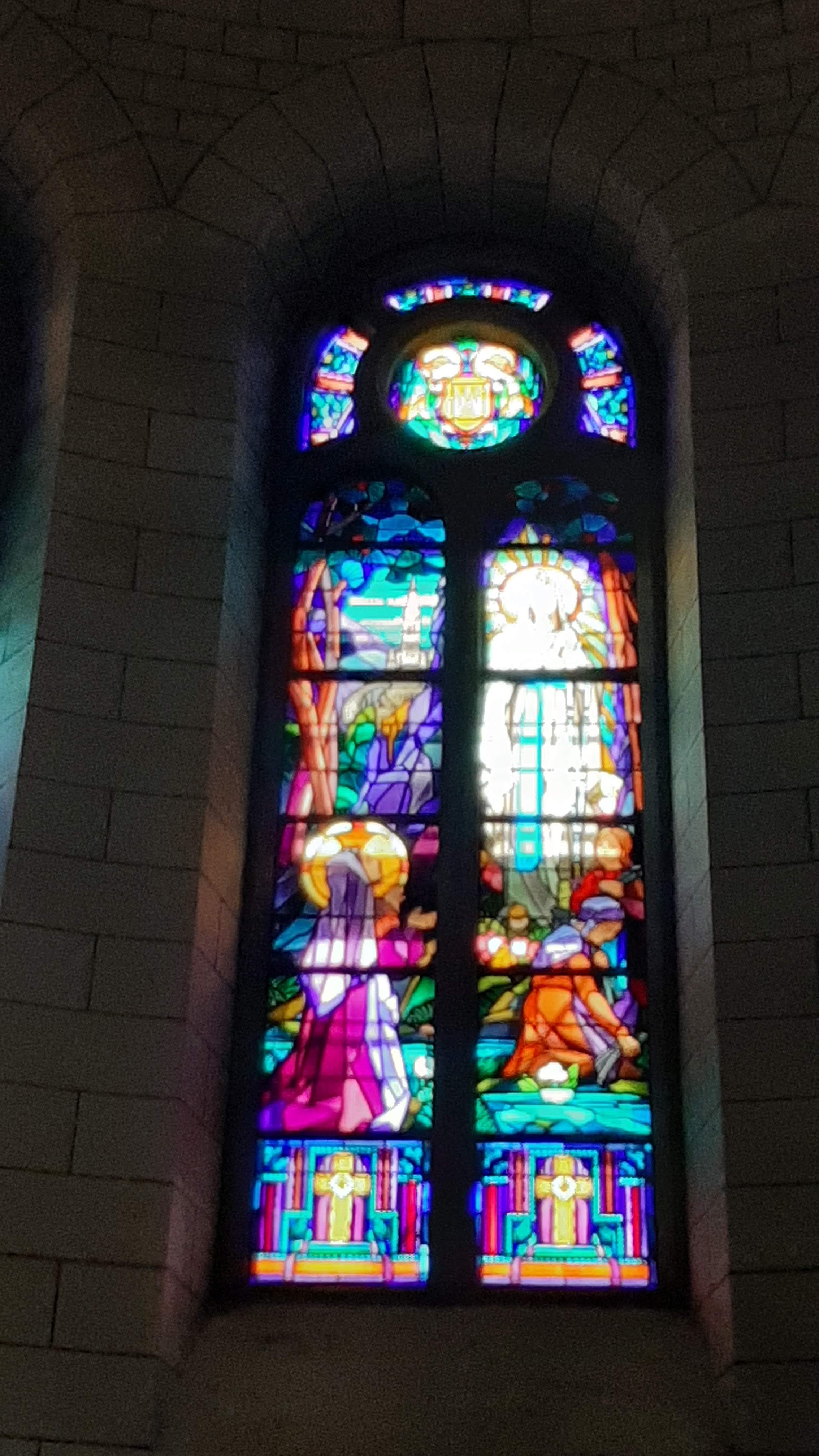 Entrez dans l'église qui est très lumineuse avec tous ses nombreux vitraux