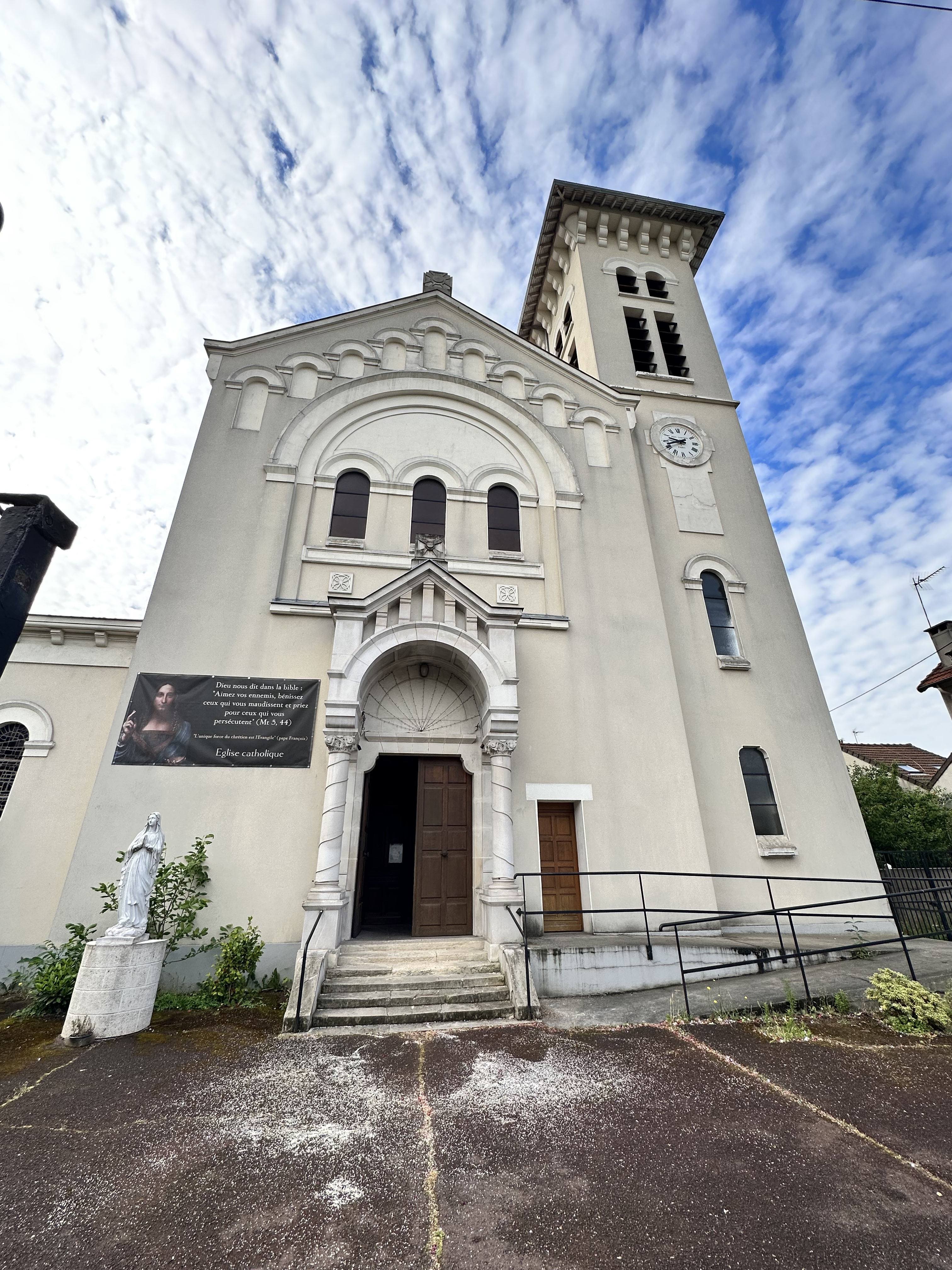 Belle église style début xx siècle.. A l intérieur un style classico /moderne avec ces vitraux colorés et ces belles statues... Bel orgue également... Un lieu chaleureux pour y faire une prière...