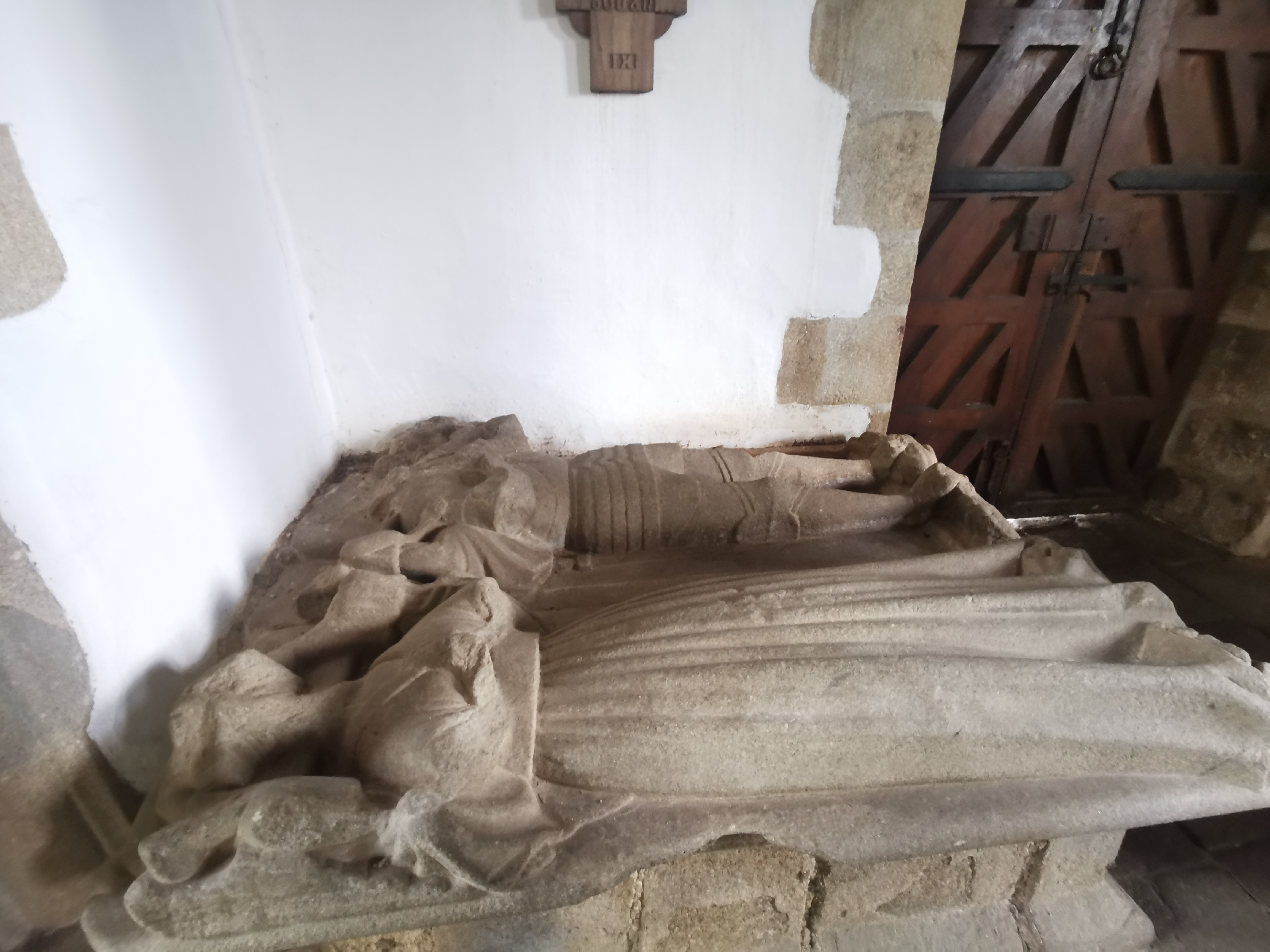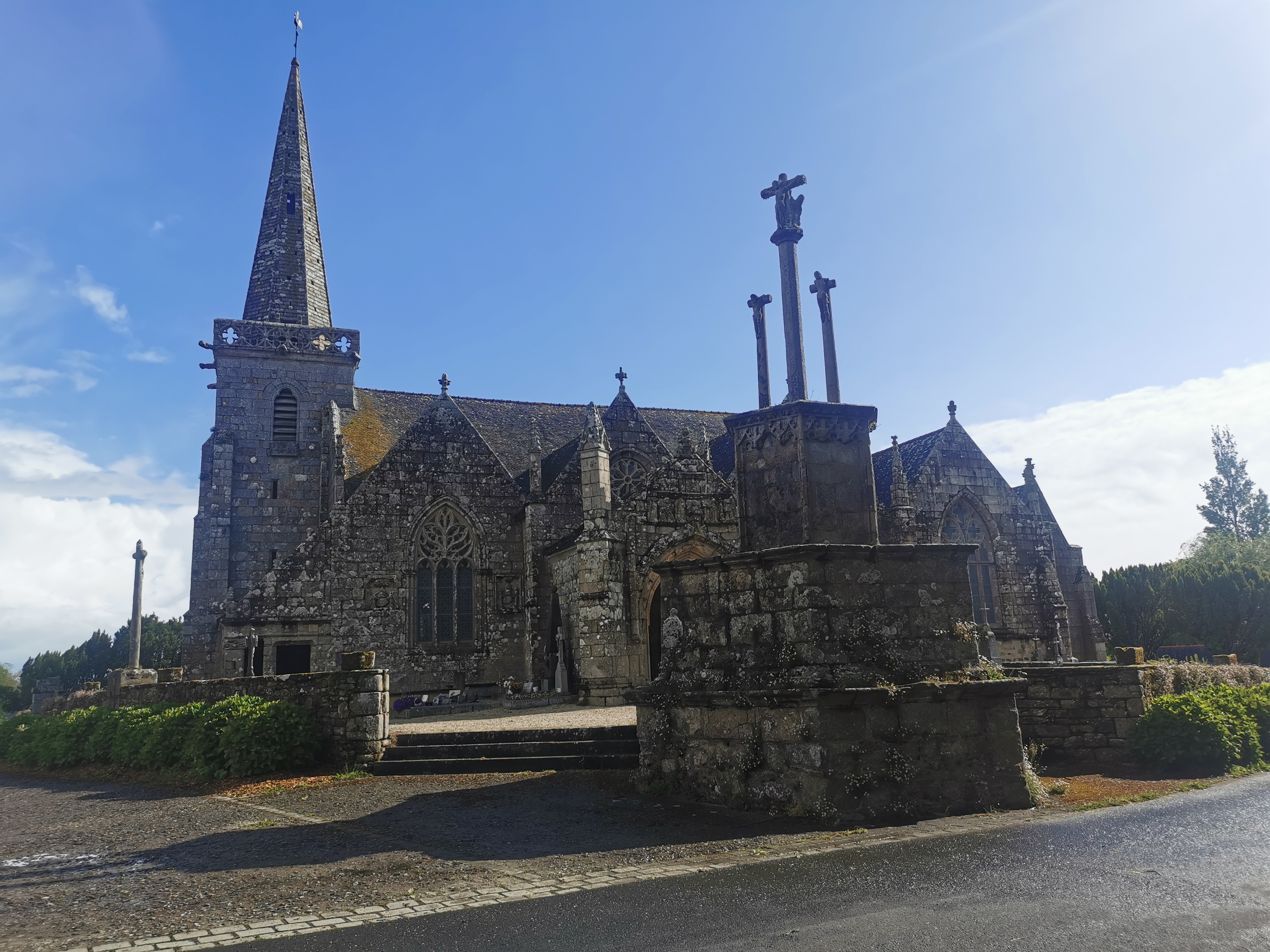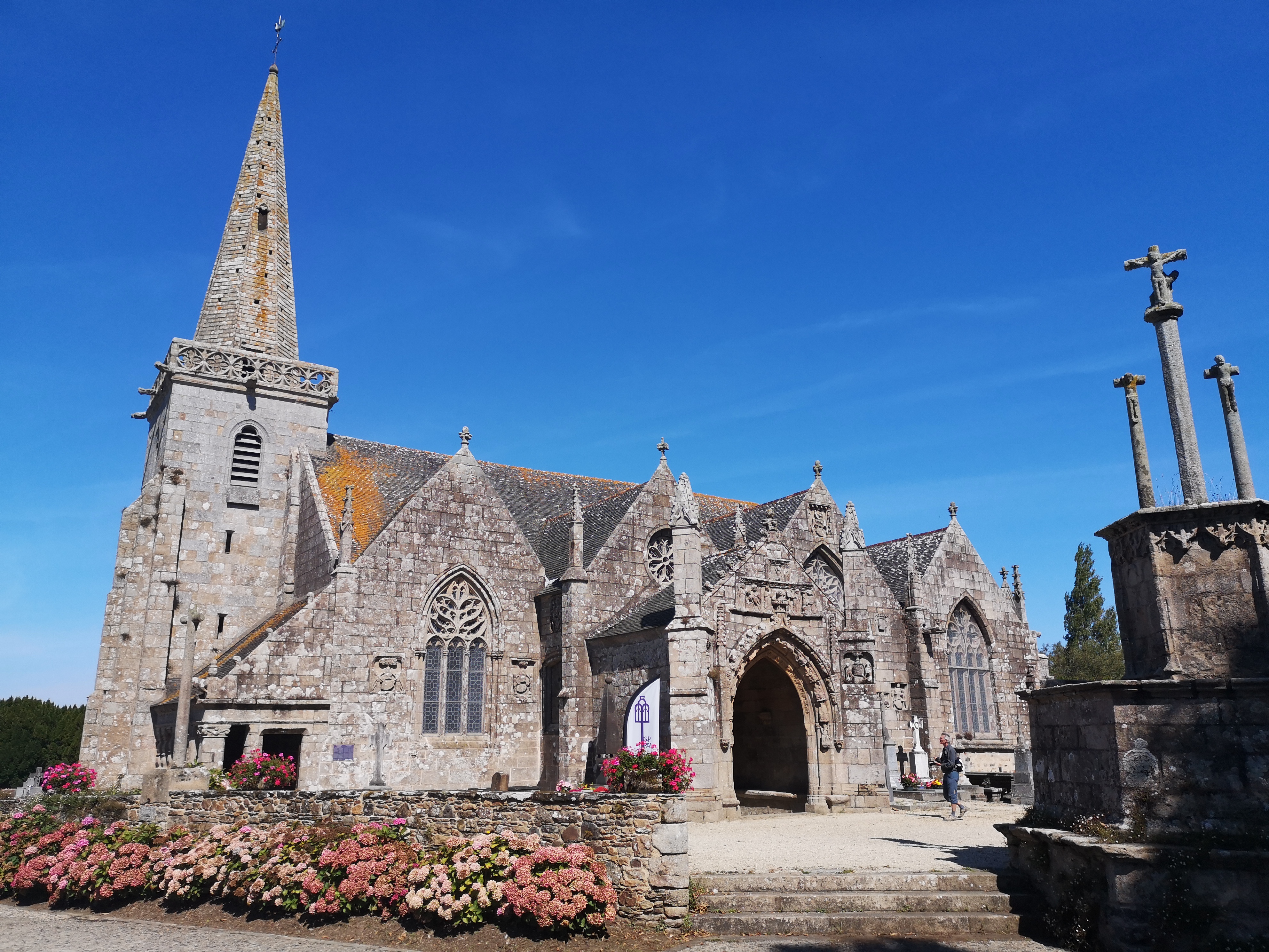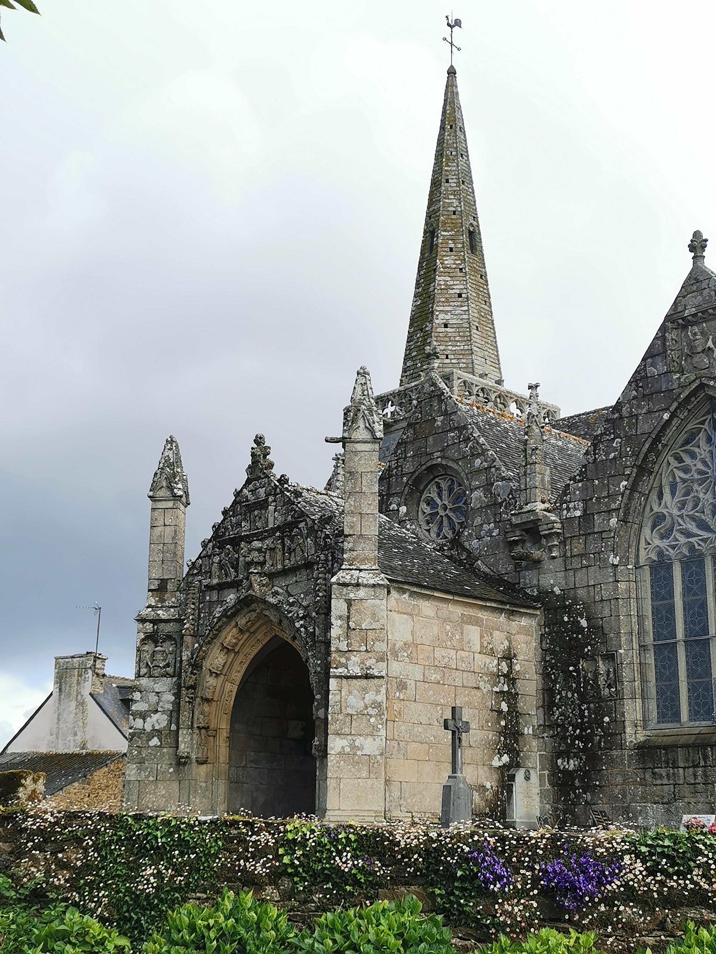 Visite de 20' avec un guide bénévole. Seul prerchoir extérieur en Bretagne. Des têtes qui tirent la langue à l entrée de l'église pour indiquer aux mauvaises langues et rester dehors. Ornant une des chapelles, celle de gauche des têtes de mort façon pirate, plutôt étonnant ! De nombreux saints à l'intérieur tel st yves Le tombeaux des seigneurs de la roche jagu à l'entrée de la chapelle