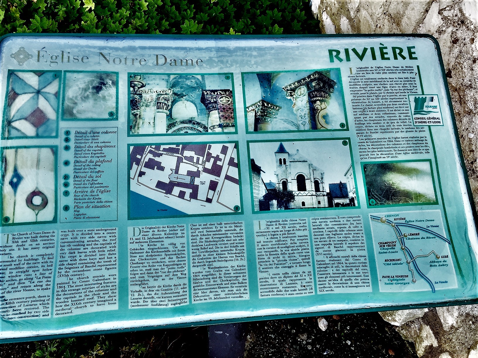 Rivière est un tout petit village typique delà Touraine. Discrète, son église est incroyablement décorée à l’intérieur. Plus grande qu’il n’y paraît, elle possède quelques recoins, un gisant et de belles statues. Sa visite est incontournable.