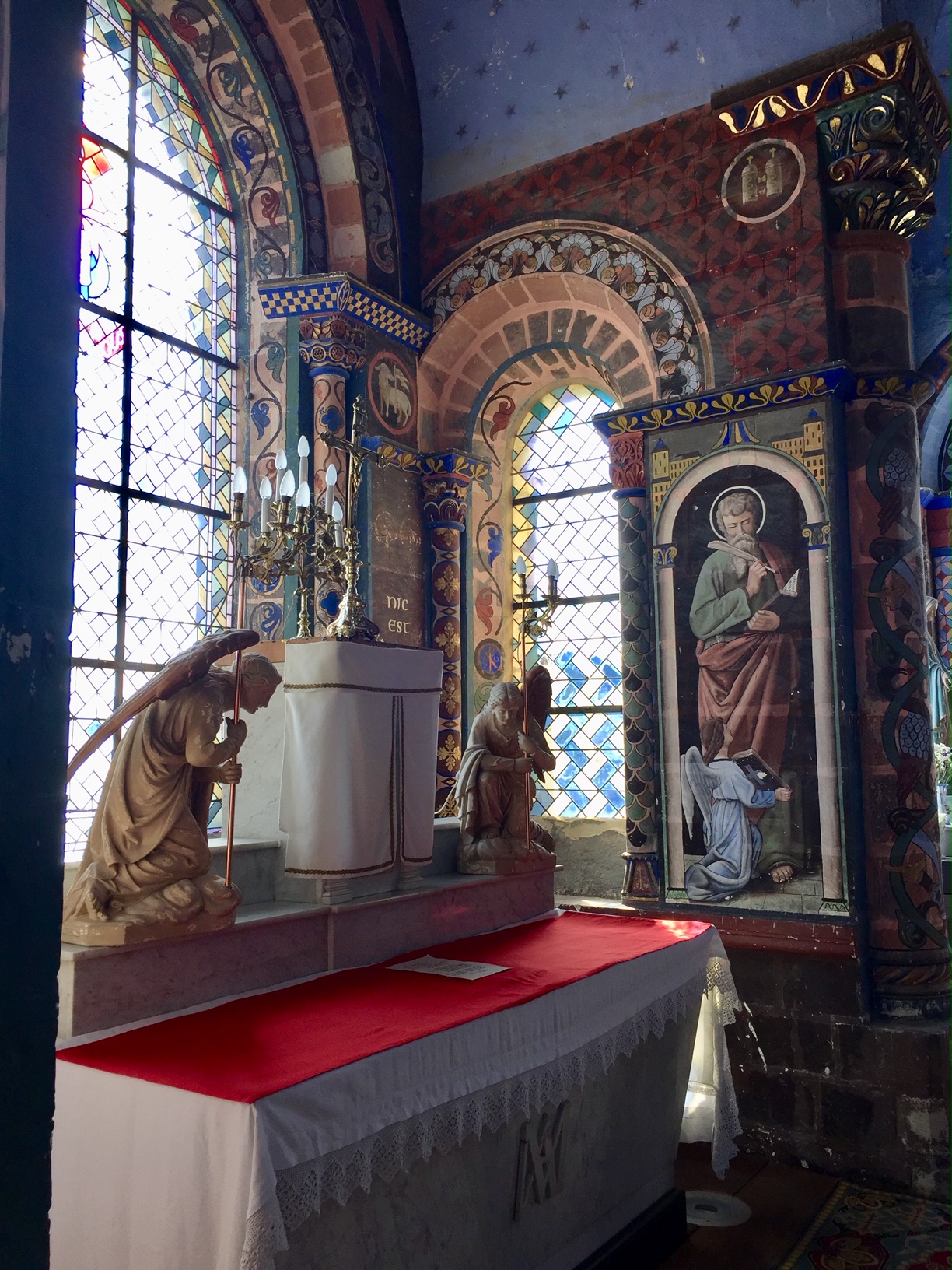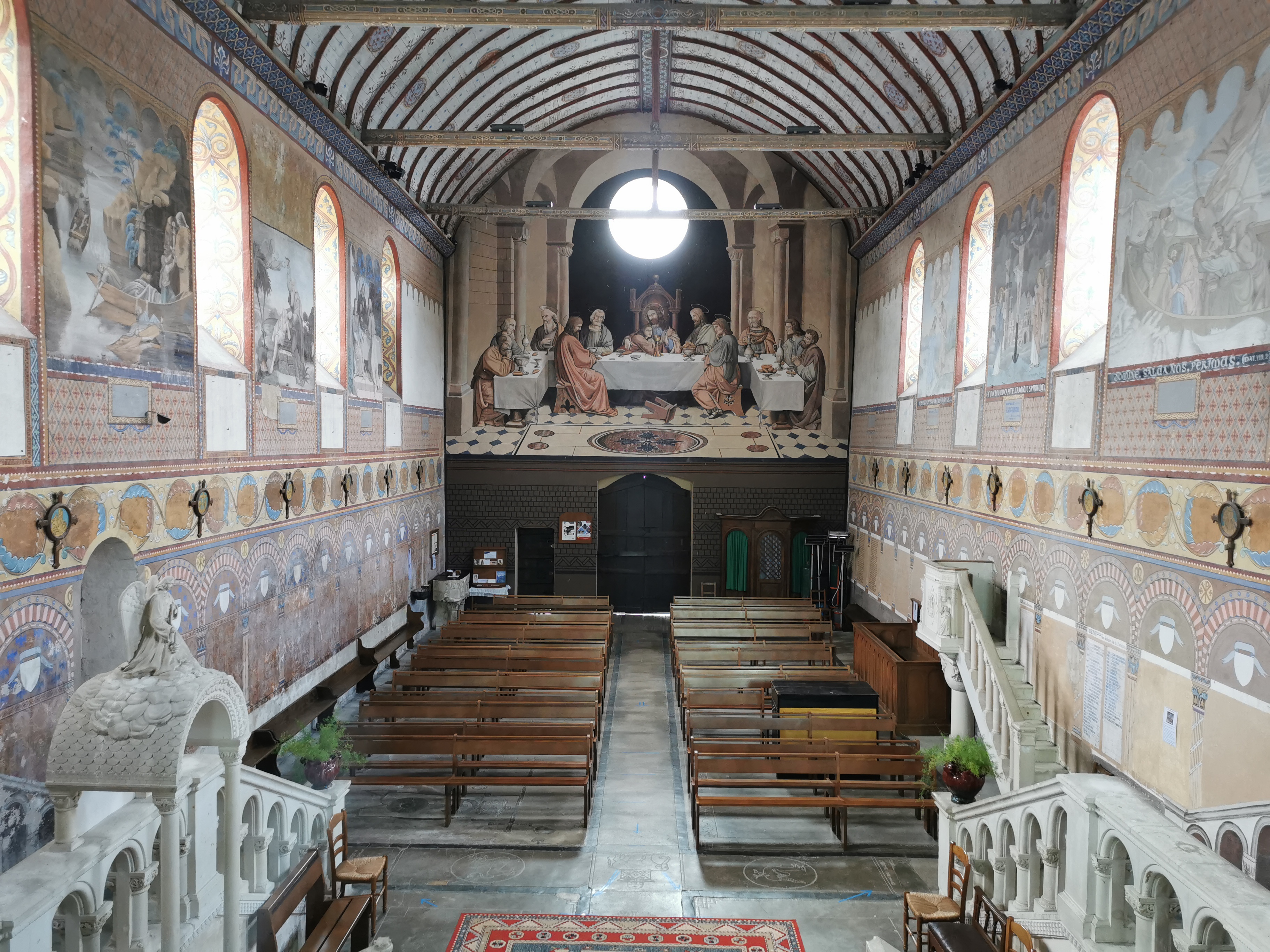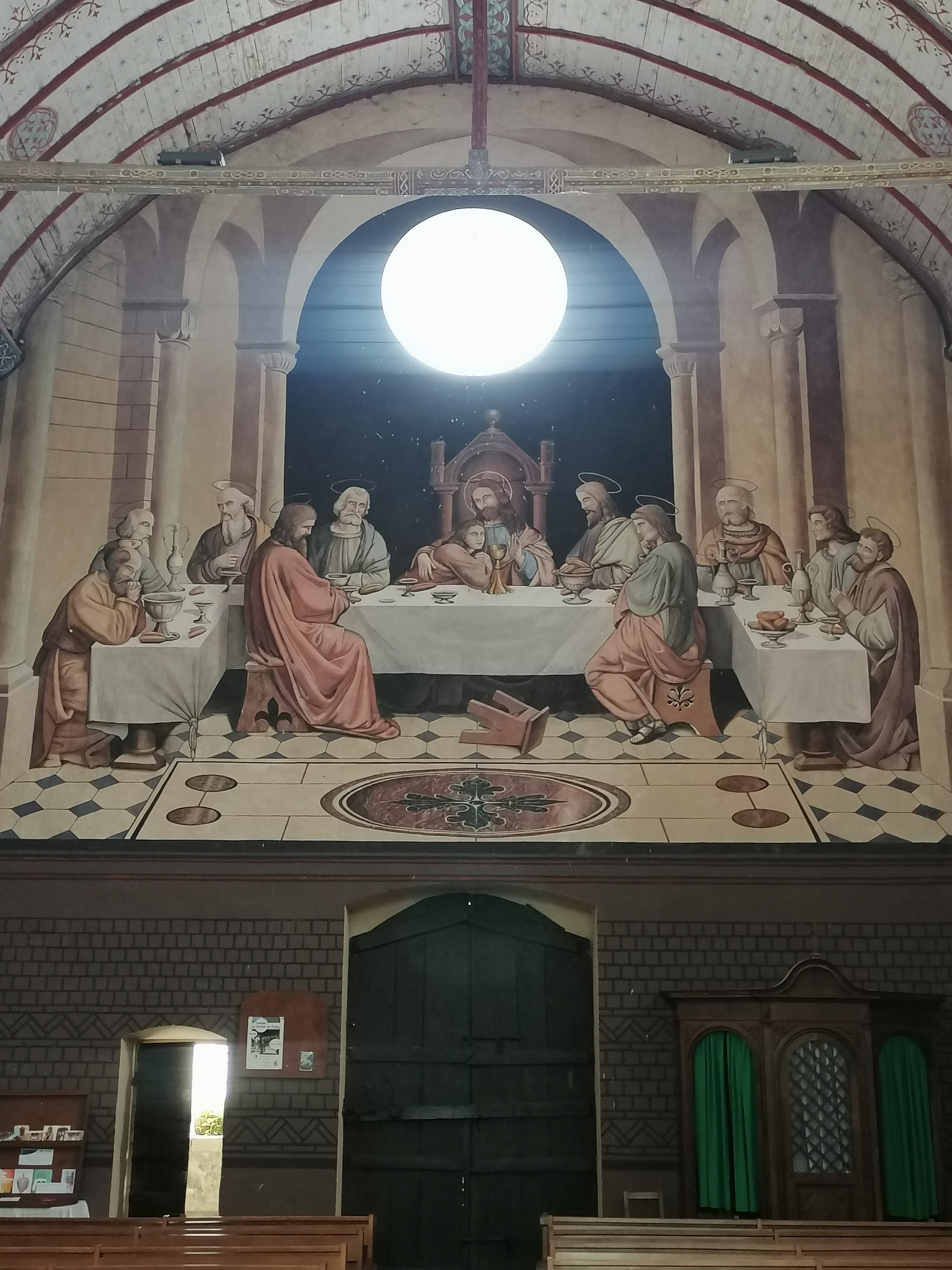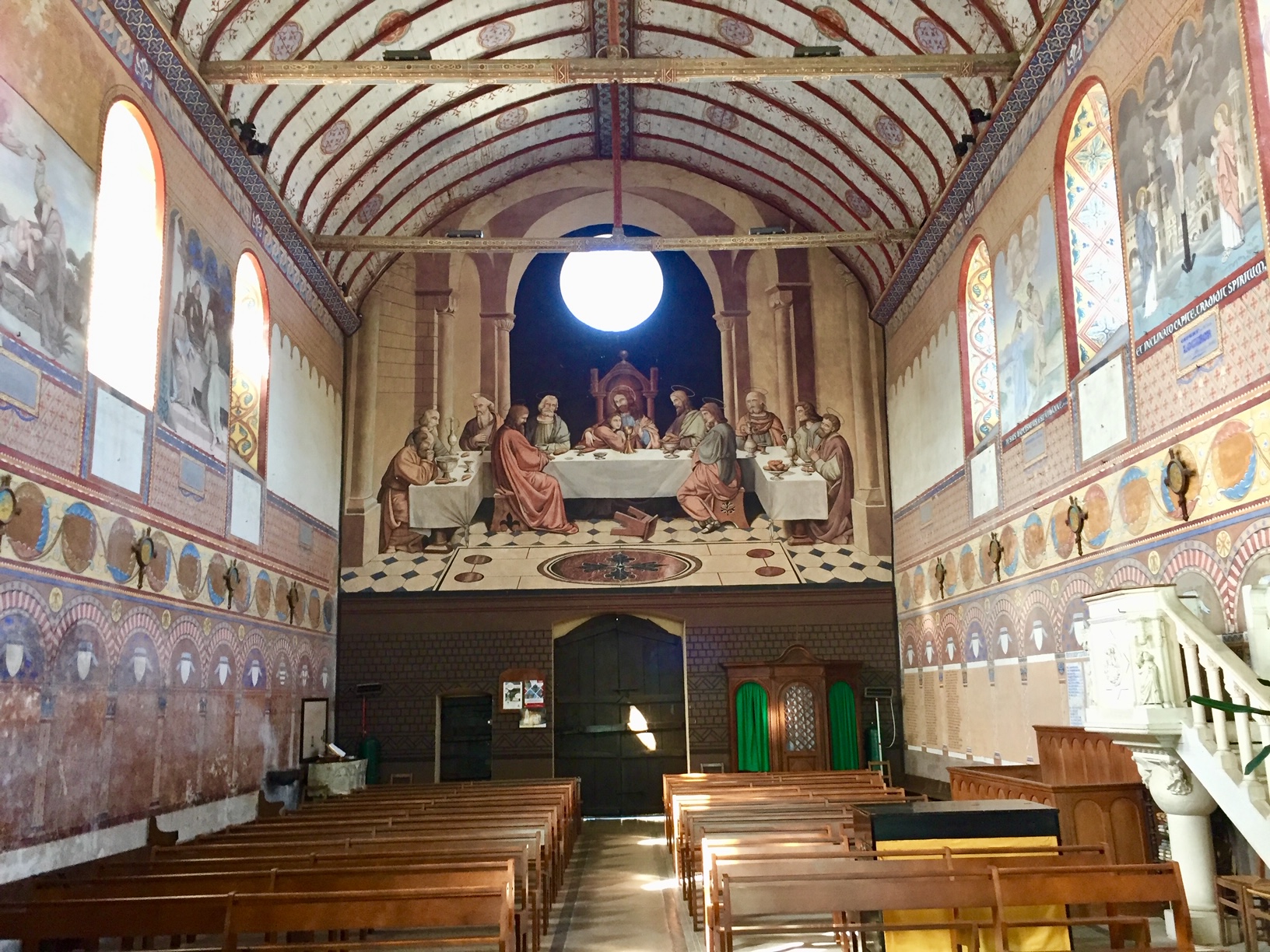 Petite église absolument extraordinaire où les symboles alchimiques côtoient une cène ne laissant aucuns doutes sur la relation pour le moins amoureuse de JC et MM. A voir absolument.