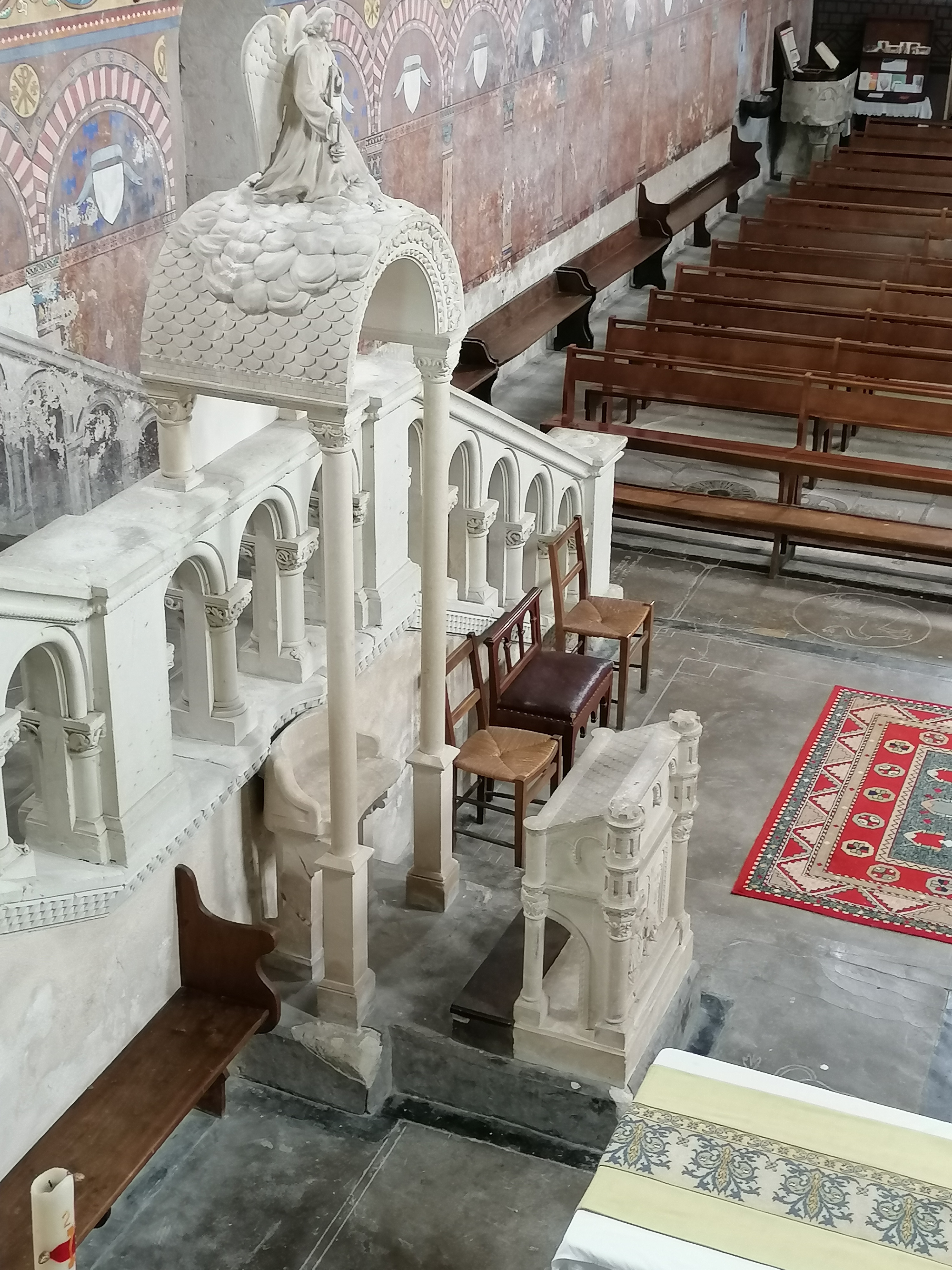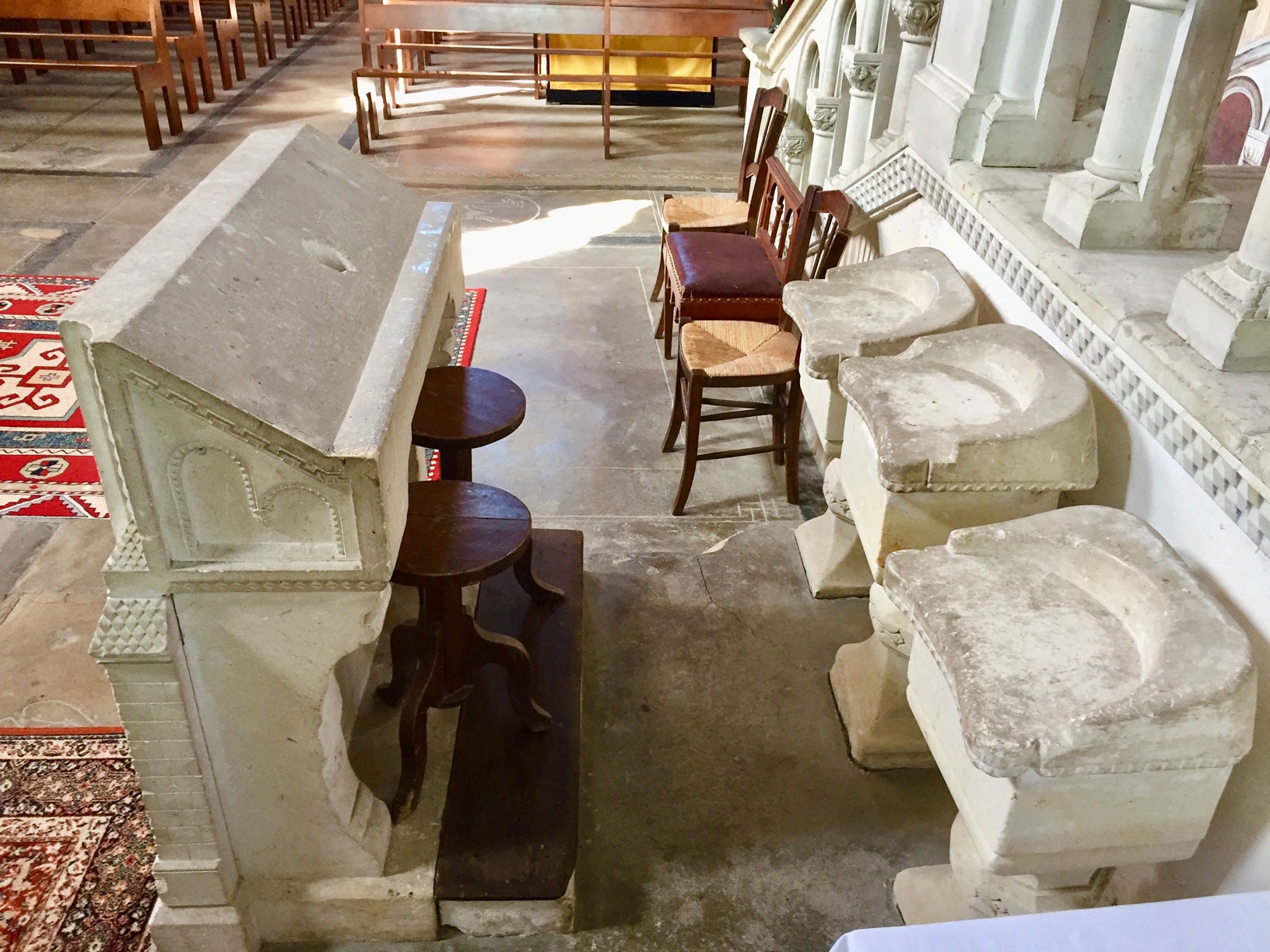 Église très sacerdotale, avec l'autel majeur qui est au premier étage, au dessus des fidèles, et au-dessus du lieu où ont prié des grands personnages de l'histoire de France.