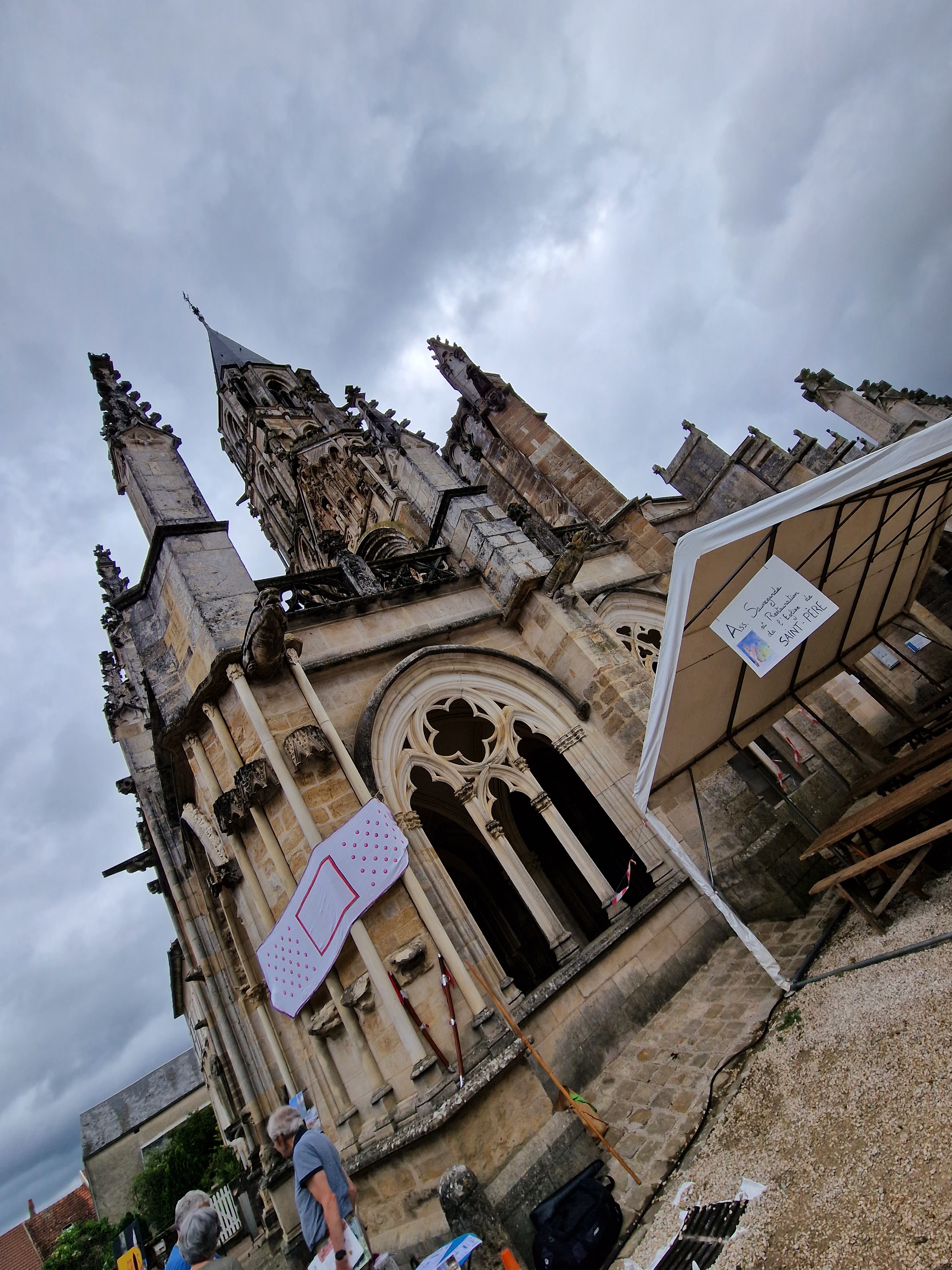 Située au pied de la colline éternelle de Vézelay dans le petit village de Saint-Père, cette église est un joyau de l'art gothique Bourguignon (1240-1455) et un impressionnant vaisseau de pierres qui détache sa haute silhouette à 50m de hauteur. Son majestueux clocher du 18ème siècle est décoré, à ses quatre coins, d'anges musiciens. Sur un porche à trois portails, le fronton est lui aussi remarquable. Cet édifice harmonieux est d'une surprenante beauté. Cependant un regret voire une frustration....de n'avoir pu visiter l'intérieur de cette merveille pour cause de fermeture.