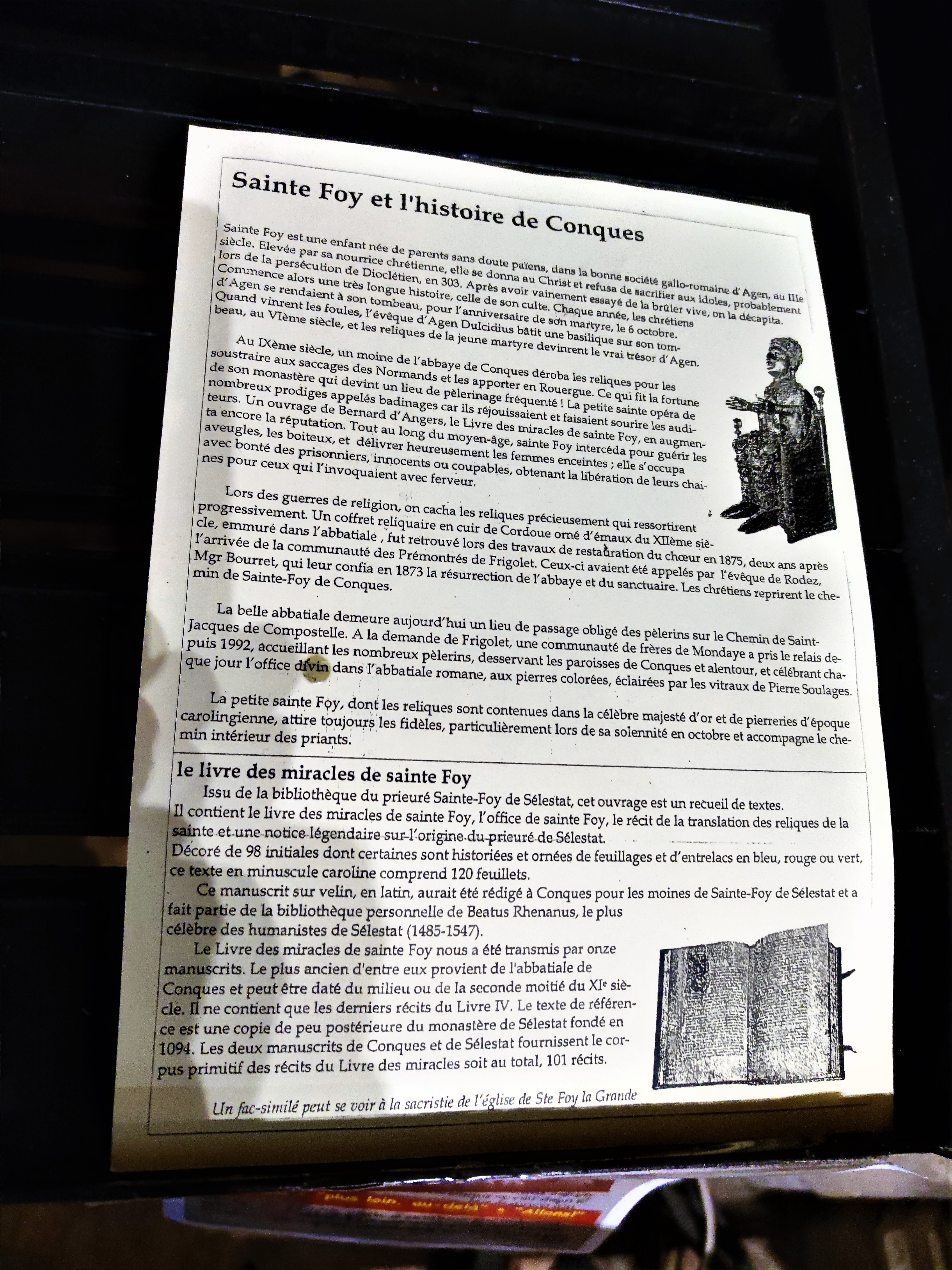Connue pour ses miracles, Sainte Foy était originaire d'Agen où elle fut martyrisée au 4ème siècle. Au 9ème siècle, ses reliques furent mises à l'abri des invasions à l'abbaye de Conques. Ce monastère fonda une paroisse sur les rives de la Dordogne, très fréquentées par les pèlerins de Saint Jacques. L'église Notre-Dame fut saccagée et détruite durant les guerres de religion. Elle ne fut reconstruite qu'au 19ème siècle et totalement terminée qu'en 2018. Aujourd'hui, la paroisse est toujours active sur les chemins de Saint Jacques de Compostelle. Un lieu incontournable pour tous les chrétiens en pèlerinage.