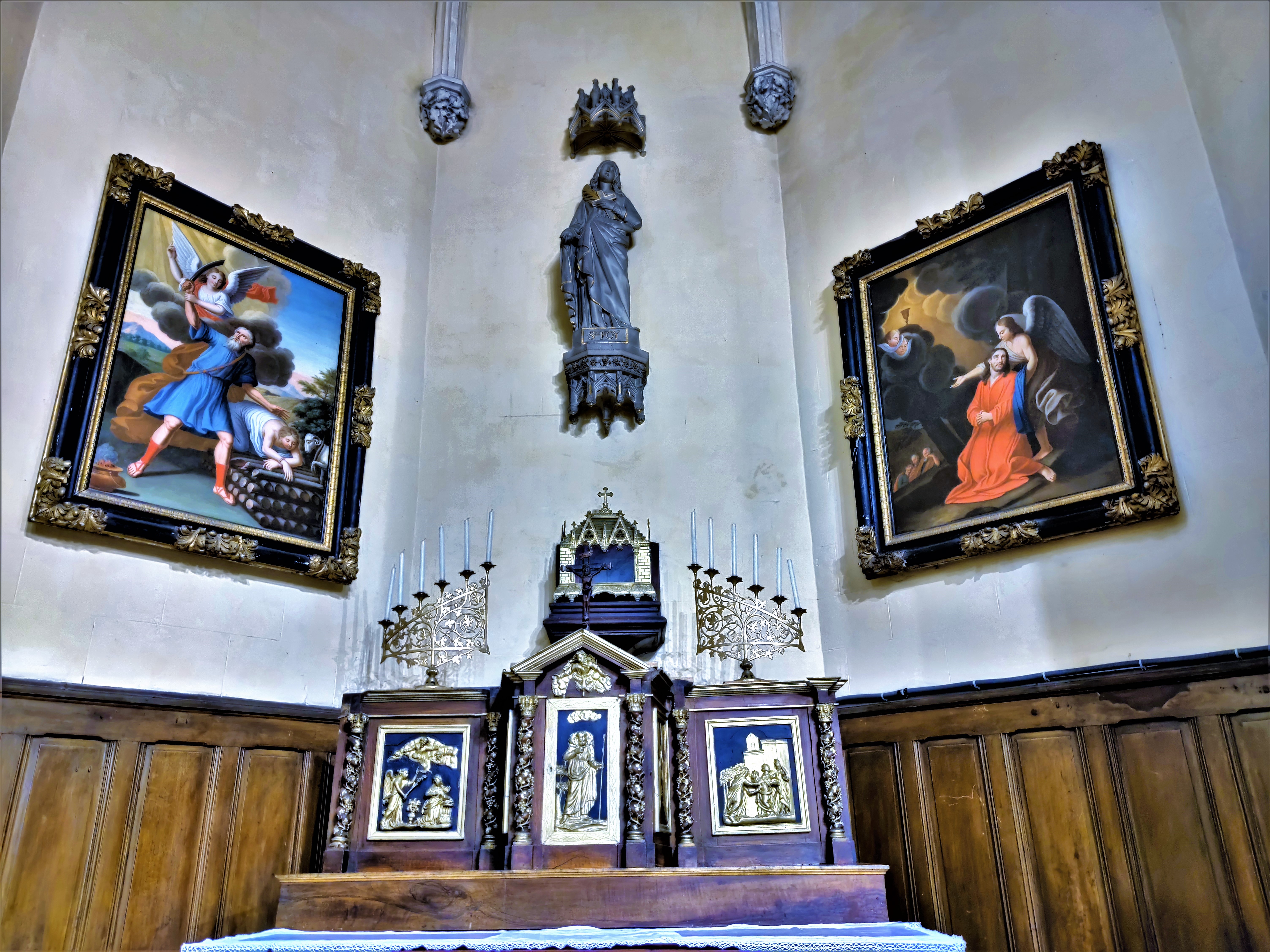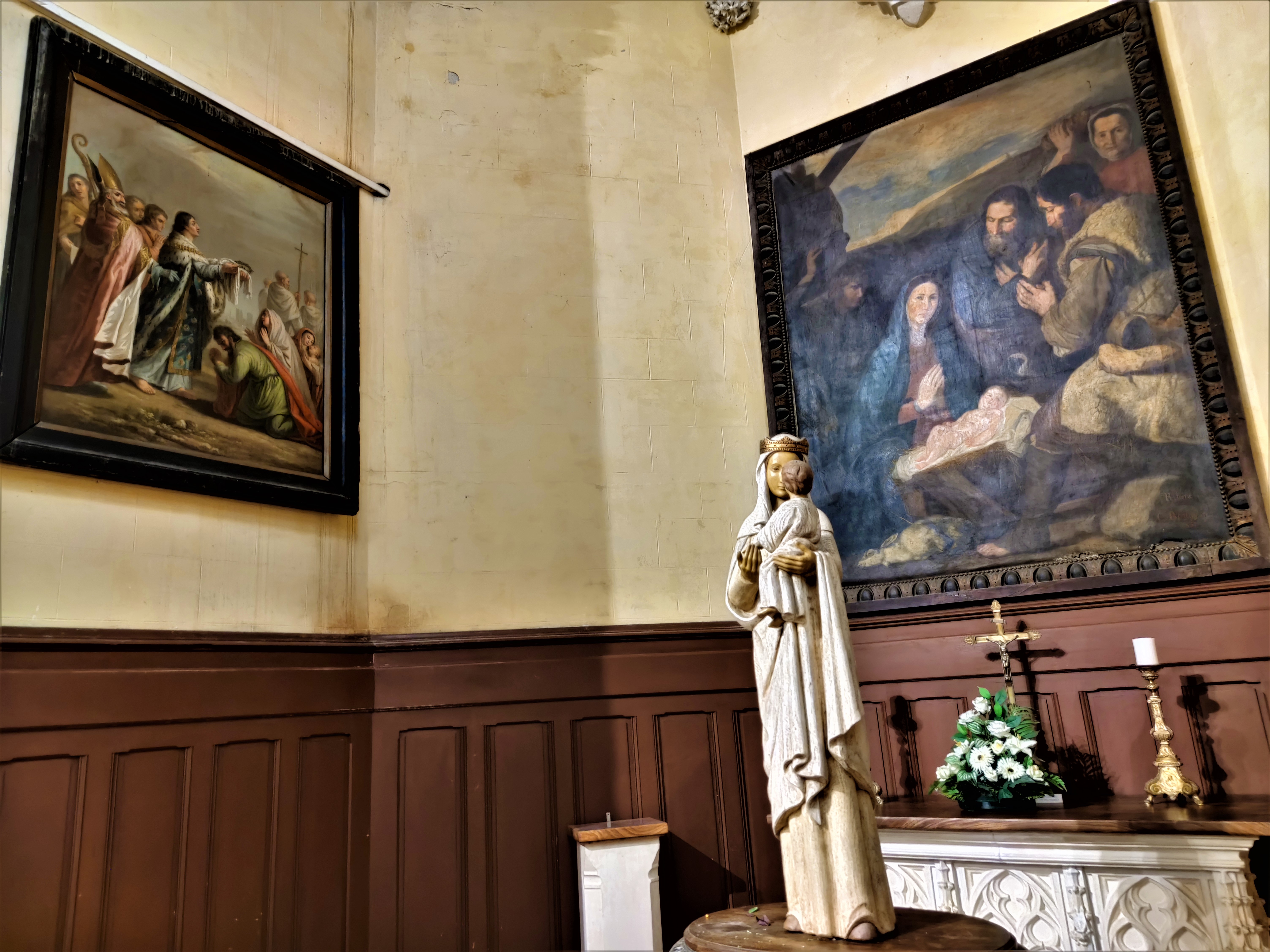 L eglise est en rénovation ..mais j ai beaucoup aimé les explications écrites sur le sens des vitraux. Merci à eux.