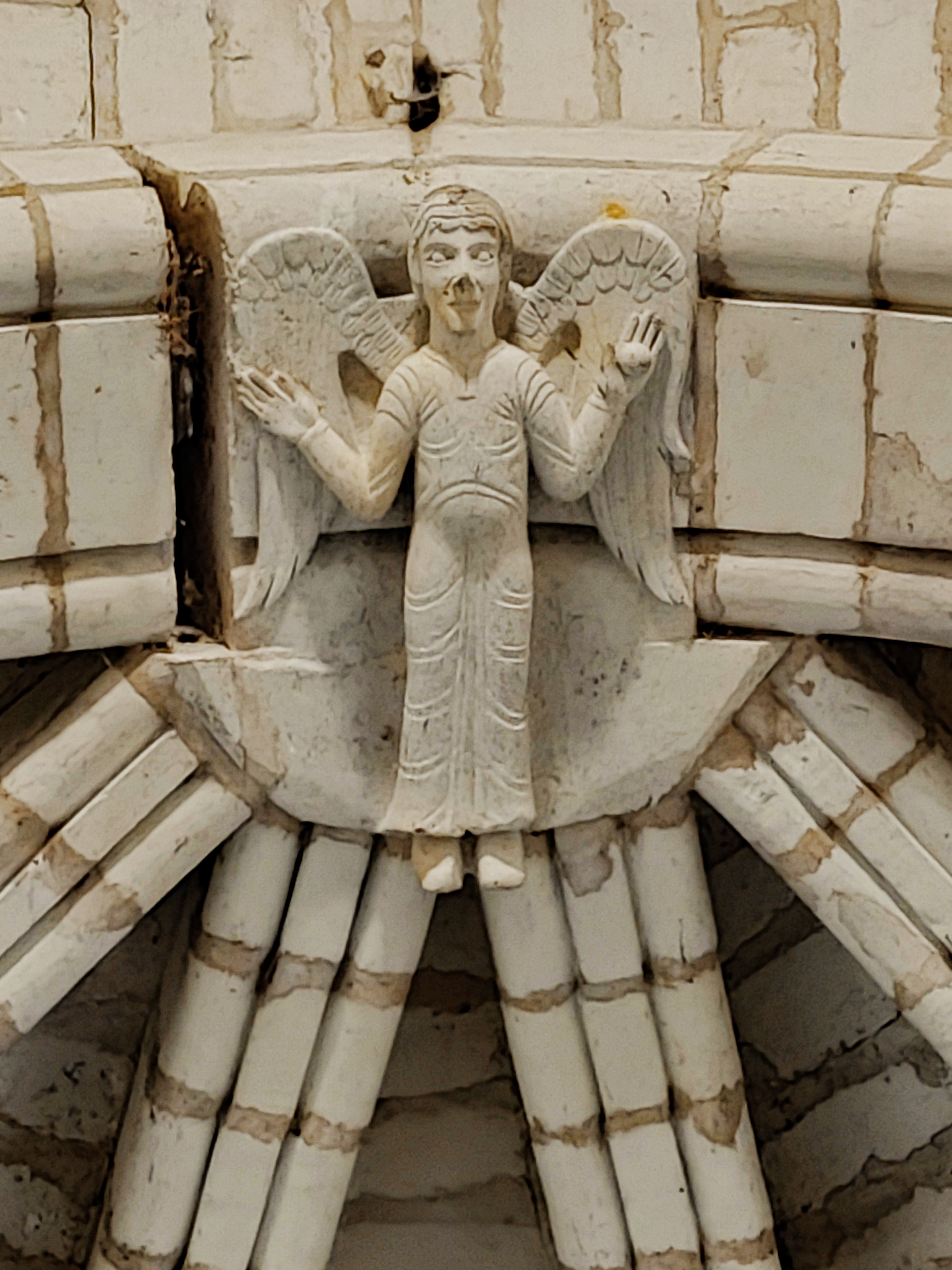Une église du 12è, protégée depuis 2001 par les MH, modifiée au cours des siècles, son architecture en témoigne. A l'Ouest de cette église parfaitement orientée, le clocher porche a été accolé à la façade romane ; conséquemment, cette dernière et son portail forment le mur Est de la partie basse du clocher voûté en coupole. Leurs découvertes sont une belle surprise pour l'amateur du style roman. La nef est plafonnée, le chœur voûté en croisées d'ogives, le sanctuaire à 5 pans en demi-coupole avec d'importantes nervures. Ces dernières sont fermées par une clé de voûte sculpté, un ange veille. Chapiteaux sculptés, statuaires, mobiliers, vitraux et tableaux enrichissent la visite. Église paroissiale et prieurale de moniales, elle est chaleureuse, superbe pour un village de moins de 400 âmes qui n'a jamais connu plus de 508 habitants. Je me suis adressé à la mairie pour pouvoir y entrer.