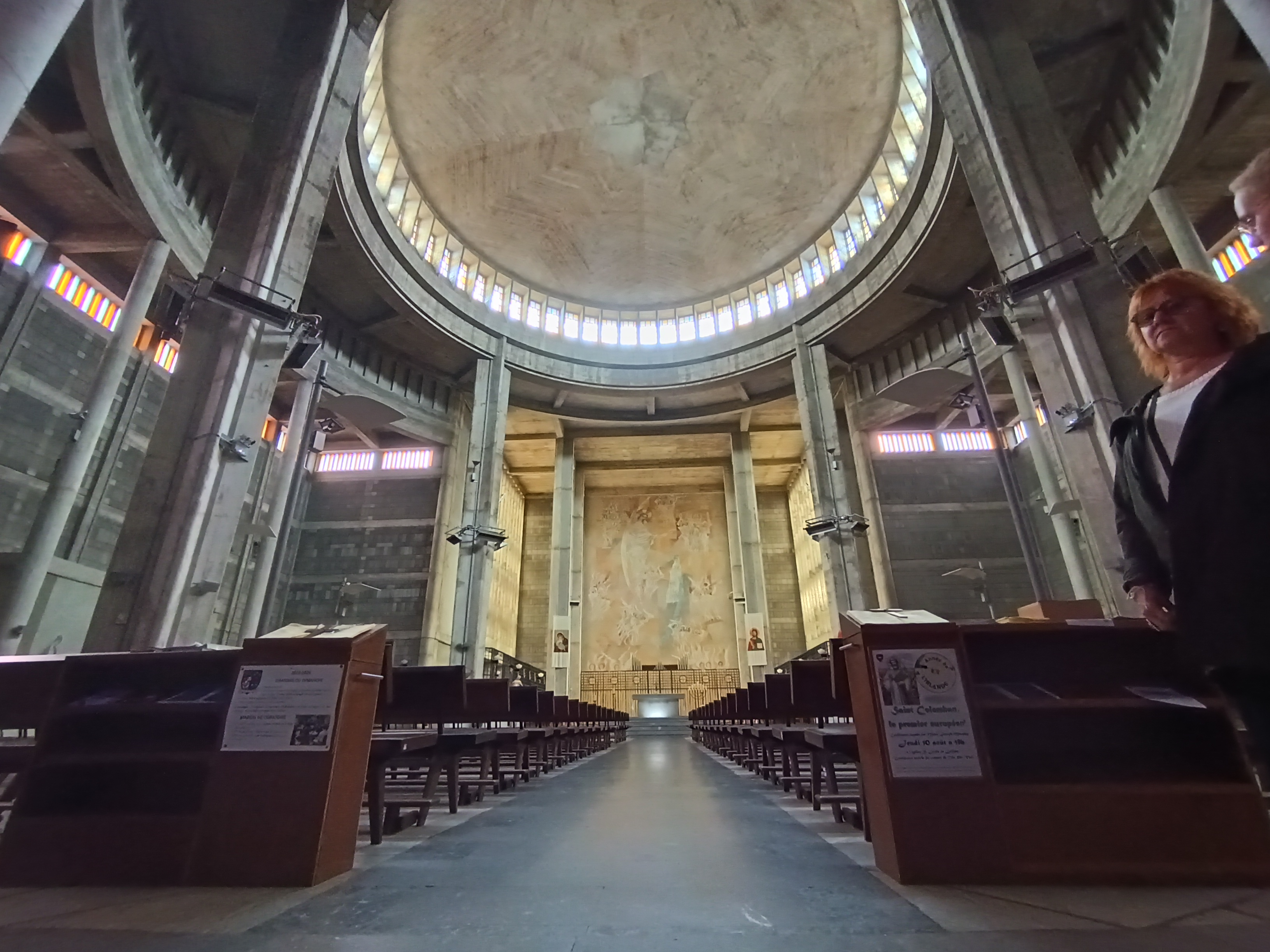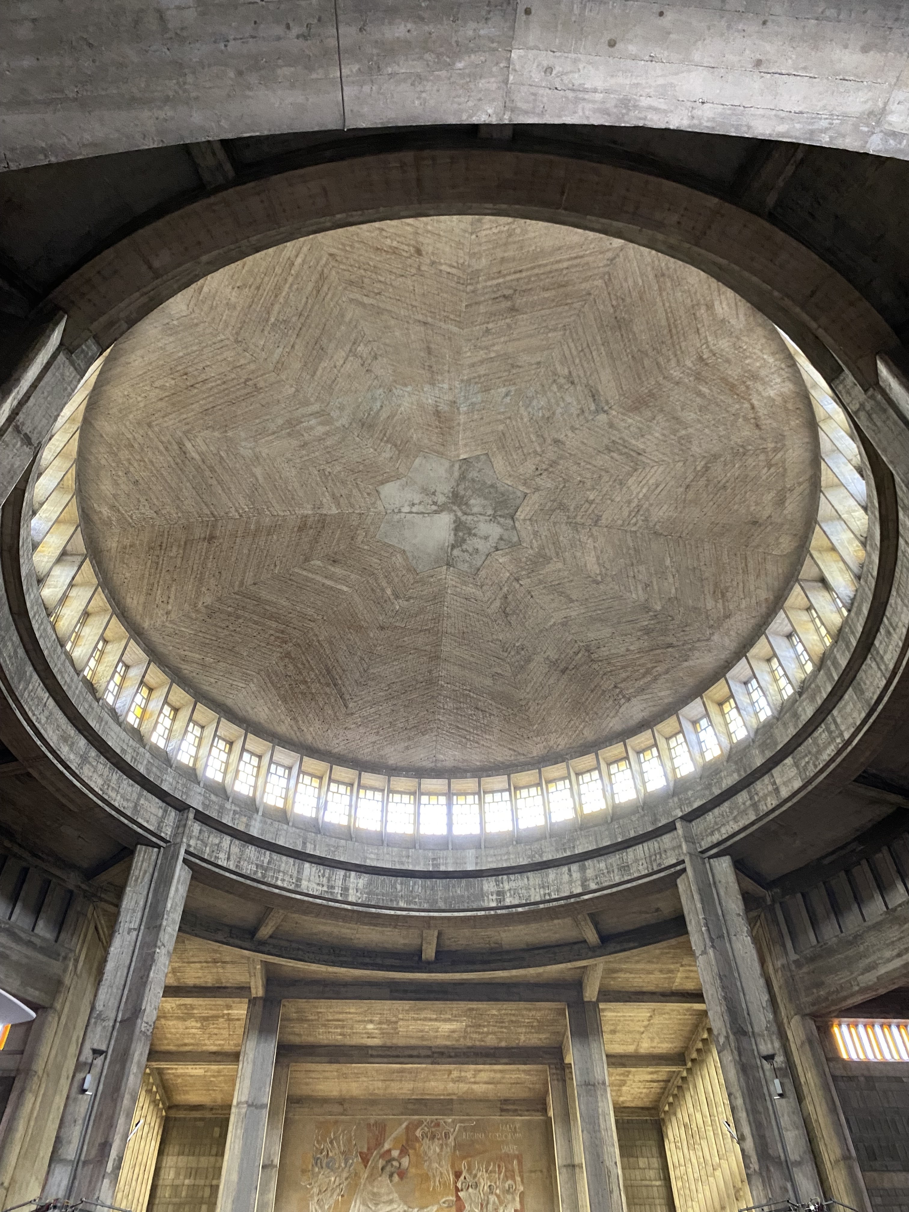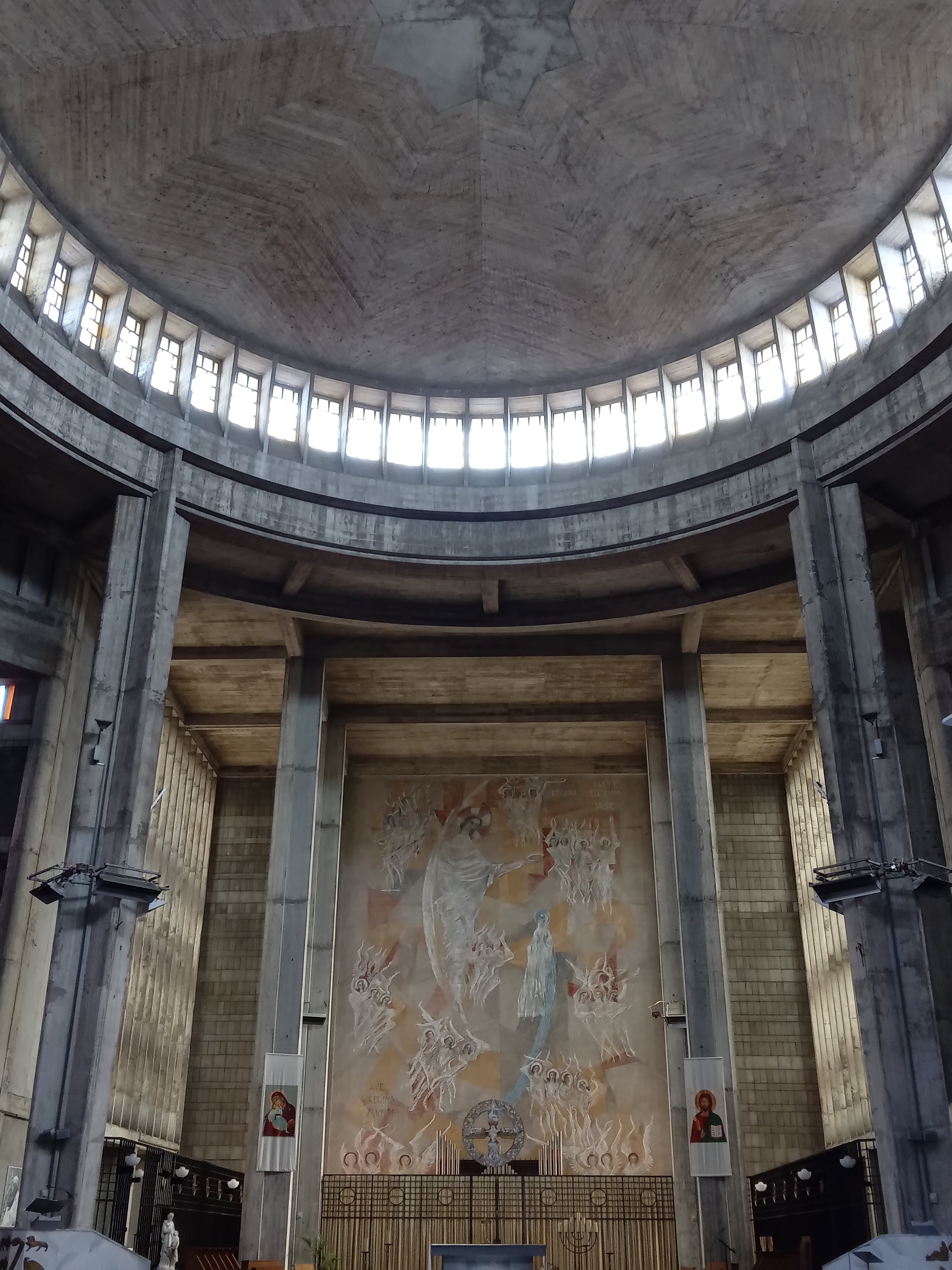 Moyen cette immense bâtisse de béton brut. Triste aussi par les fresques et vitraux. Le dôme est impressionnant...