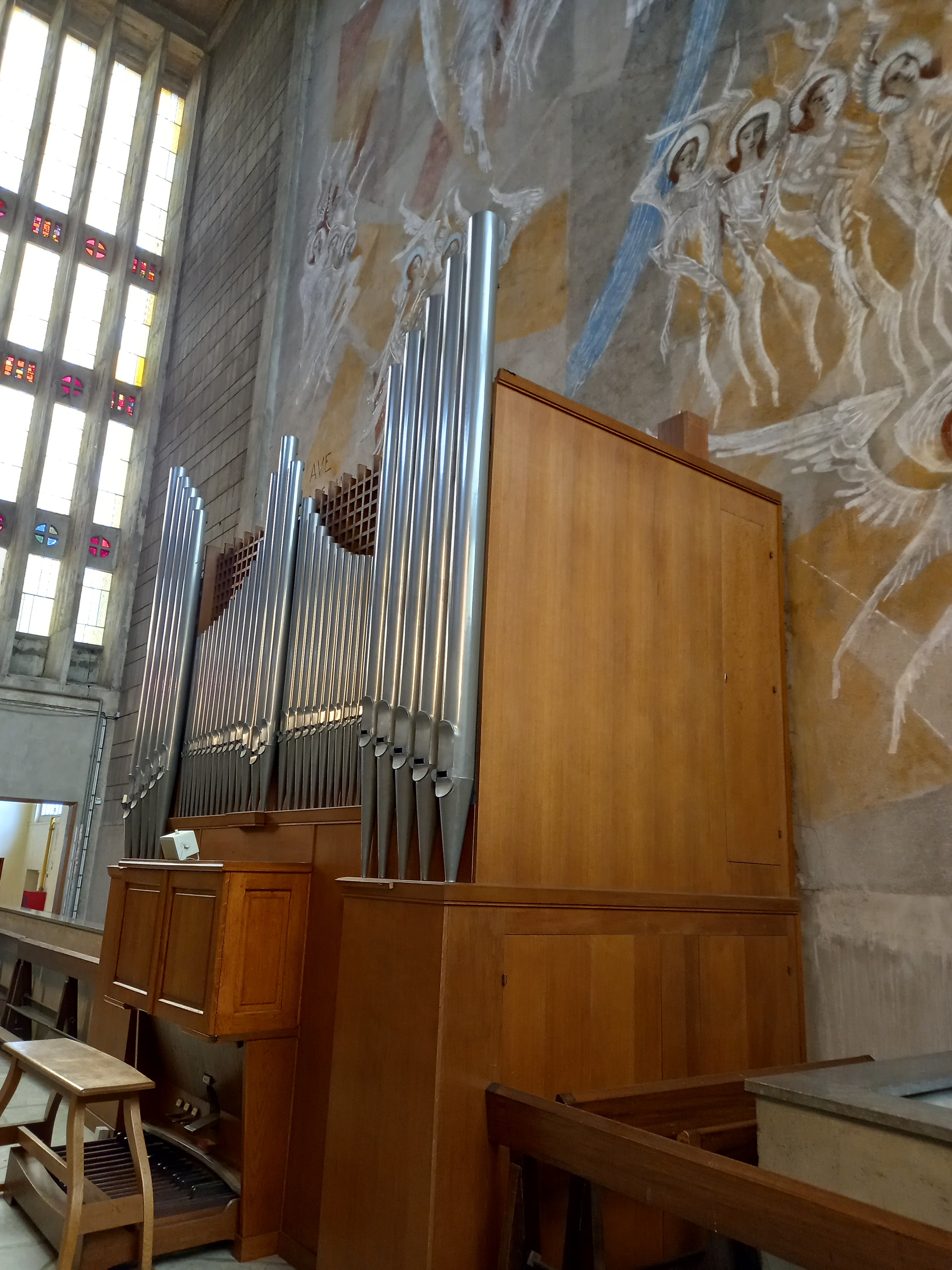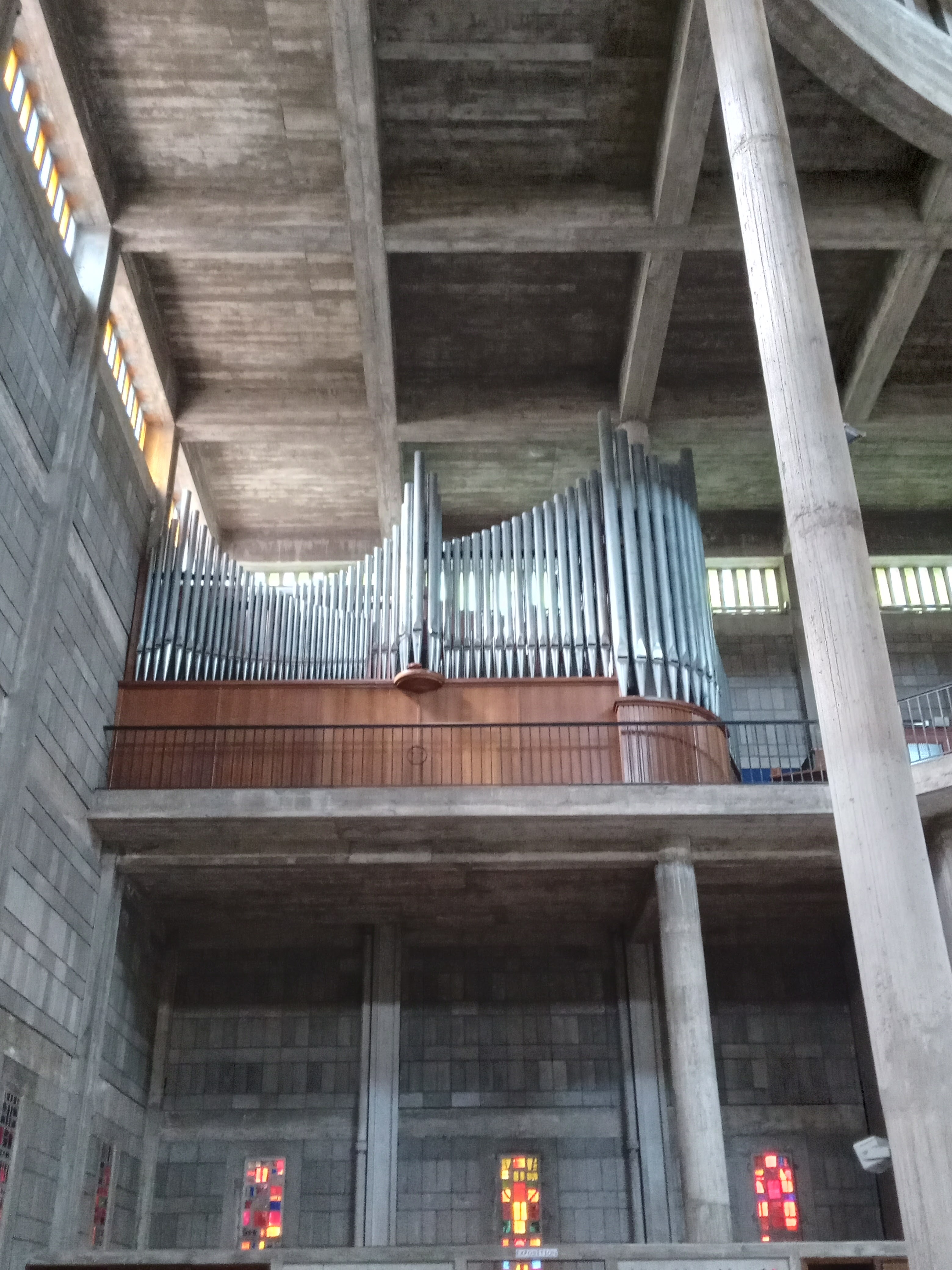 Une des plus belles églises du XXeme siècle : admirable composition des volumes et qualité exceptionnelle du béton. La qualité des fresques et des vitraux participe à cette atmosphère lumineuse