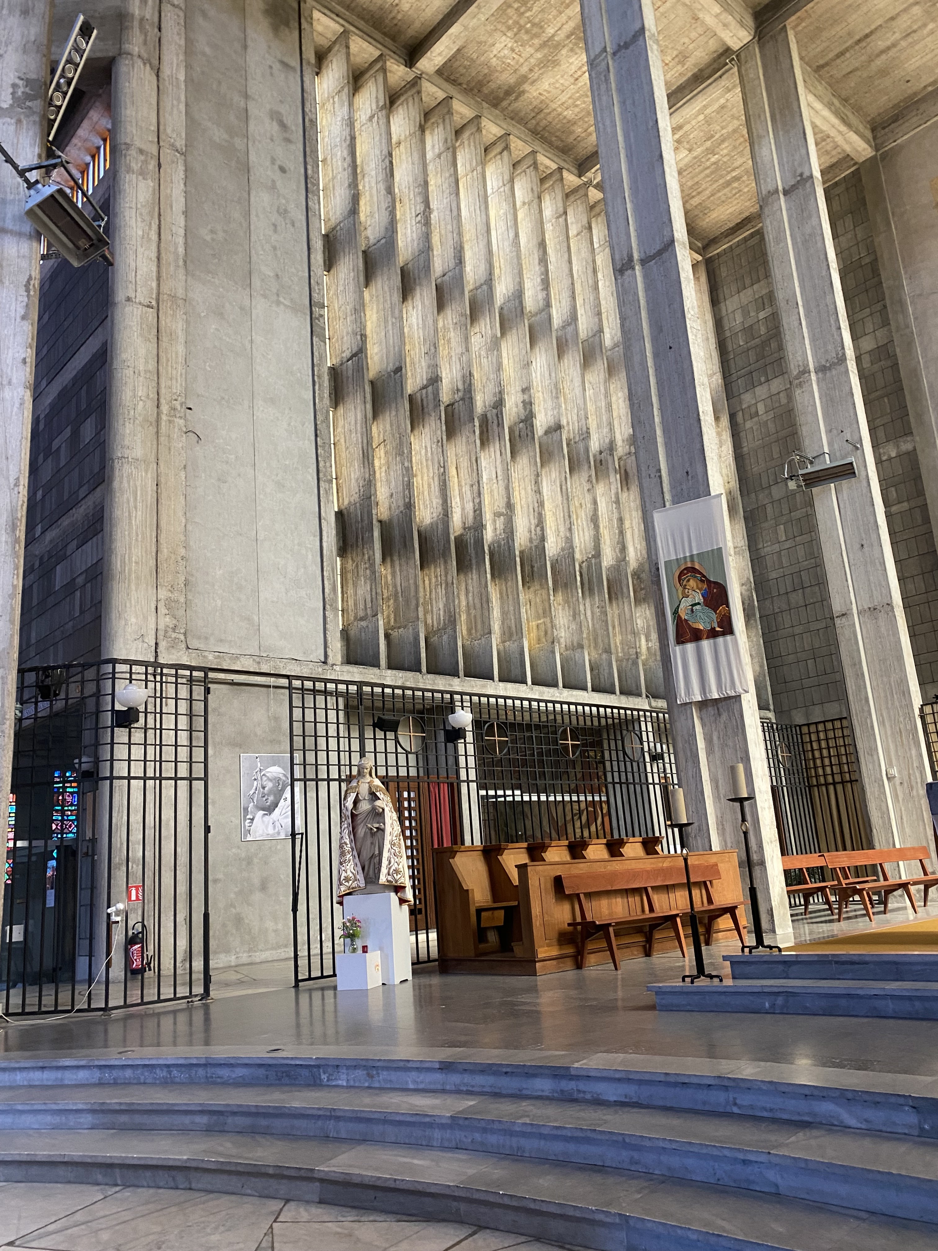 Le reigne du béton mais sans beauté : béton et agglos bruts, ambiance froide. Rien a voir avec les églises de Toscane recouvertes de marbre multicolore.