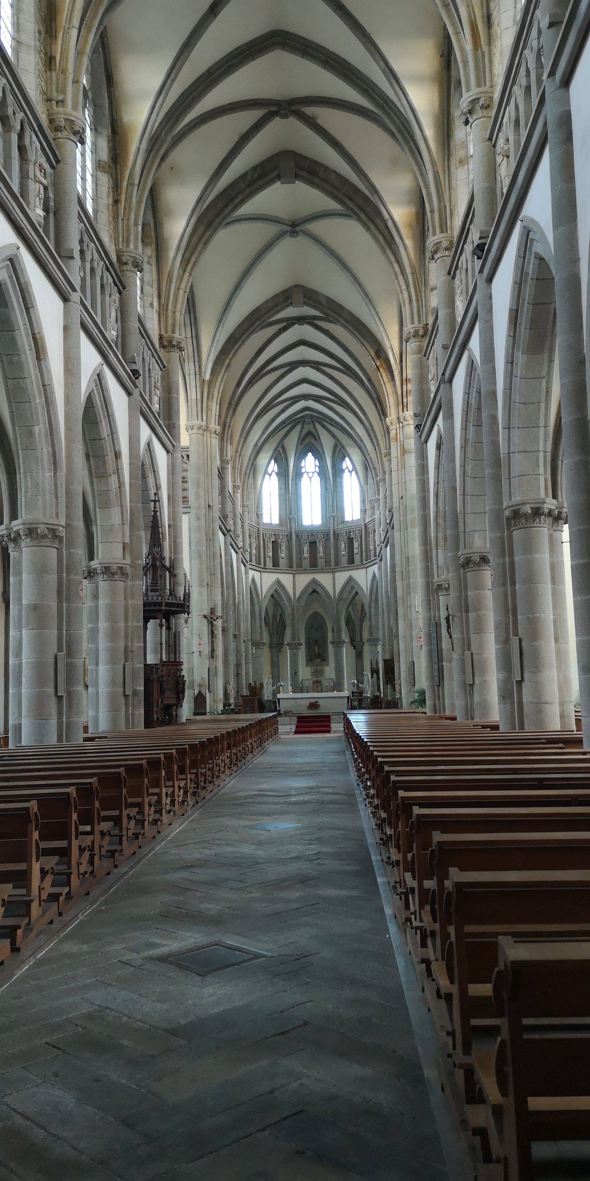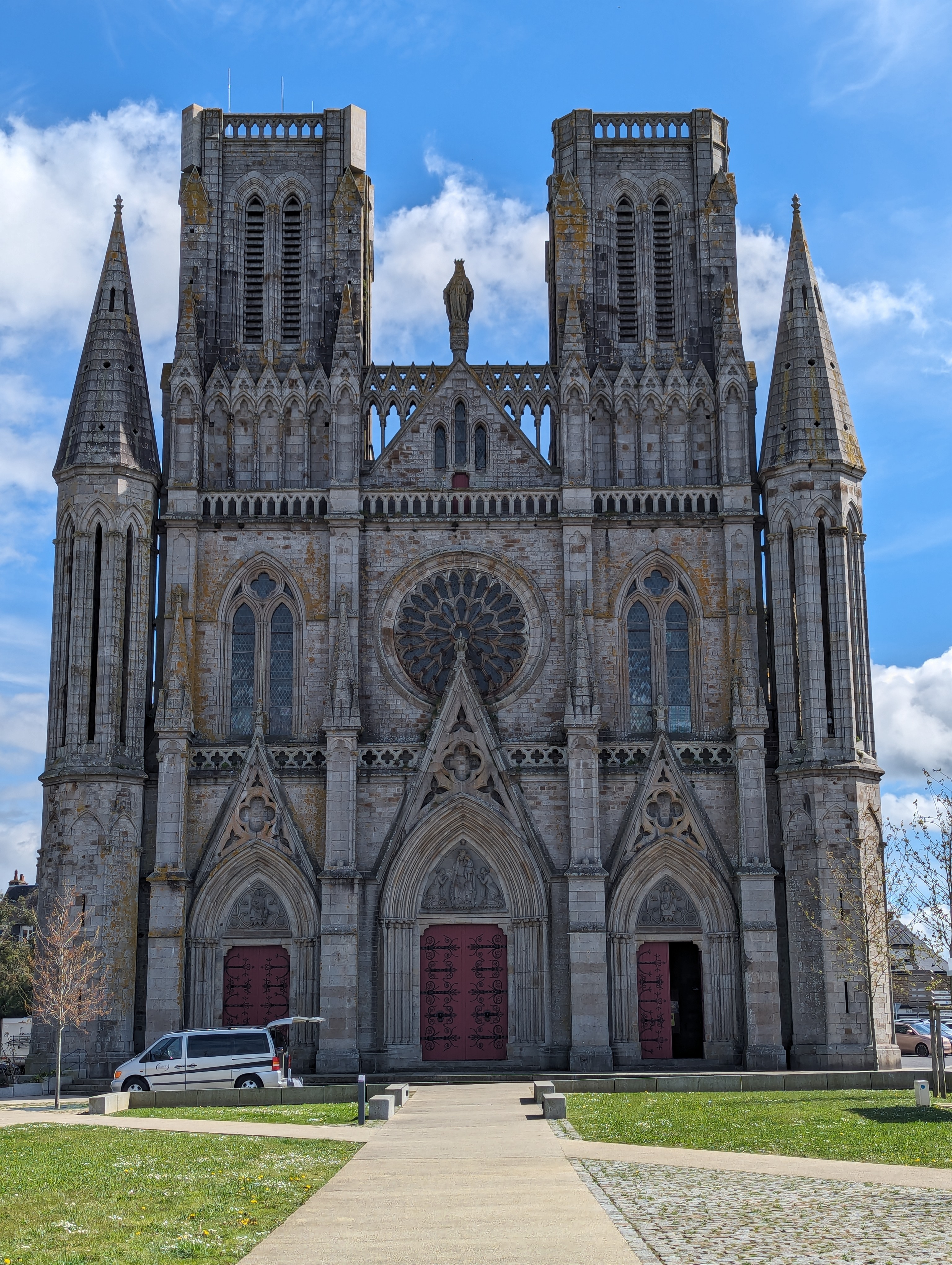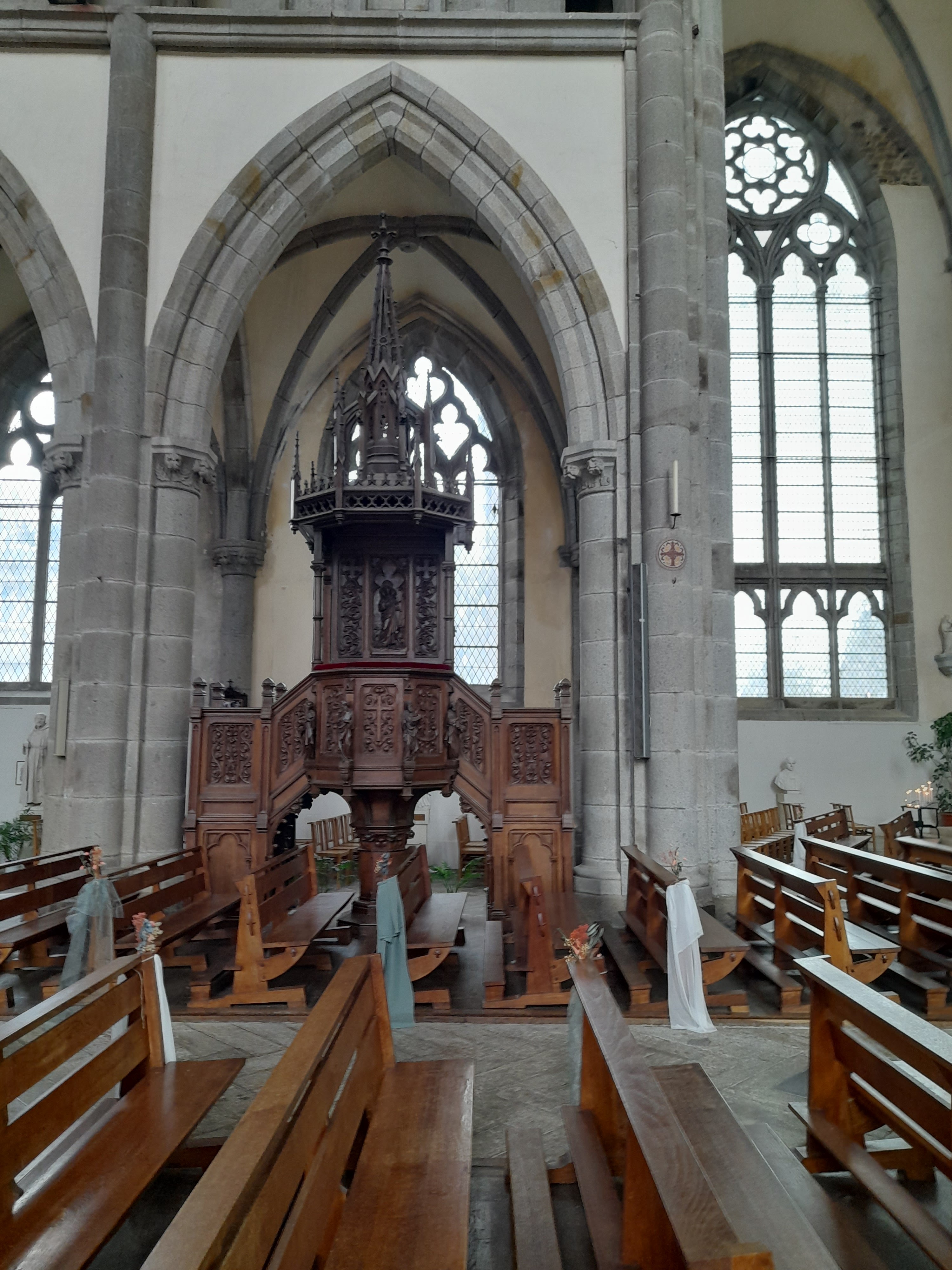 Très belle église imposante qui a un petit air de notre dame de paris. Beaucoup de statues un beau chemin de croix coloré.