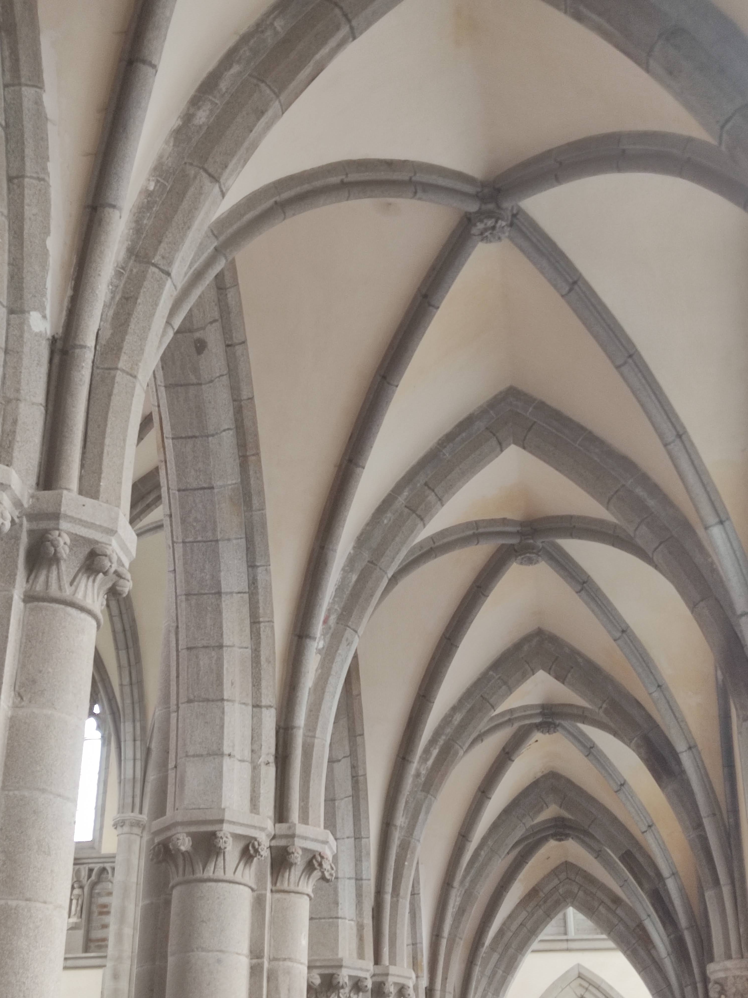 Regard gothique intéressant sur les joints des piliers du plafond.
