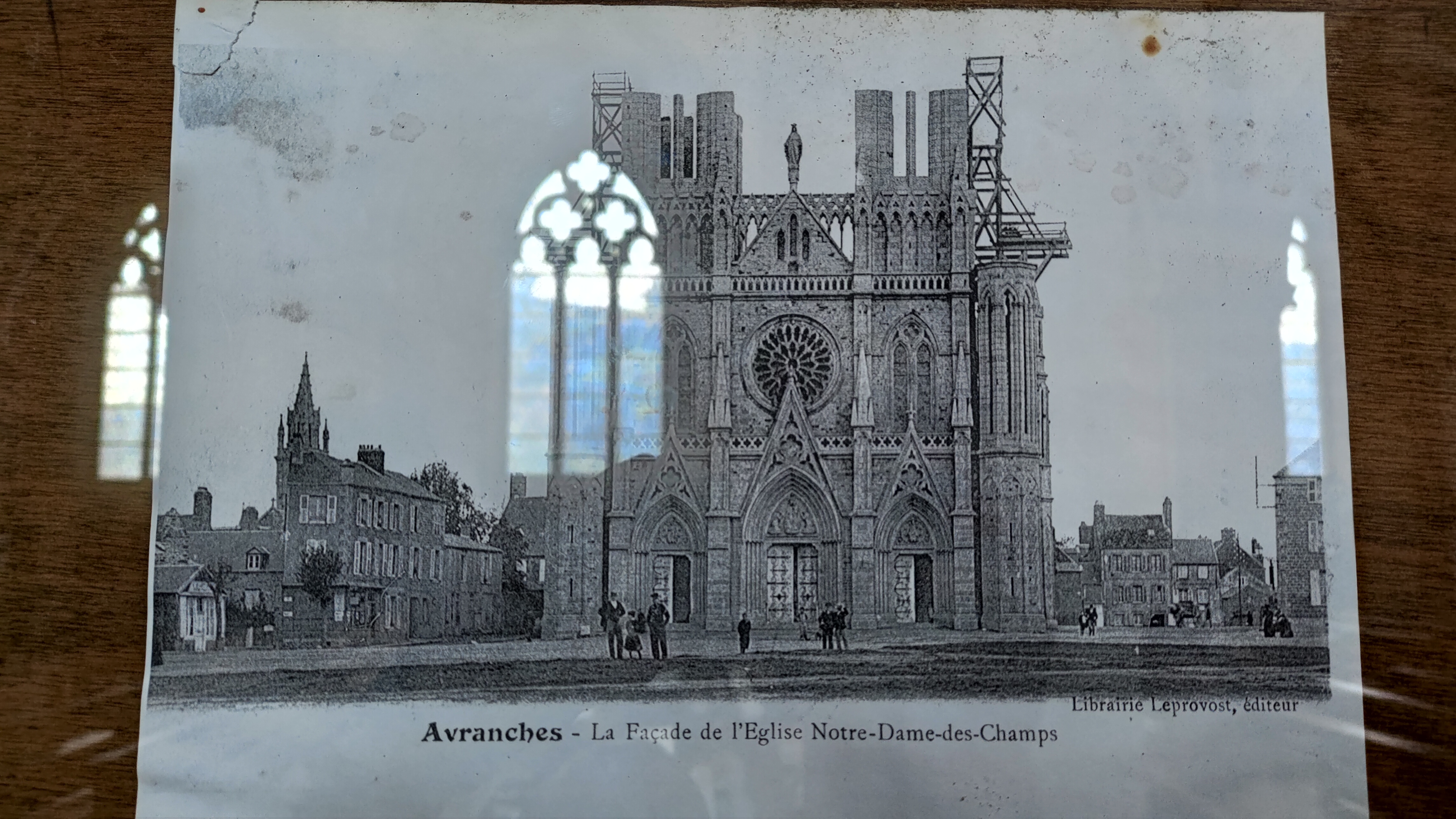 Venue de la côte bretonne, Avranches est la première ville de Basse-Normandie, située sur un plateau qui s'élève au-dessus des vastes marais littoraux côtiers. Outre l'ensemble immobilier initialement dominant du Lycée Notre Dame de la Providence, l'église Notre Dame des Champs, particulièrement lumineuse au soleil de l'après-midi et du soir, dépasse des toits et est grande comme une petite cathédrale (la so -appelée Vieille Cathédrale s'effondra en 1784 et fut progressivement détruite (enlevée sans remplacement). La construction, initialement insuffisamment financée, a été retardée depuis la pose de la première pierre en 1863 jusqu'à l'achèvement des tours en 1937. Gravement endommagée par l'incendie qui suivit les bombardements de 1944, la première foire n'eut lieu à nouveau qu'en 1962. Les gargouilles (gargouilles) sont remarquables.