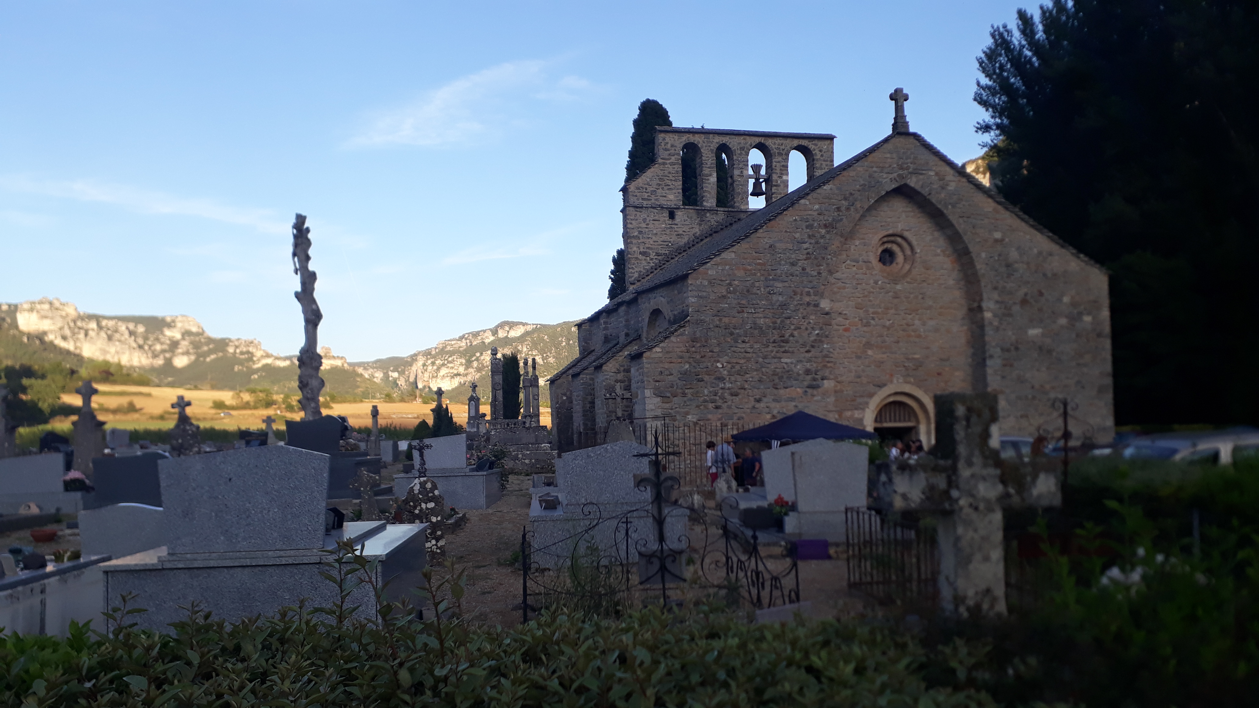 Très belle église romane en bord de Tarn, accueillant des expositions de qualité. En particulier celle consacrée à la naissance du tourisme dans les gorges du Tarn qui était inaugurée jeudi 8 août 2019 (en place jusqu'aux journées du patrimoine) offrant un panorama très complet de cette histoire commencée à la fin du 19e siècle, à l'époque de Martel, et qui se poursuit aujourd'hui, avec de nombreux documents d'époque.