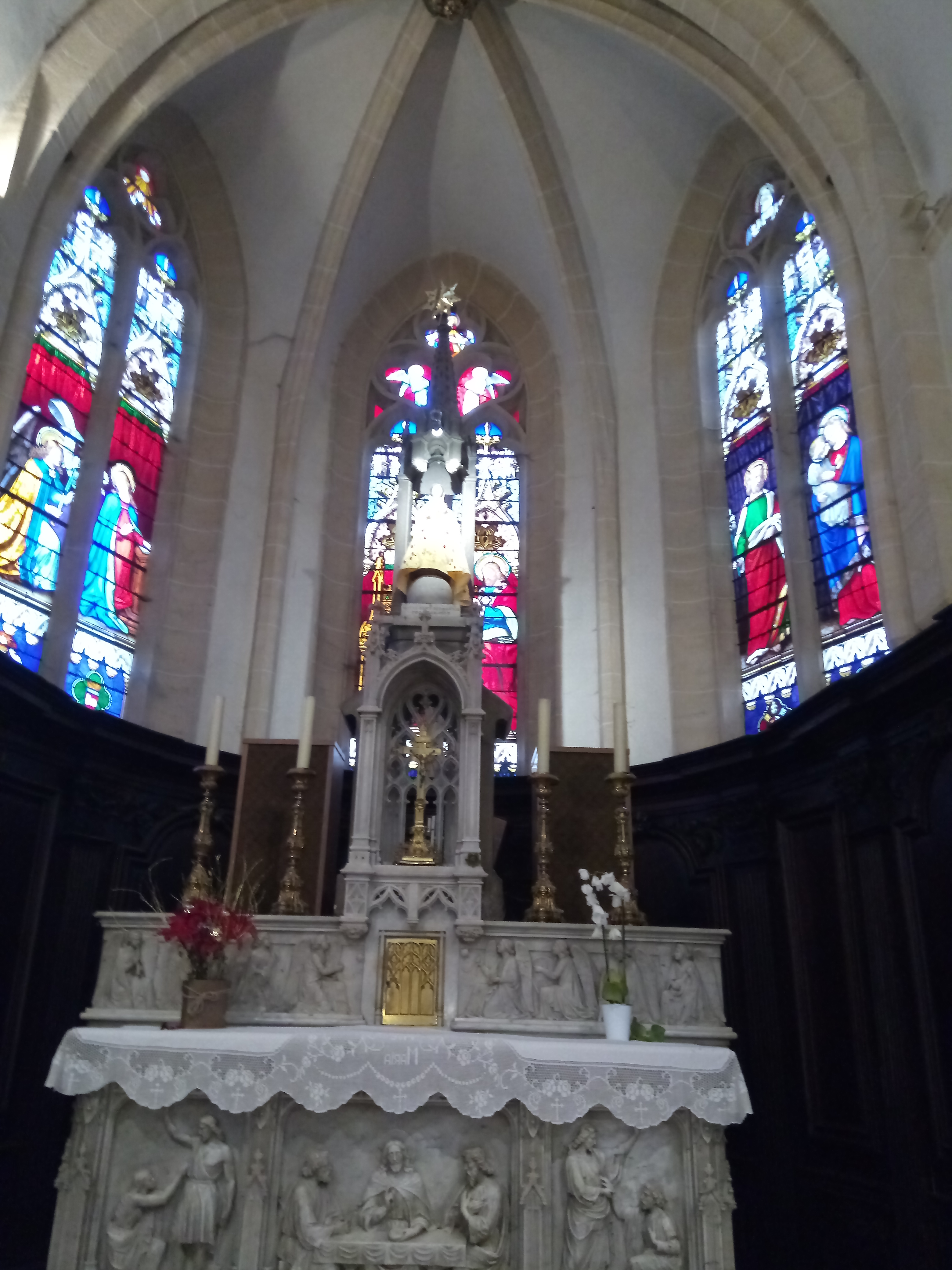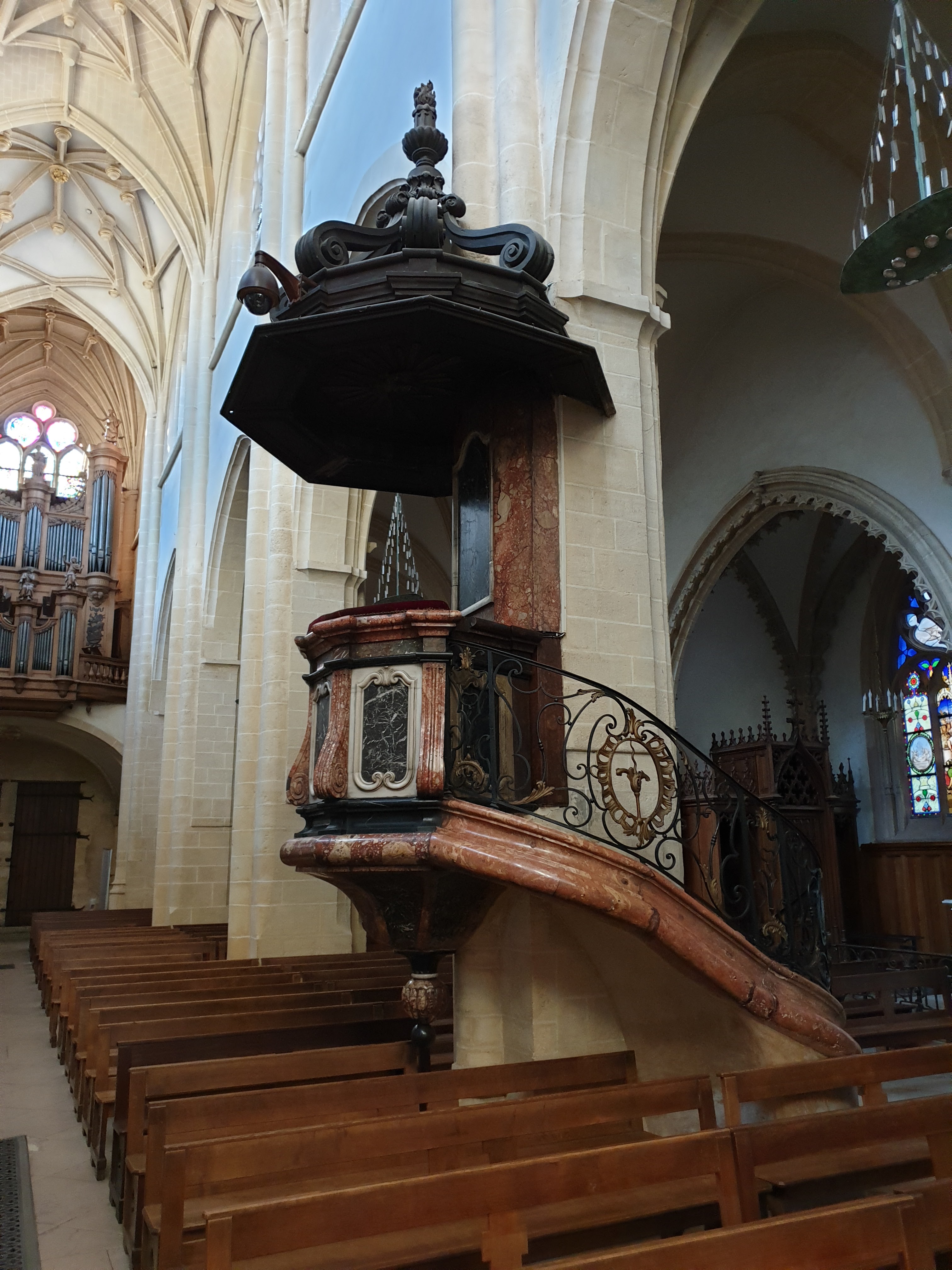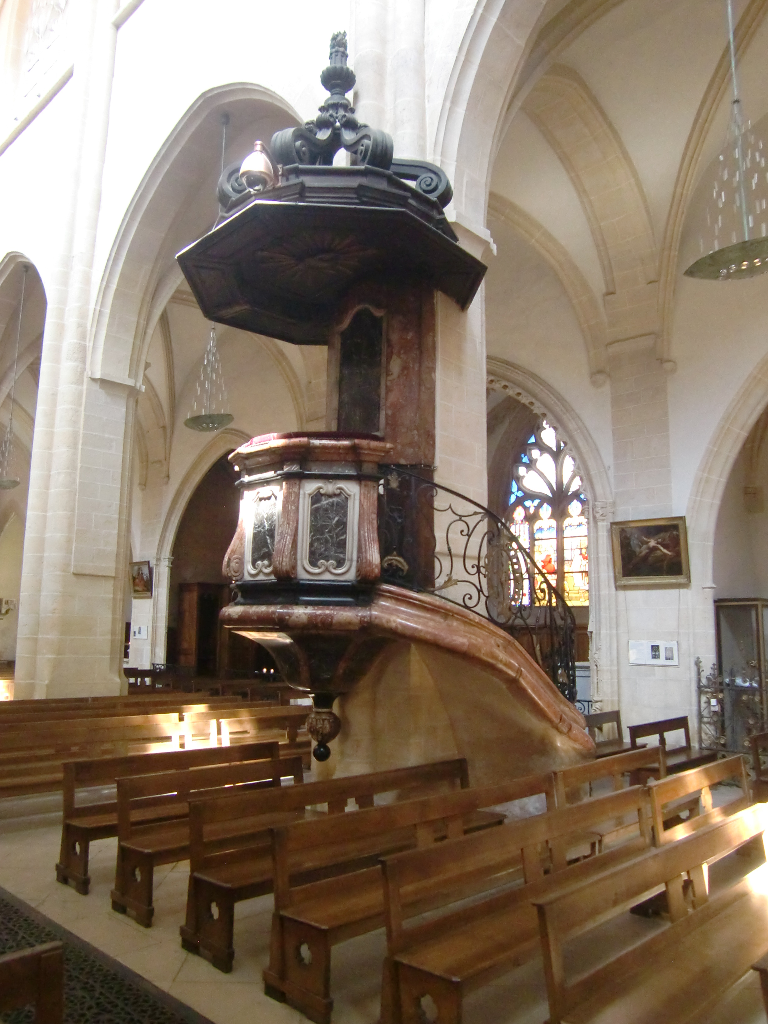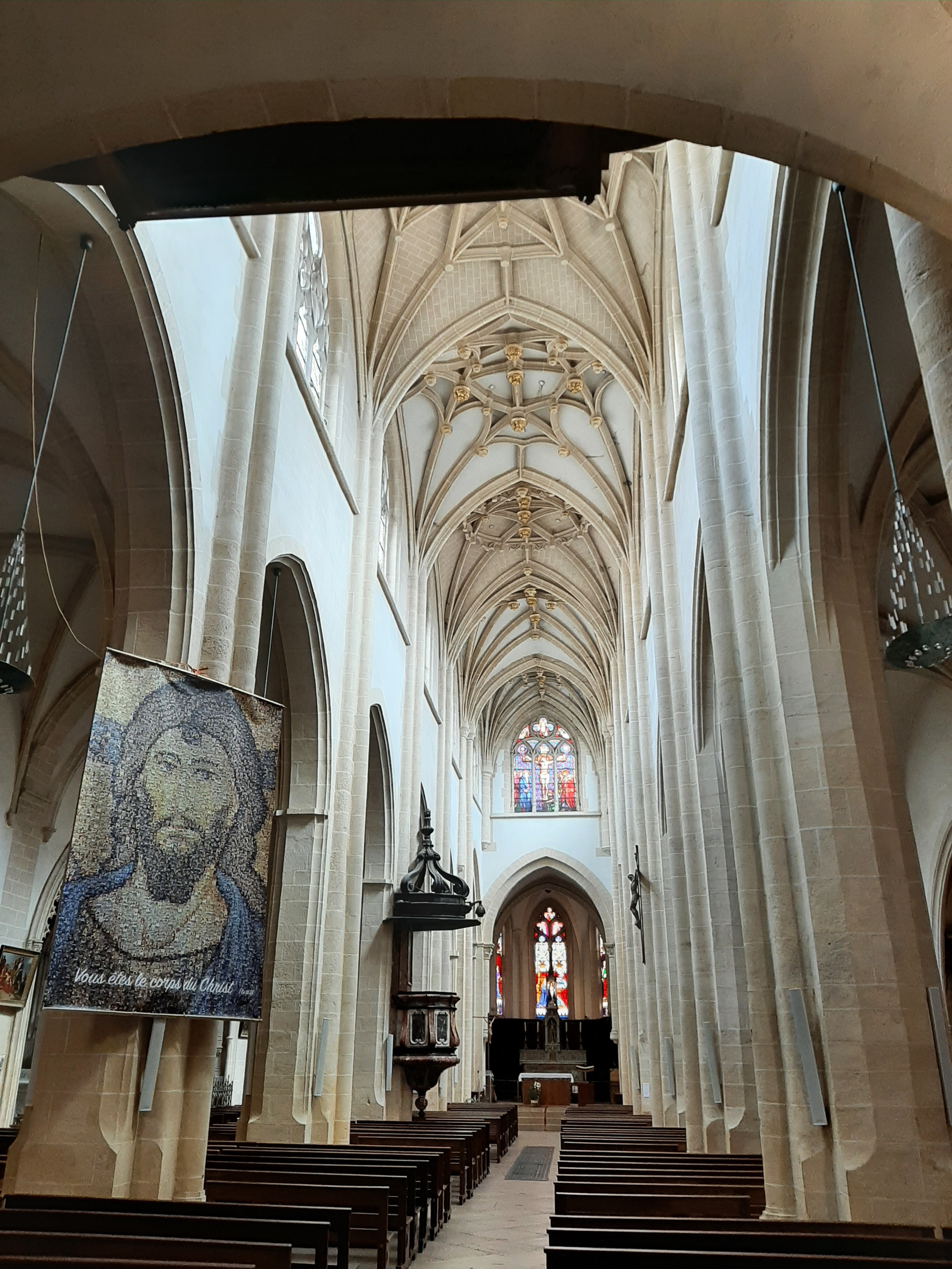 Si l'église n'avait pas de flèche abrupte (La Flèche), elle ne serait pas visible aux alentours. Basilique gothique, ancienne collégiale, les vitraux valent également le détour. Particularité : au dos positif de l'orgue, Jésus est représenté de manière figurative en train de se disputer avec deux scribes.