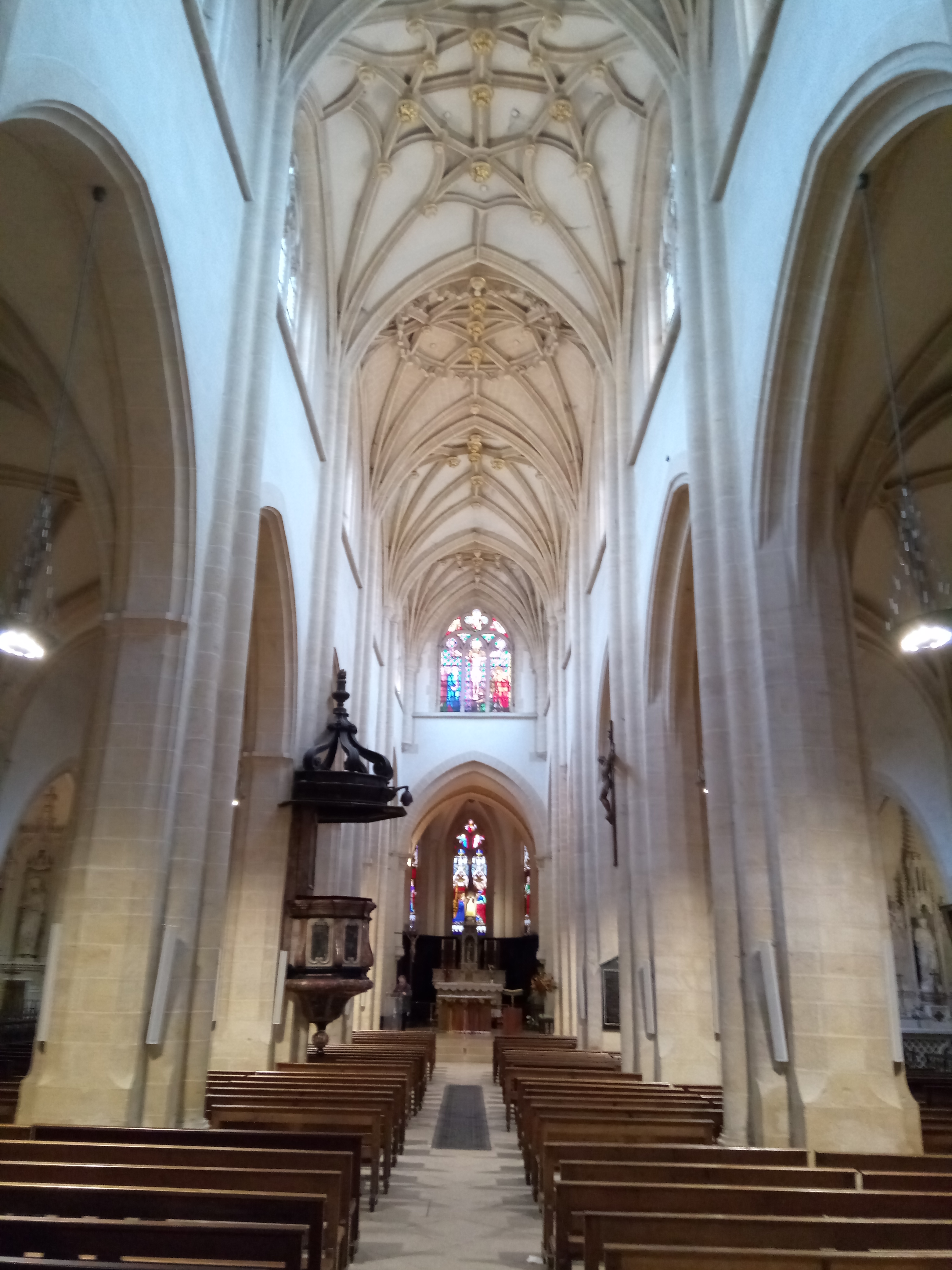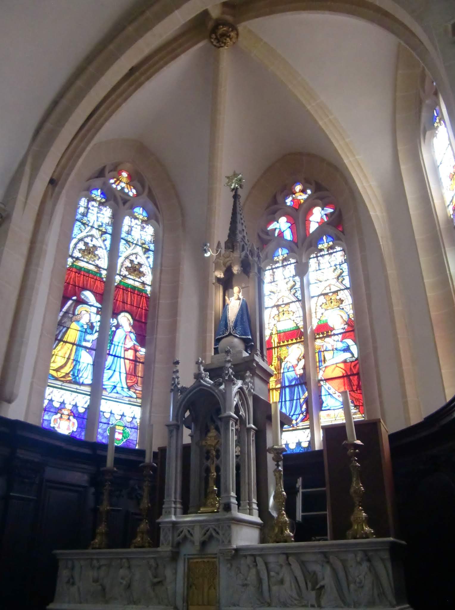 Très belle église avec de beaux vitraux et un orgue qui remplie de musique ce lieu