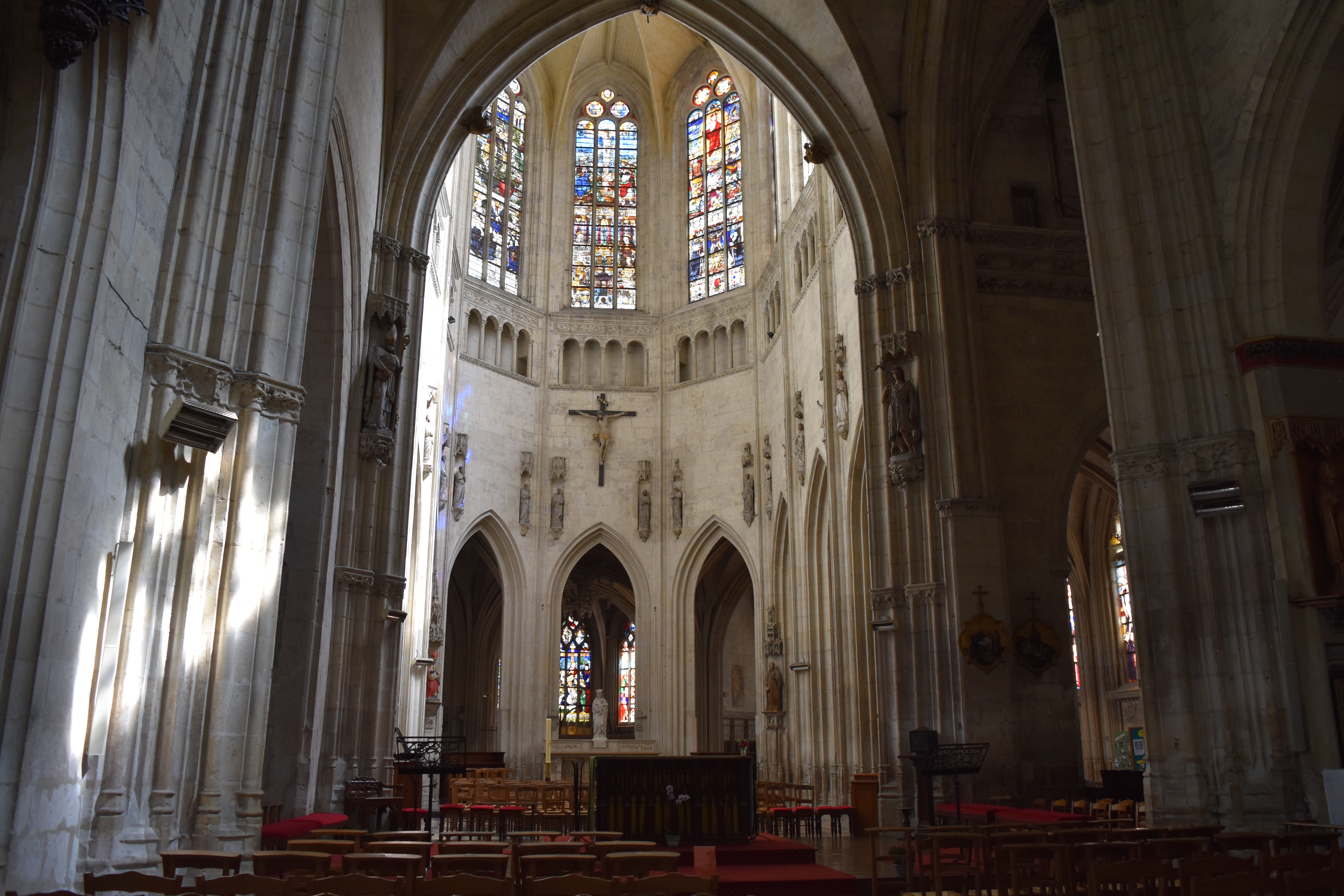 Malgré des travaux conséquents, engagés en 2018 dans le cadre d'un chantier global d'une durée de 5 ans, l'accès au sanctuaire est aisé. Jouxtant la chapelle du Saint Sacrement, une chapelle est affectée à l'usage de bibliothèque. Une initiative rare qui mérite d'être saluée. Pourtant l'église était étrangement déserte en ce lundi en fin d'AM.