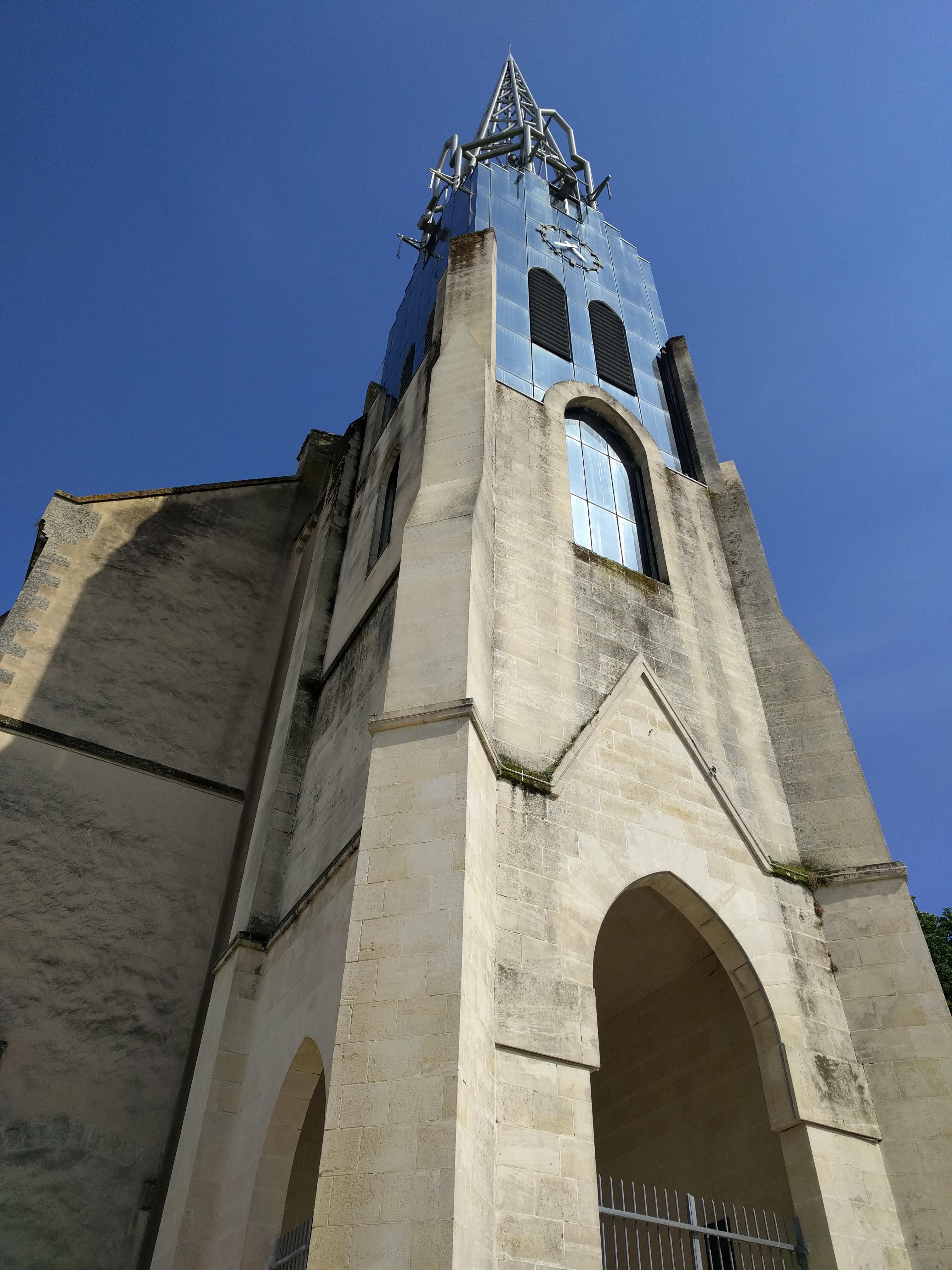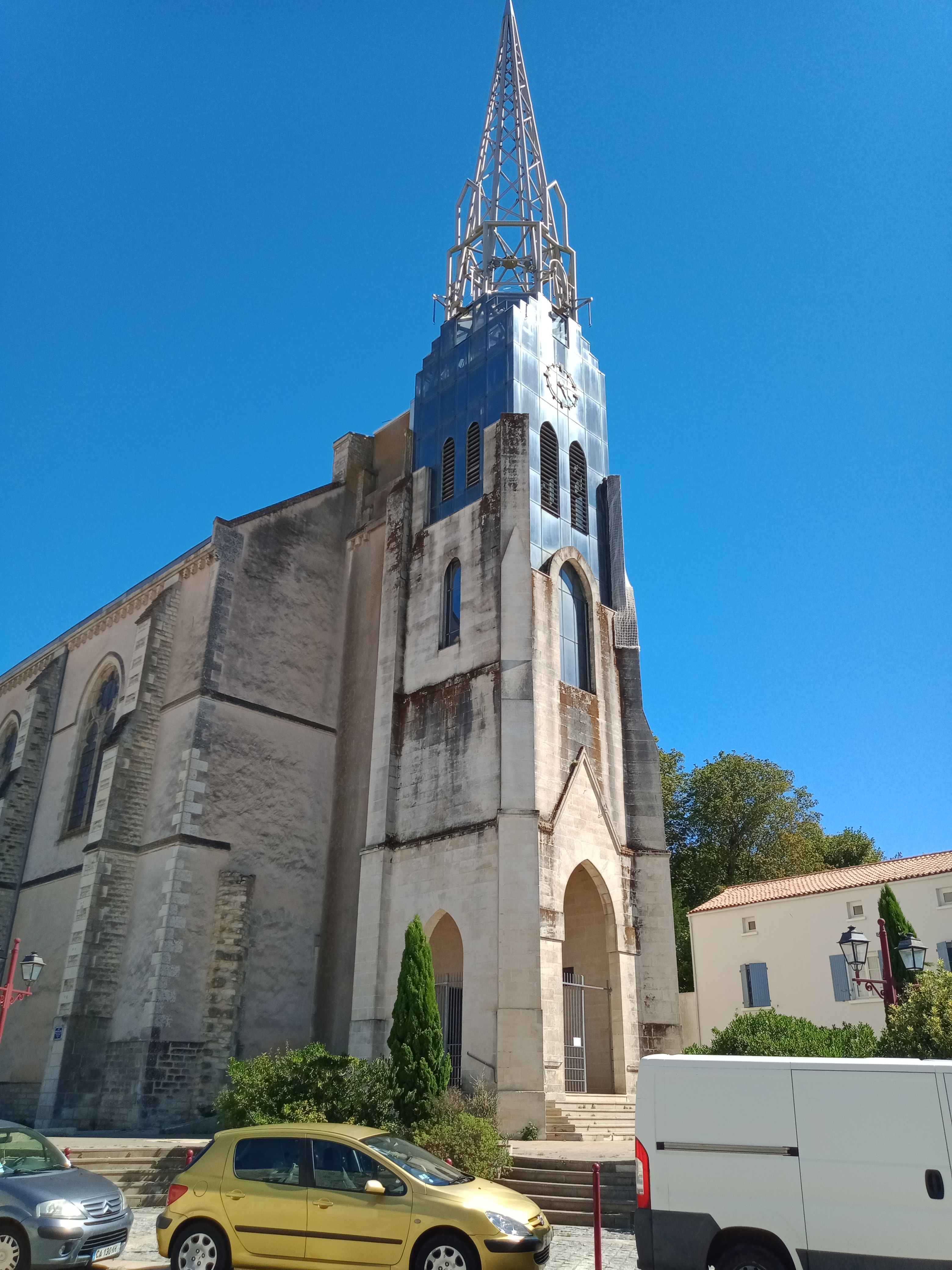 Magnifique église et son clocher si atypique, fait de pierre, de verre et de bois, c'est tellement rare et beau, le clocher a été fait vers 1988, du à une donation d'un certain Mr Barthélémy Fabbro, qui déplorait de n'avoir pas pu être baptisé dans l'église avec un clocher, fabuleuse petite histoire, l'intérieur est splendide, on sent le côté historique et moderne, elle n'a en gros que 120 ans et extérieurement aussi elle paraît plus, le projet dâte de 1845, mais il est extrêmement coûteux, il aura fallu un legs vers 1864/68 pour que le projet puisse enfin se concrétiser, il faudra quand même abattre la Chapelle du couvent des Capucins, l'architecte retenue est Alcide Boutaut, qui fit précédemment l'église Notre dame de la Roche S/Yon et St Etienne de Niort, qui prit un style néo-gotique, mais le projet pris du retard suite à des pourparlers et des personnes qui fut contre se projet, et surtout un manque d'argent pour finir le clocher, c'est pour sa qu'il fut conçu que 88 ans plus tard... Bonne visite...