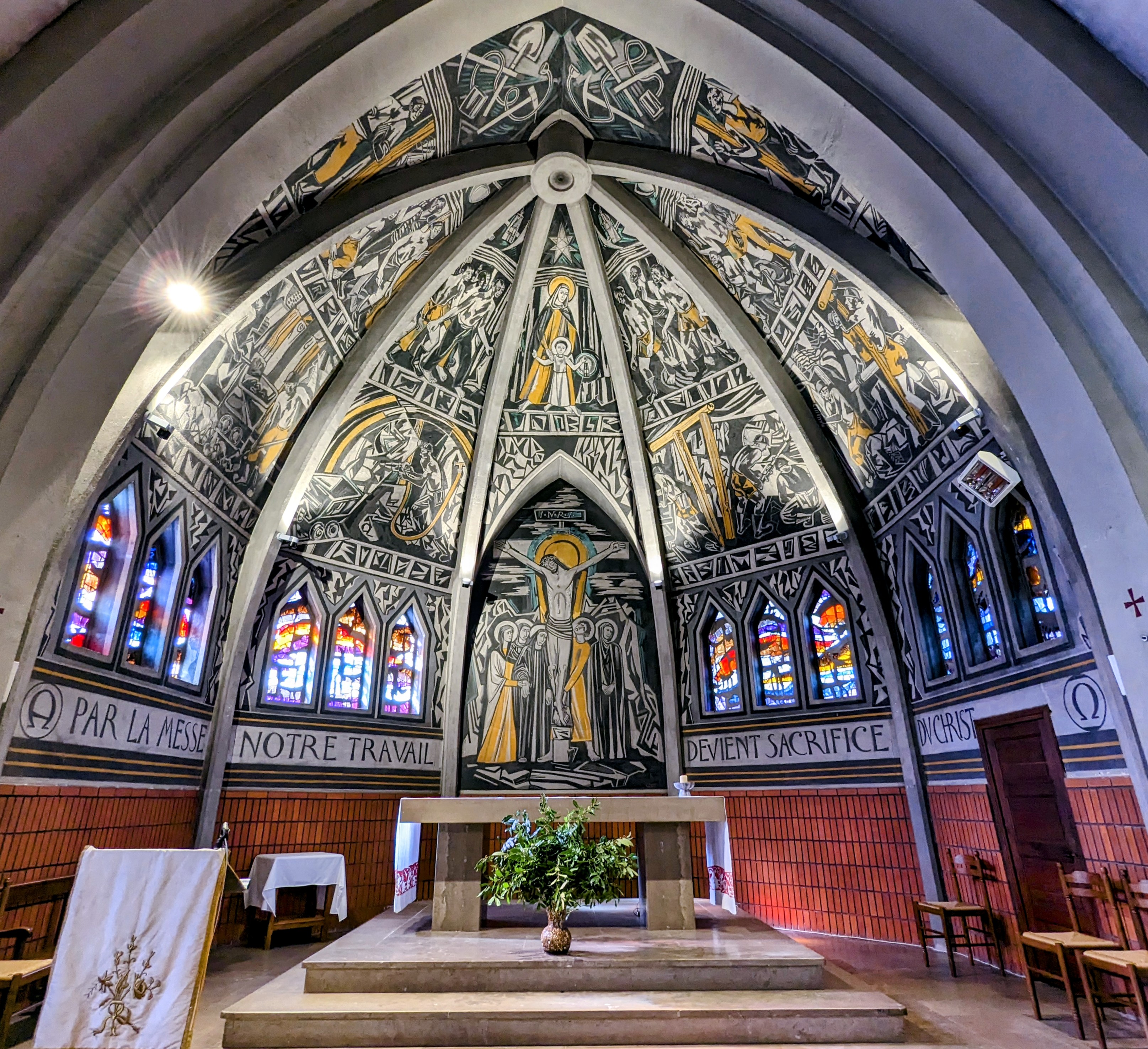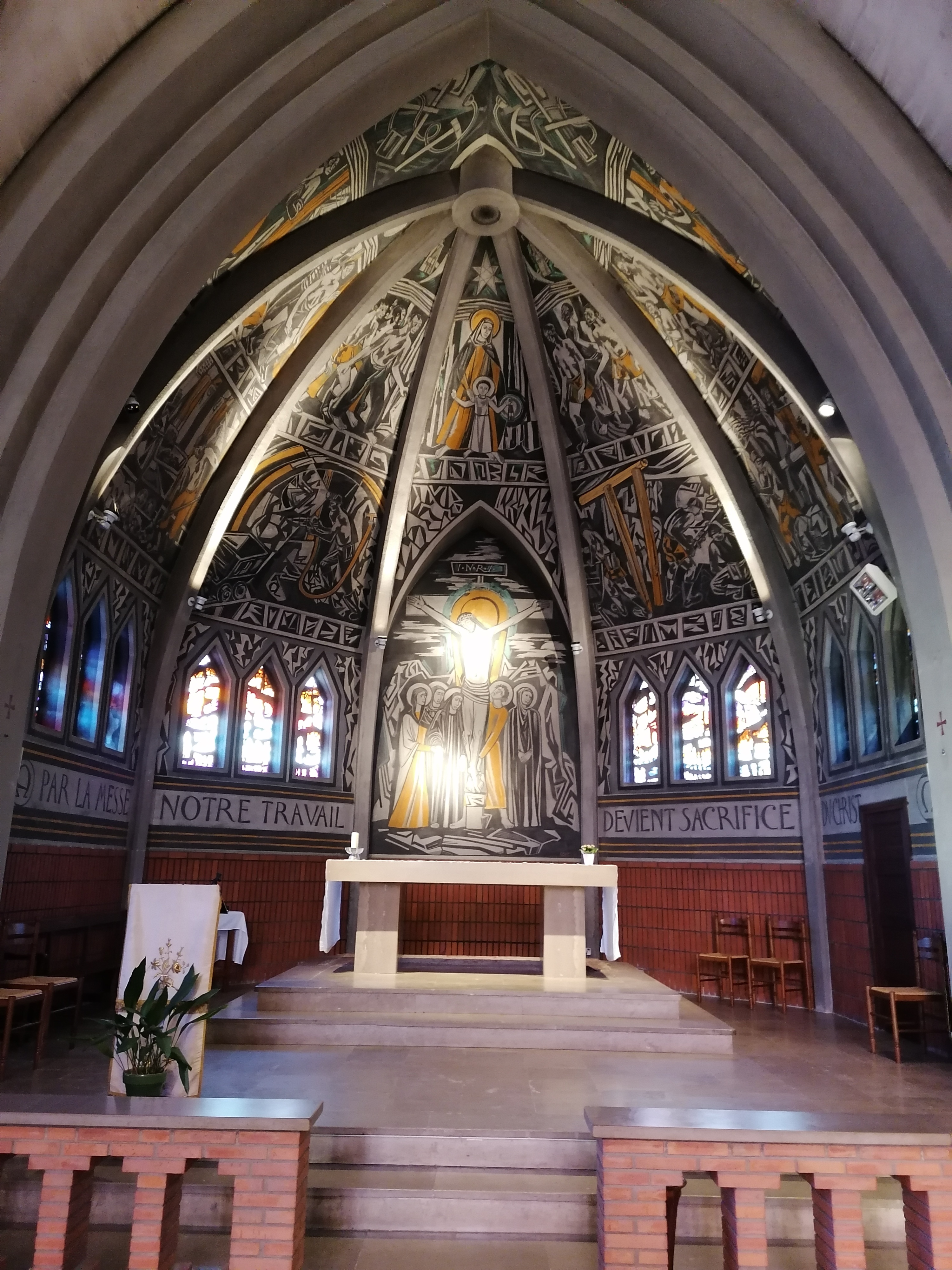 Endroit surprenant. Entièrement dédiée aux mineurs et à l'histoire de la Mine de la Découverte, le plafond de la nef présente des dessins retraçant l'histoire et le quotidien des mineurs.