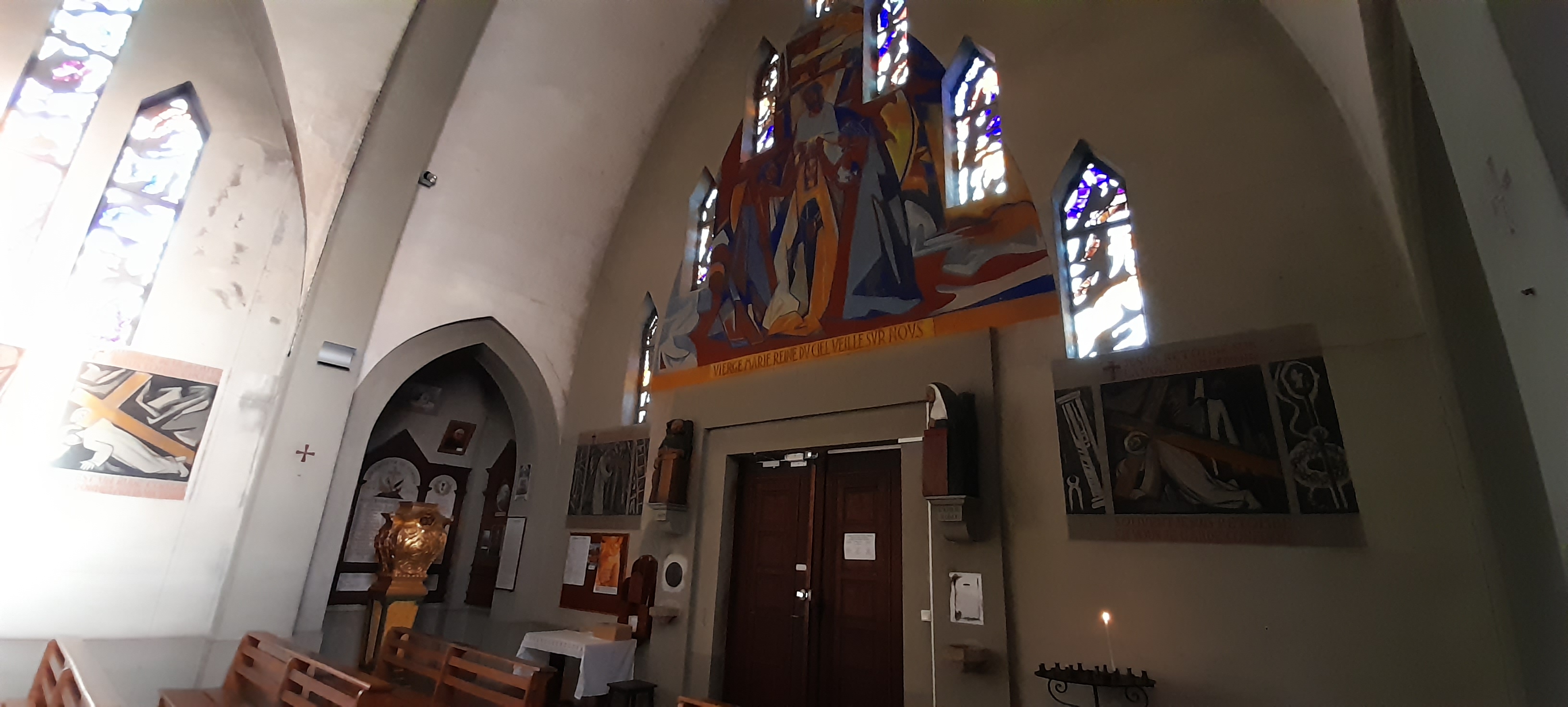 Très émouvant. Belles peintures à l intérieur. Baux vitraux. Vaut le détour dans cette zone économiquement sinistrée.
